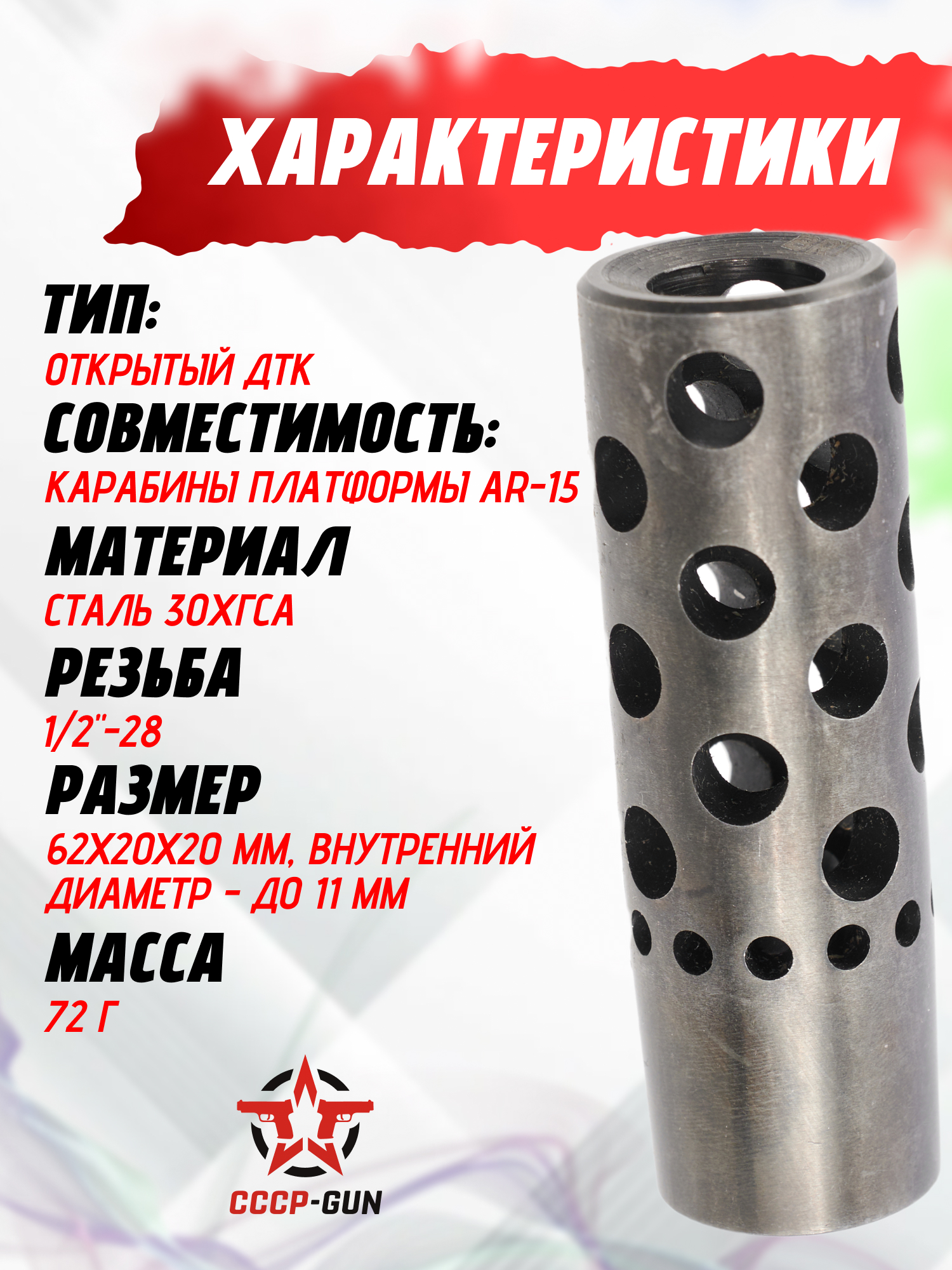 Открытый ДТК BRT Dual-brake 1/2-20 (дульный тормоз, .22LR, 62 мм)