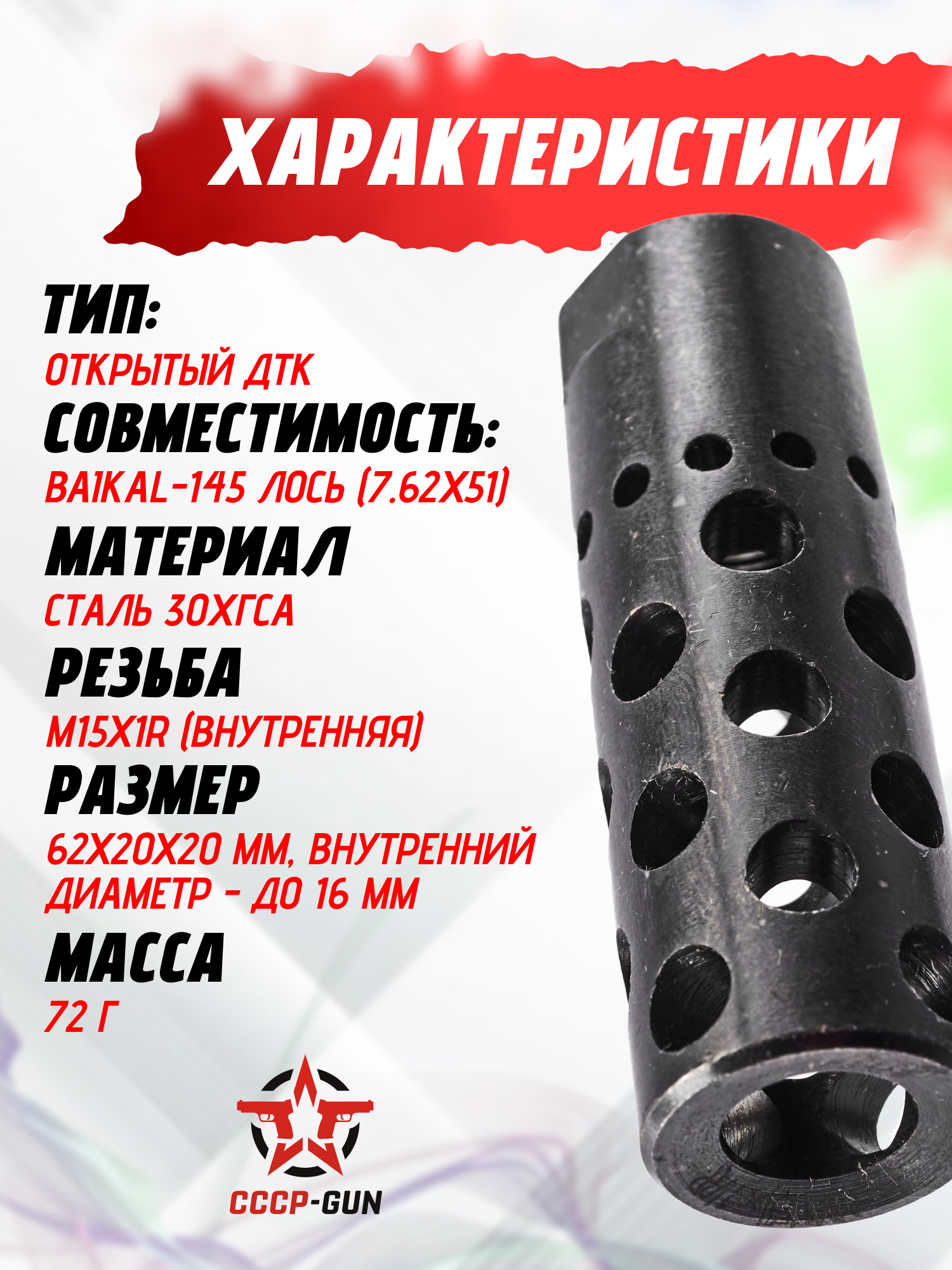 Реактивный ДТК BRT для Лось 145 (M15х1R, 17 камер, 9.6 мм)