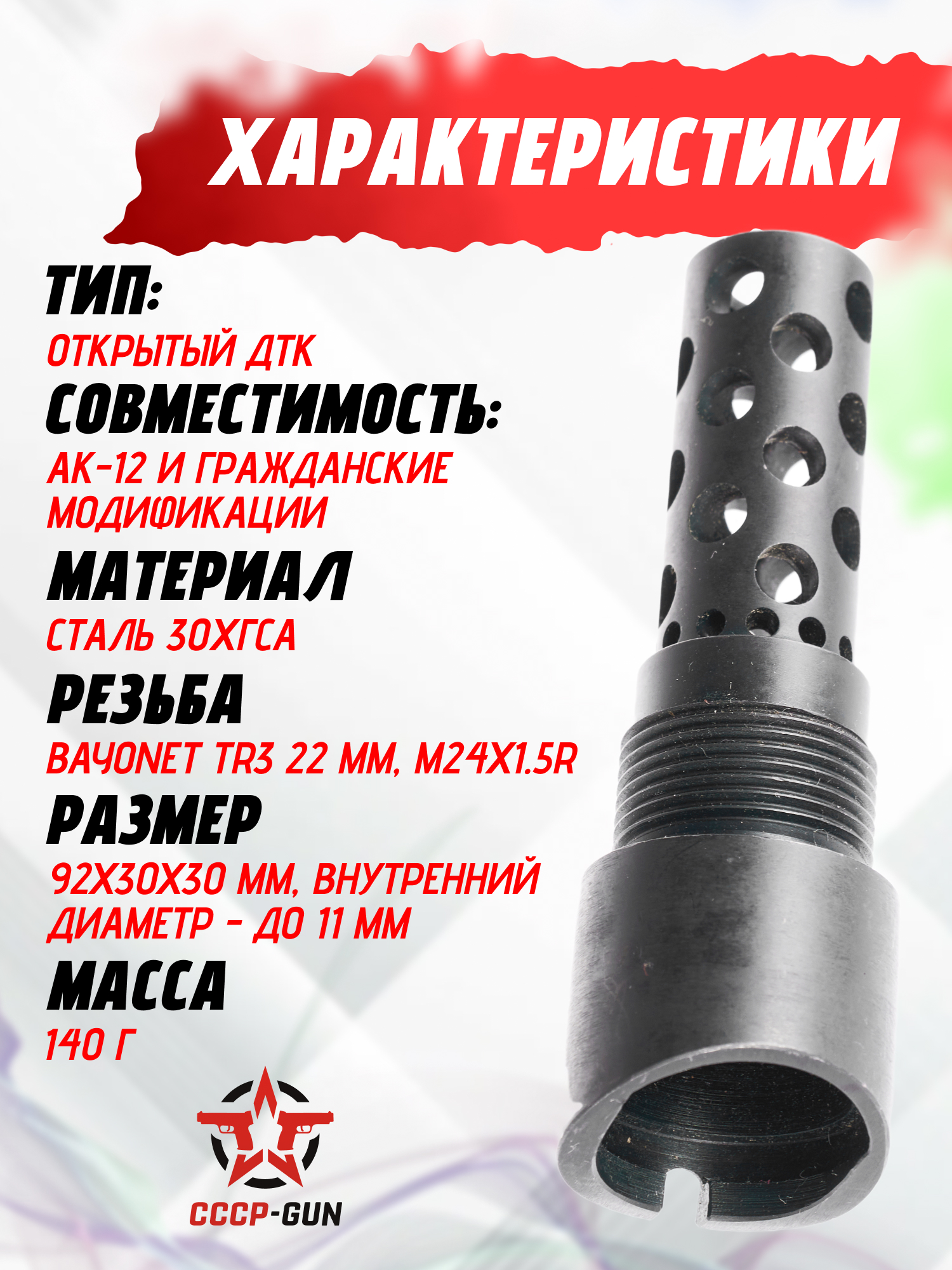 Реактивный ДТК BRT Барс для АК-12 (5.45x39 мм, .223, газоразгруженный, байонет)