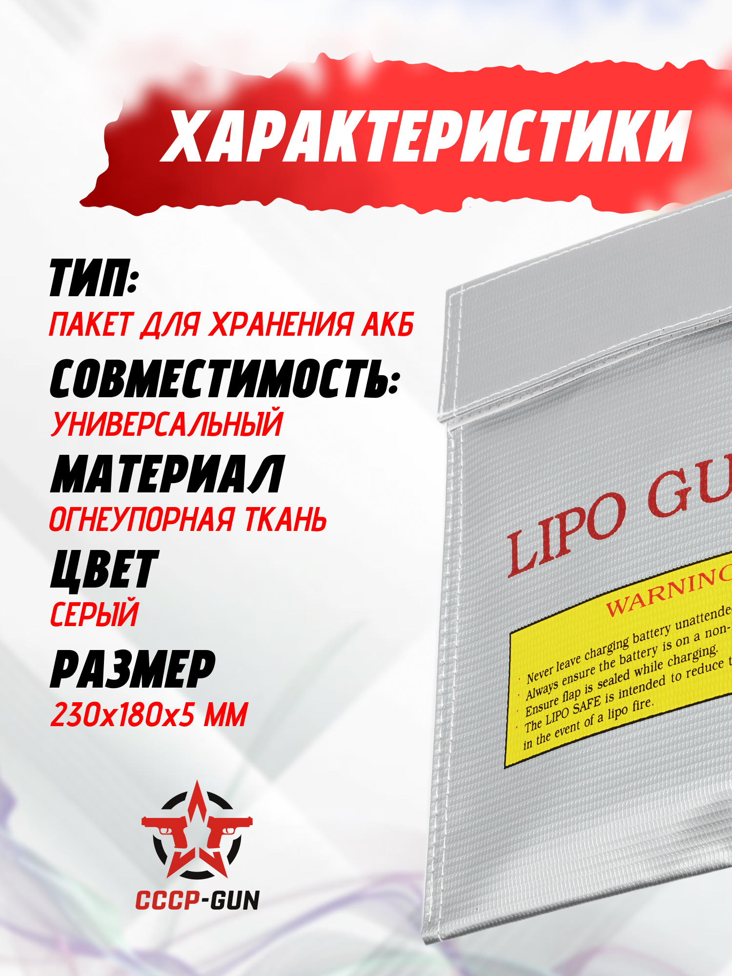 Пакет для хранения АКБ Li-Po Blue Max IP-022 (термостойкий, 230x180 мм)