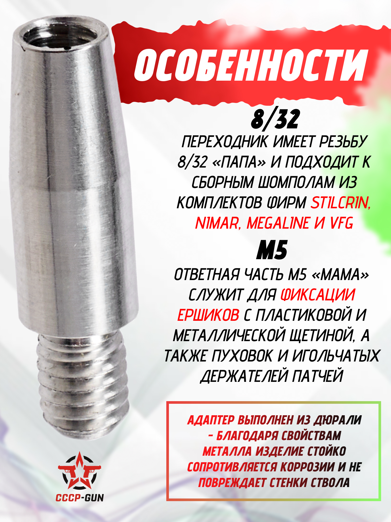 Переходник для шомпола ЧистоGun CH-A-16 (8/32 папа - M5 мама, дюраль)