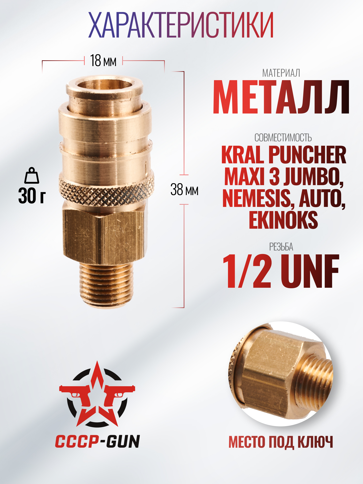 Заправочный штуцер Jaeger, EDgun (8.0 мм, Zark SM-1509-A, резьбовой, G1/8)