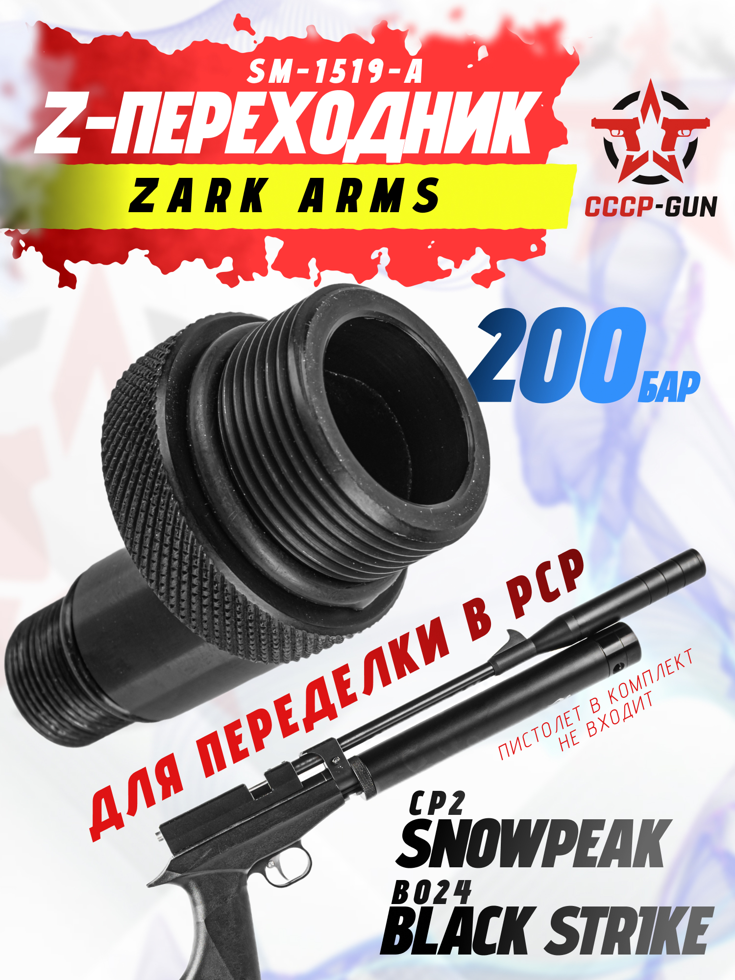 Конструкция этого переходника предполагает установку после проведения подготовительных мероприятий, проводимых над оружием. В частности, пистолет винтовка Snowpeak CP2 и Блек Страйк Б024 должны быть модернизированы путем подрезки рукояти и основной трубы, в полости которой предполагается размещение баллона в стандартном варианте изделия. Руководство по проведению указанной операции будет предоставлено в формате инструкции или видеоролика.
