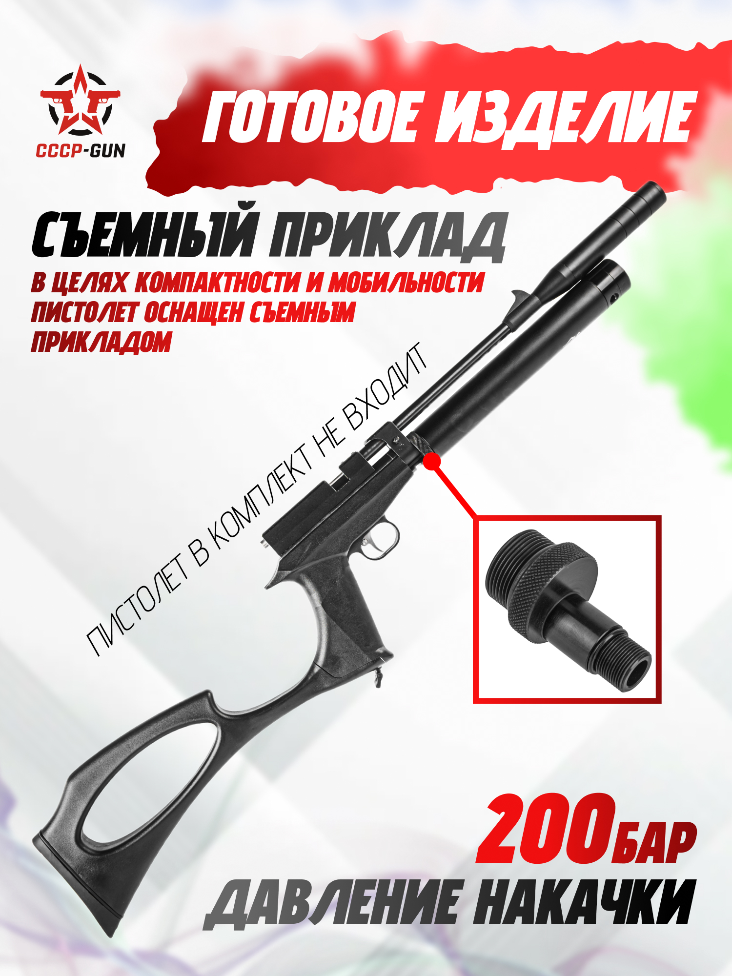 В числе главных достоинств переходника - вариативность конверсии. Он поможет осуществить сборку компактного ПСП пистолета с отъемным прикладом при использовании трубы Shan Bao 20 см, либо же можно получить полноразмерную бюджетную винтовку при применении резервуара длиной 40 см. При этом установленный узел не будет препятствовать использованию штатного модератора оружия.