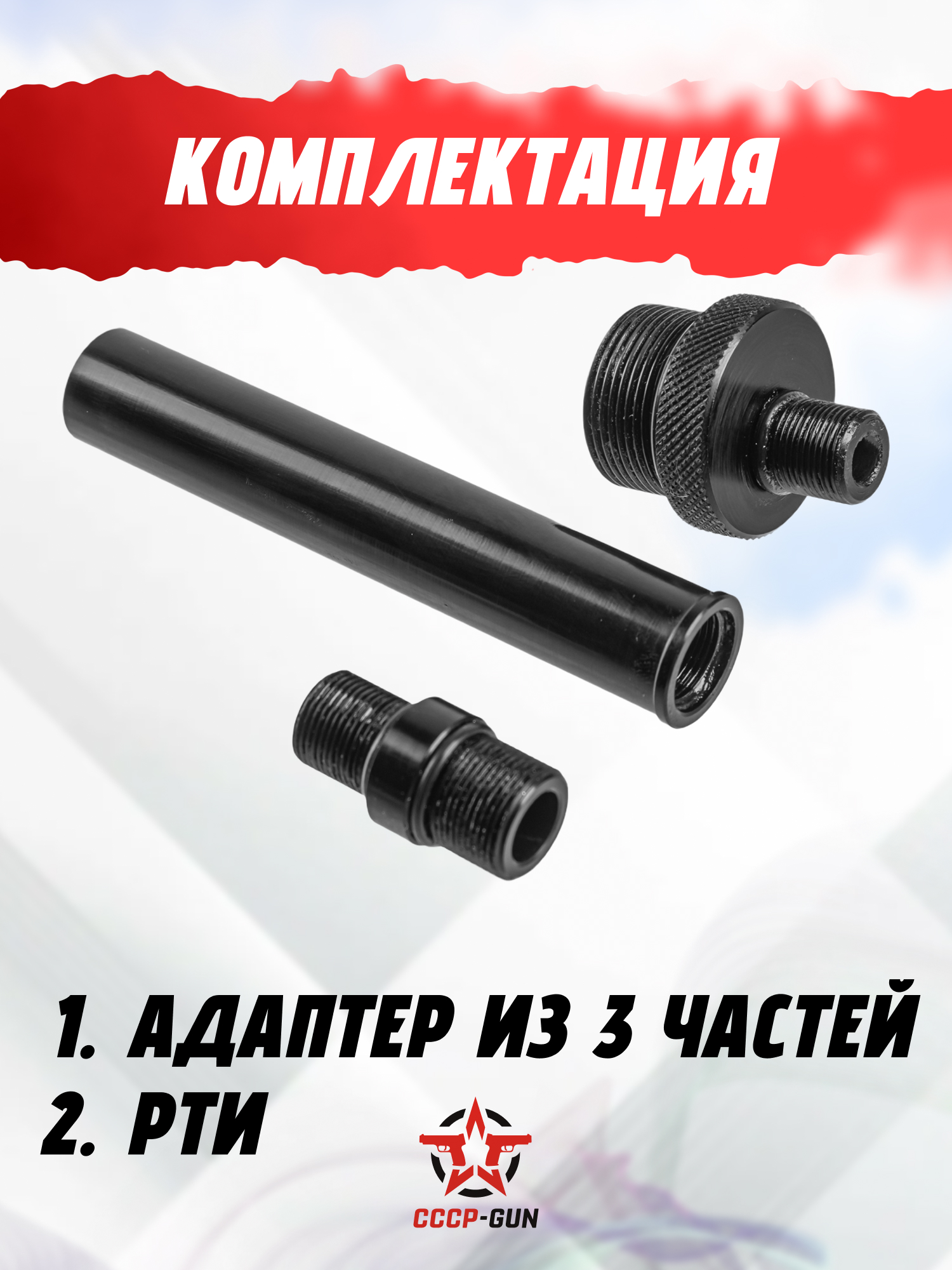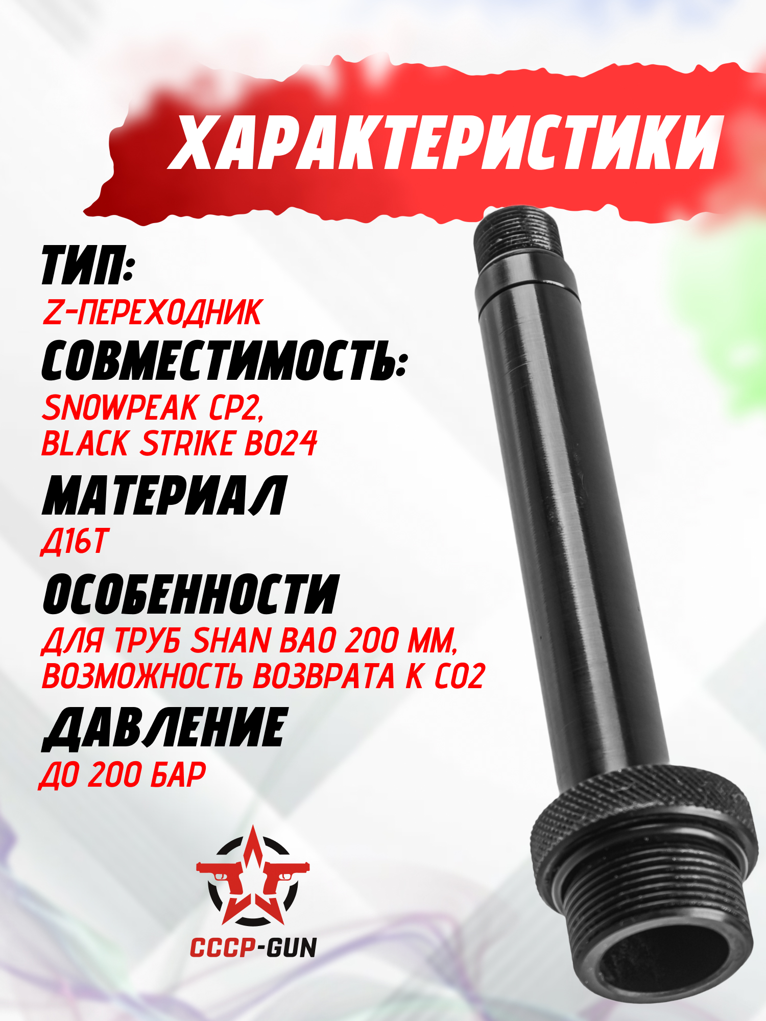 Представленный комплект состоит из 20 см трубы производства ШанБао, передней пробки для установки в резервуар с манометром, набора уплотнительных колец и штуцера для заправки. С помощью этих деталей пользователь сможет перевести CO2 пневматику CP2 и B024 от брендов Snowpeak и Блек Страйк в класс PCP. Таким образом получается эффективное оружие за небольшие деньги, штатно к которому есть приклад и модератор - набор не исключил возможность их использования.