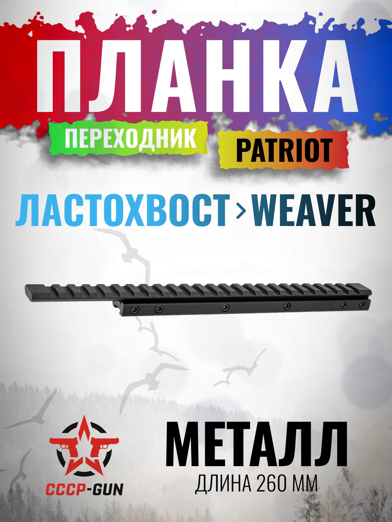 Планка переходник Patriot BH-MR61 (Ласточкин Хвост - Weaver, 260 мм, с выносом)