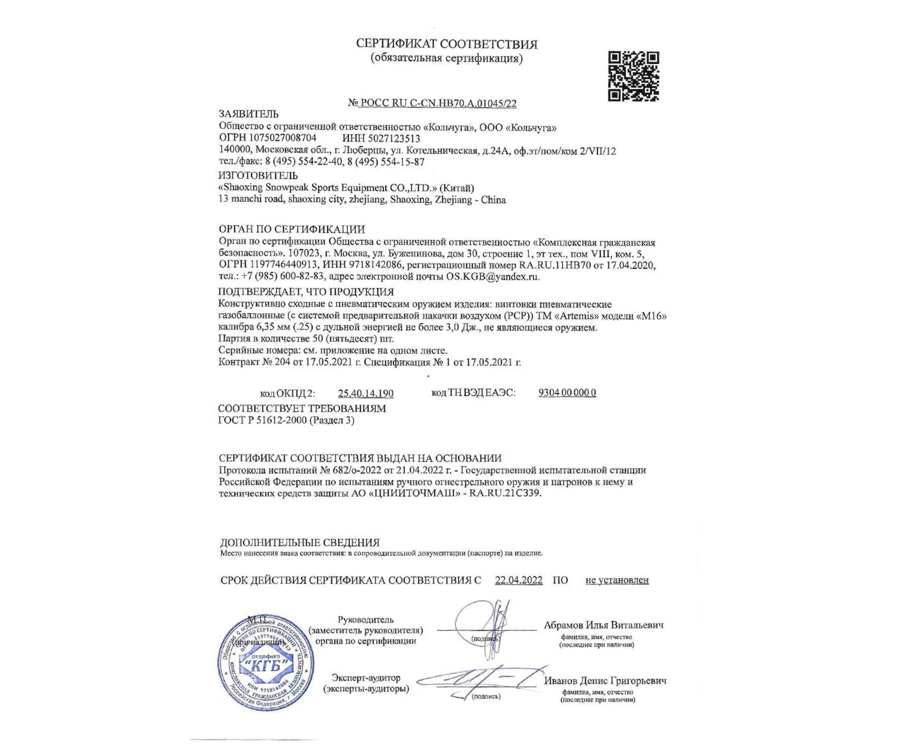 Артемис М16 6.35 продается свободно, так как на территорию России производитель завозит экземпляры с разрешенной дульной энергией, которая не превышает отметку в 3 Дж. Таким образом, даже начинающий стрелок без наличия лицензии на оружие сможет приобрести рассматриваемую пневматику для тренировок или развлечения. После процедуры усиления винтовки опытные пользователи получат увеличение базовой скорости полета снаряда до 260 метров в секунду.