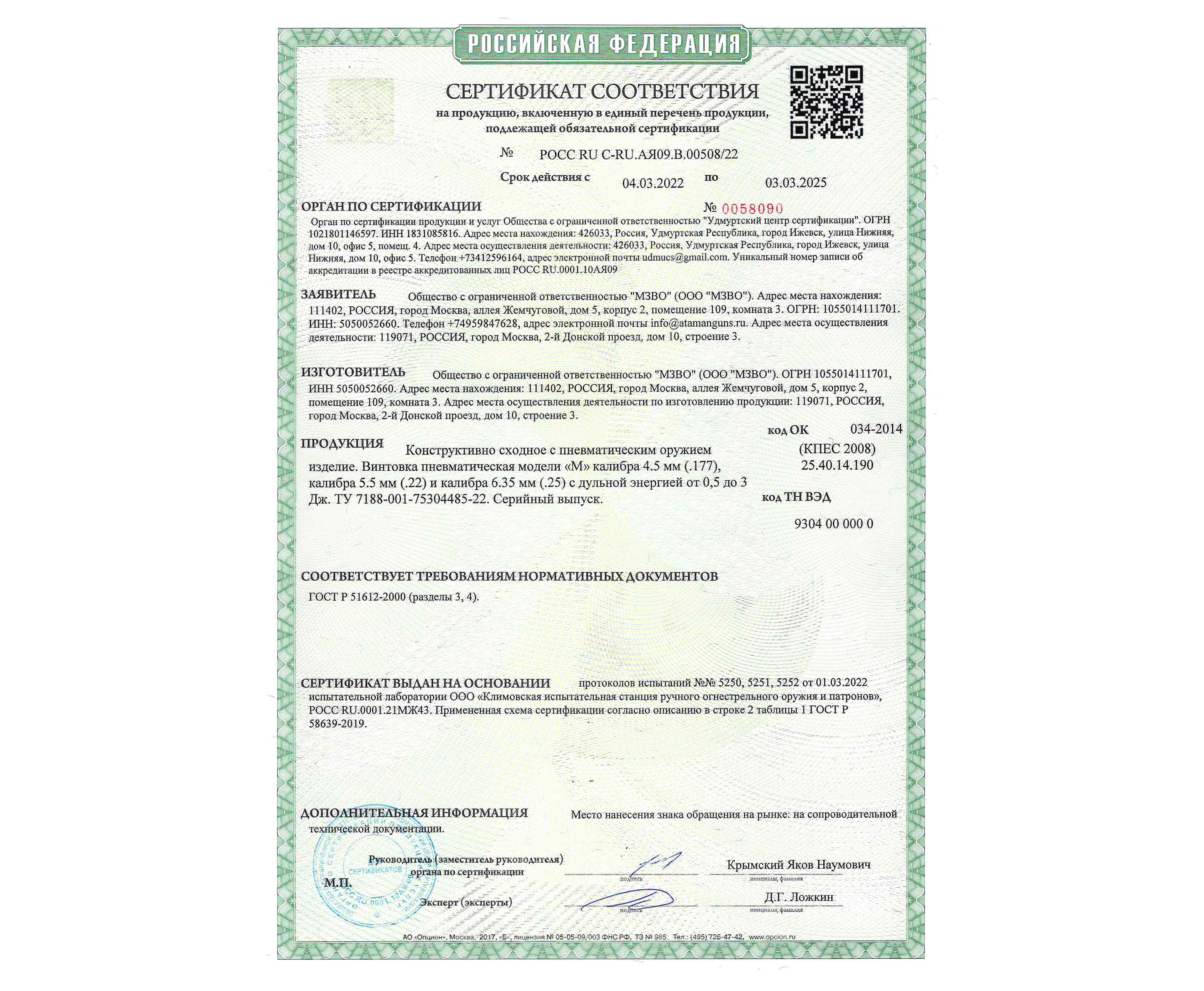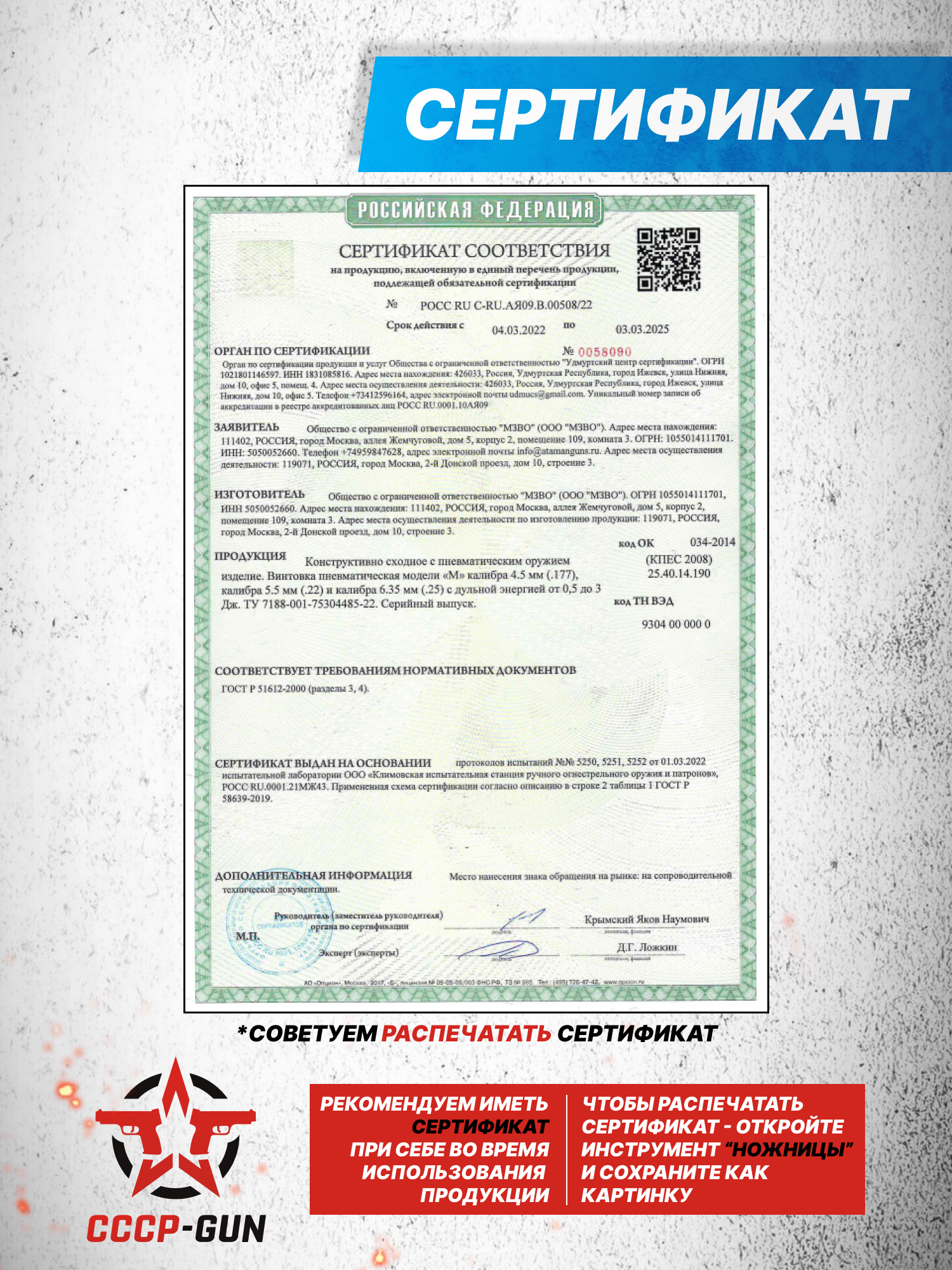 Скоростной показатель метаемых снарядов может достигать 285 м в сек, гарантируя эффективность на средних и протяженных дистанциях. Однако для соответствия законодательным нормам РФ экземпляры проходят процедуру ограничения дульной энергии до 3 Дж на стадии изготовления. Это исключает необходимость получения разрешения на покупку.