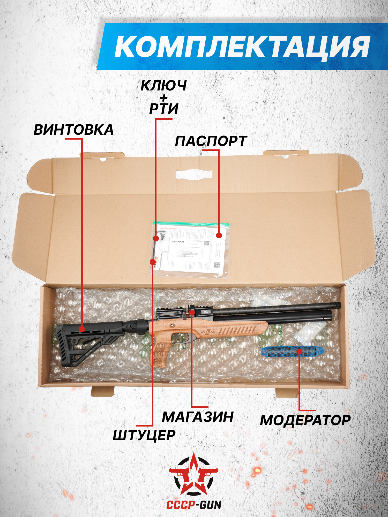 Внимание! Данная модель поставляется в разрешенной мощности для свободного приобретения на территории Российской Федерации. При этом в модели имеется возможность увеличения мощности путем замены части деталей или настройки конструкции, однако не стоит забывать о Федеральном законе «Об оружии» № 150 - ФЗ. В случае необходимости, опираясь на данный закон и руководствуясь им, возможно, потребуется получить разрешение от ЛЛР ГУ МВД России после вмешательства в конструкцию.