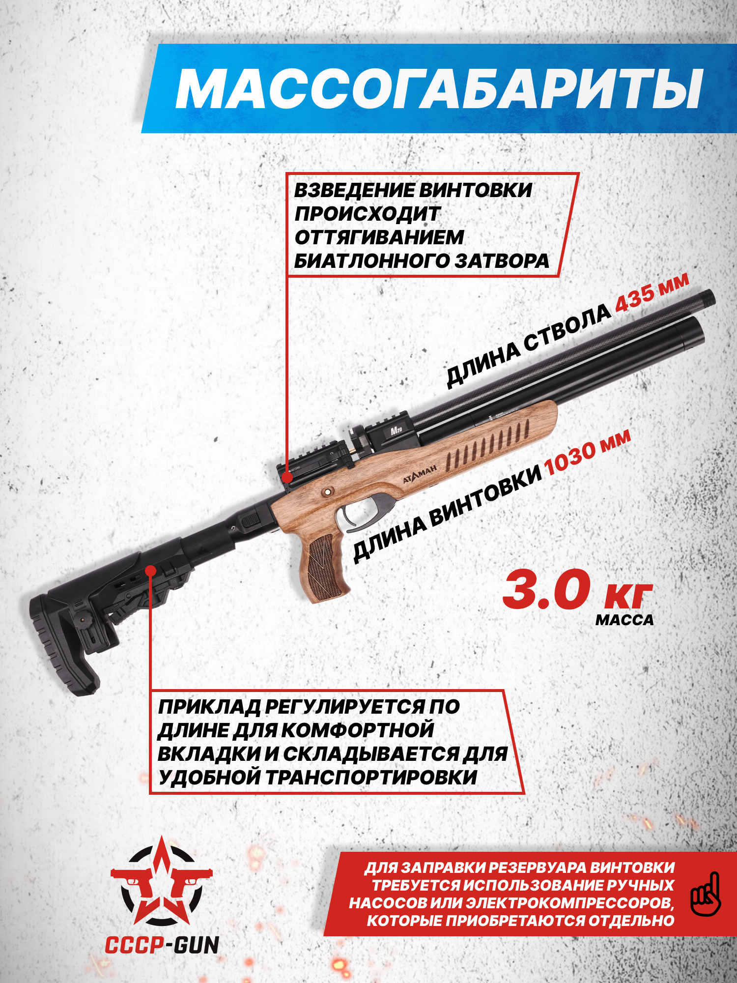 Для заполнения ресивера воздухом требуется обращение к ручным насосам ВД или электрокомпрессорам, приобретаемым отдельно. Присутствует крепежная база Вивер, которая предполагает монтаж коллиматорных или оптических прицелов - в базовой конфигурации винтовка Атаман 6 35 мм не предусматривает мушку и целик.
