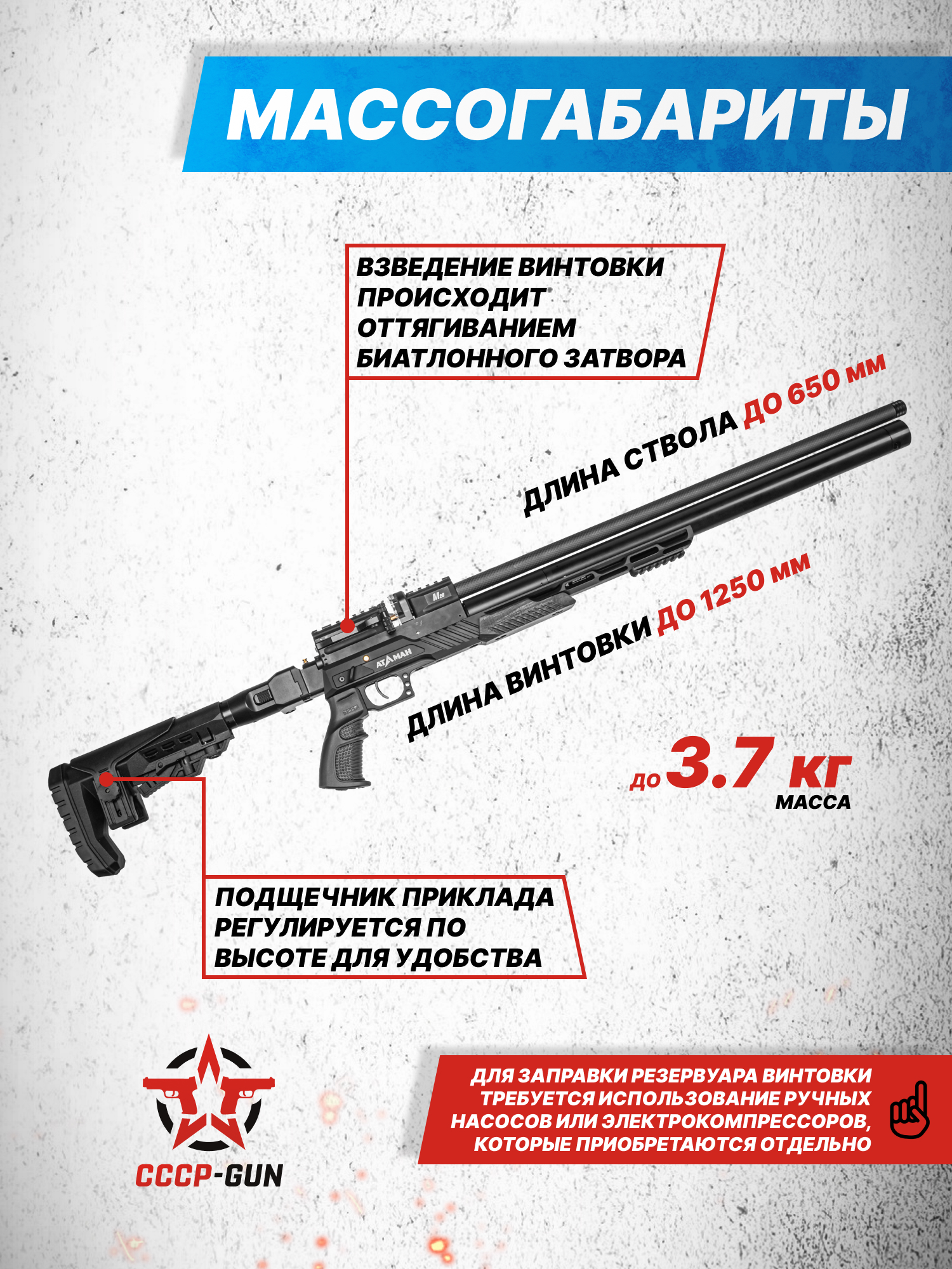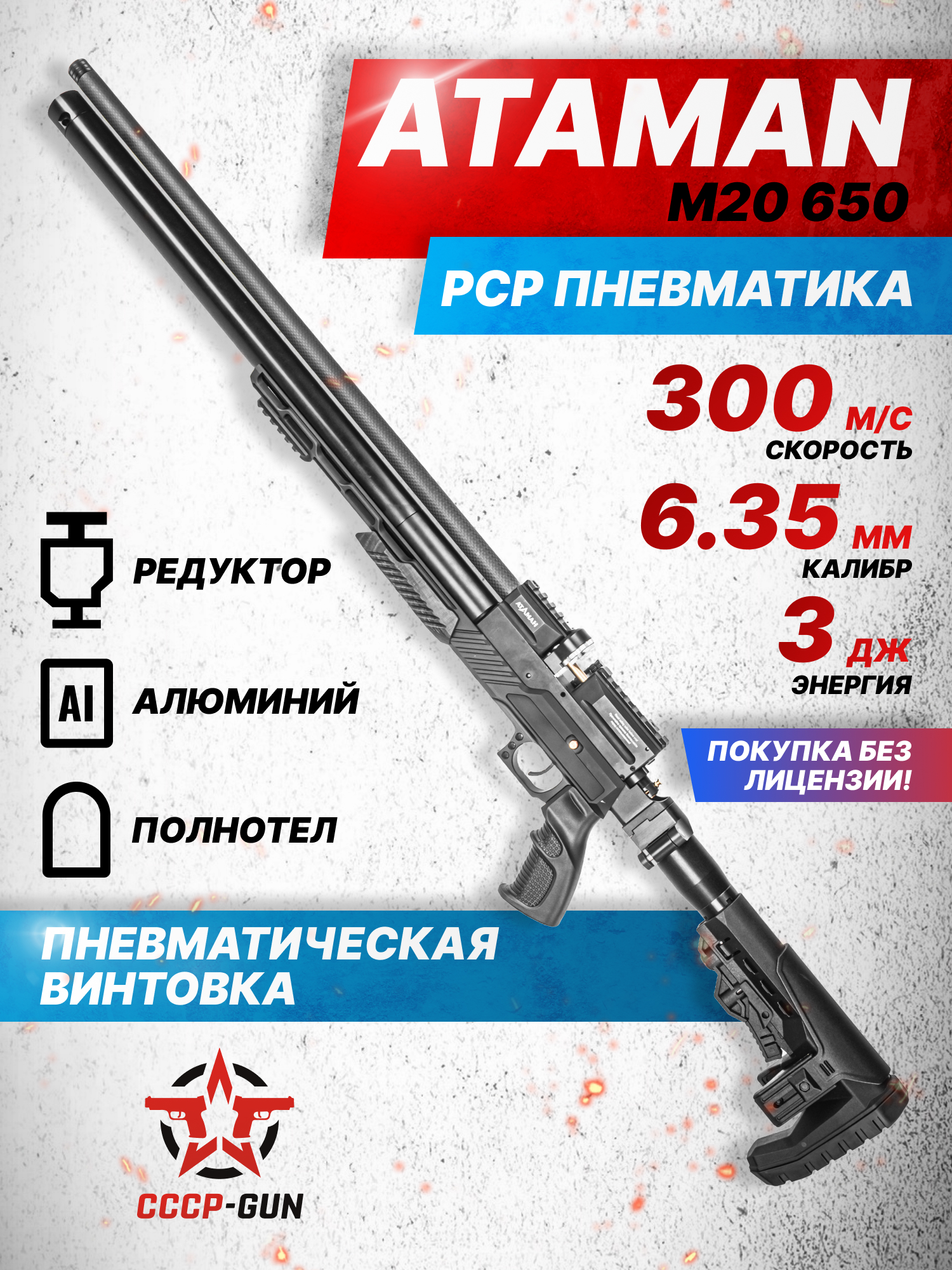 Пневматическая винтовка Ataman M20 650 Compact 6.35 мм (алюминий, редуктор, под полнотел)