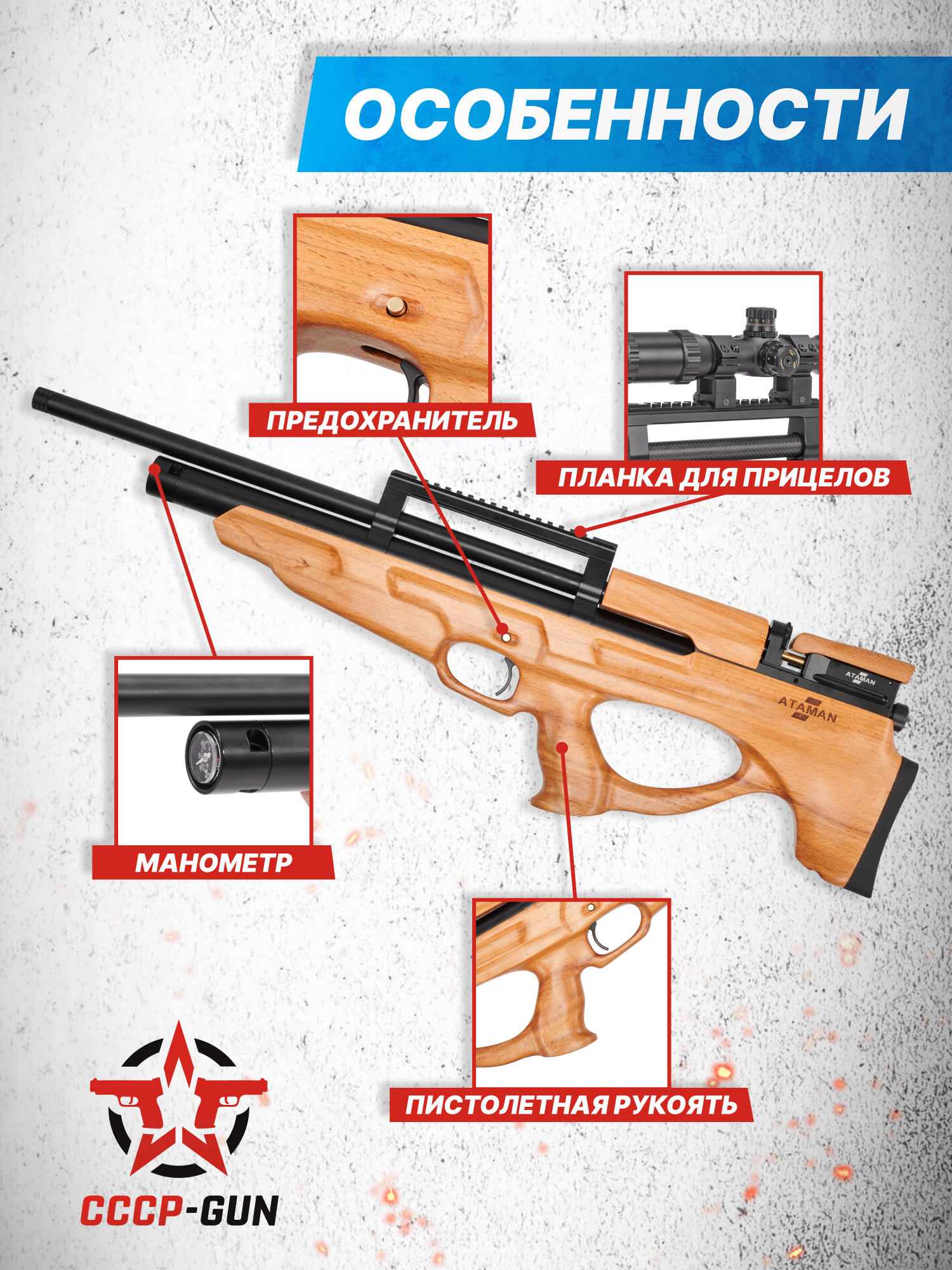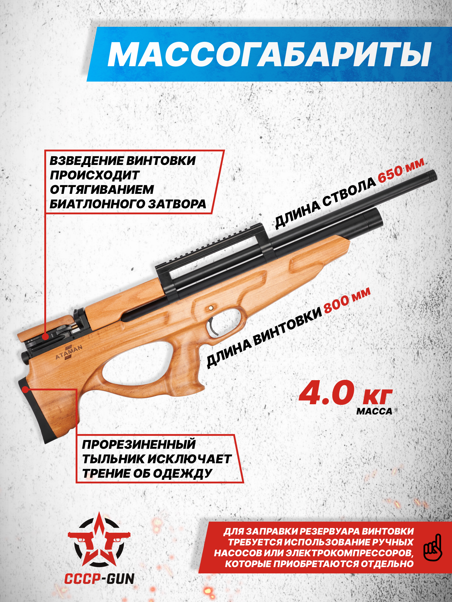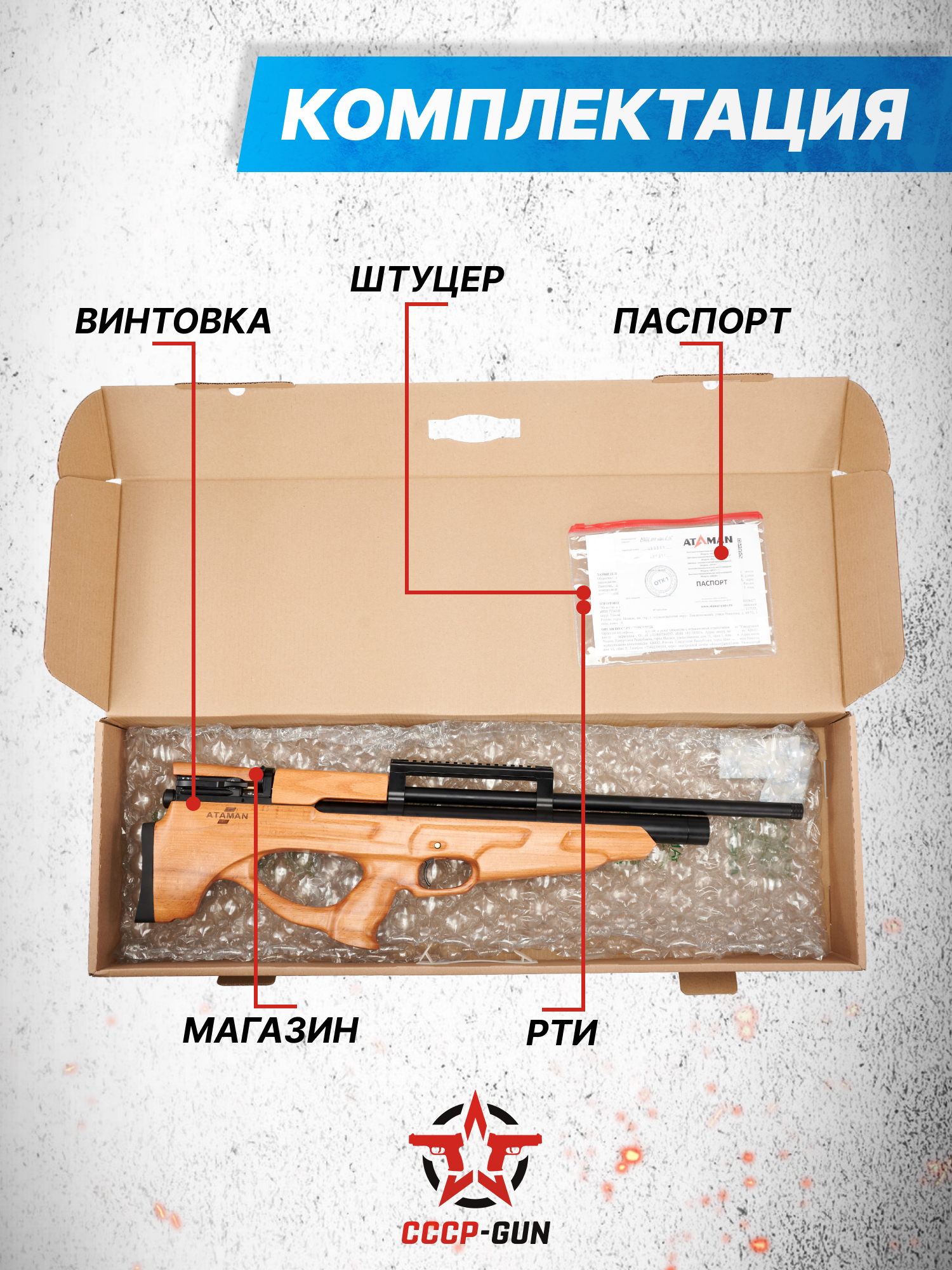 Производитель выпускает пневматику, которая штатно ограничивается 3 Дж дульной энергии для свободной покупки изделий на территории России. Это означает, что начинающим стрелкам для приобретения винтовки не потребуется обращаться в органы Росгвардии за оружейной лицензией. Также инженеры Ataman продумали опцию безопасного использования экземпляра и встроили над спусковым крючком кнопку предохранителя.