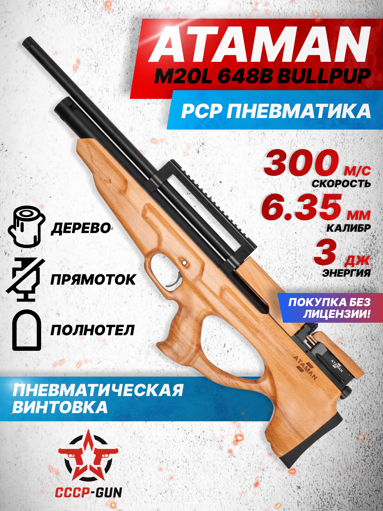 Ataman M20L 648B представляет собой Bull-Pup винтовку с металлическим корпусом в деревянной ложе из бука. Благодаря выбору такой компоновки, конструкторам удалось уменьшить габариты изделия до 800 миллиметров и сохранить длину ствола, составляющую 65 сантиметров. Масса модели не превышает 4 килограмма, а для комфорта стрелка конструкцию оснастили вытянутой накладкой подщечника, пистолетной рукоятью, ортопедическим прикладом и фигурным цевьем.