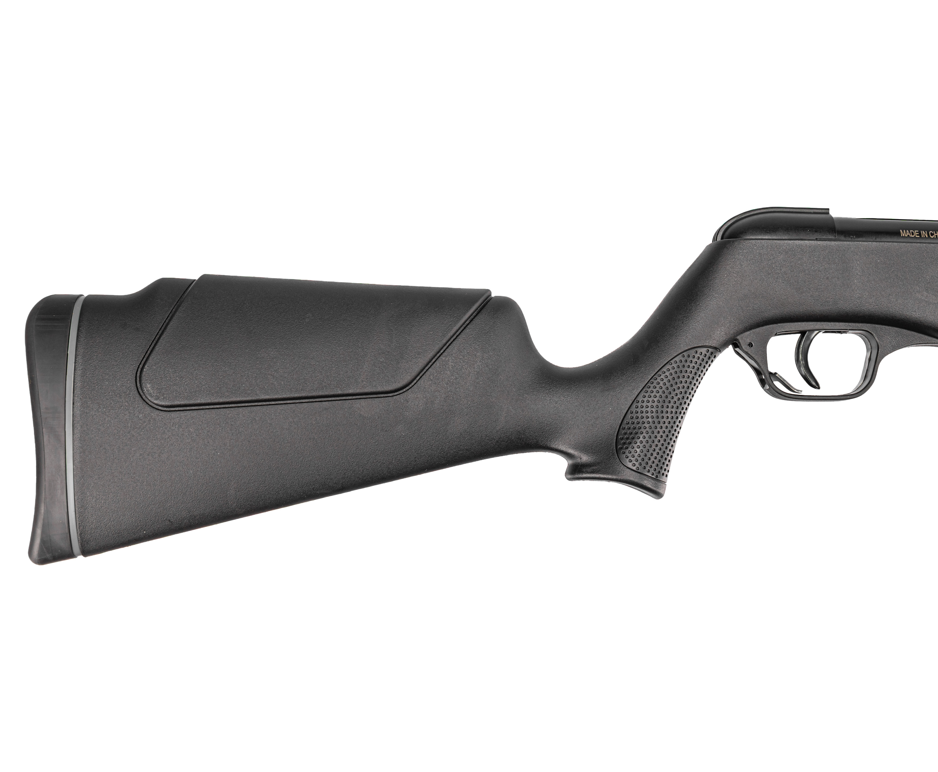 Применение металла не сделало оружие Блэк Страйк тяжелым, т.к. для отливки ложи был задействован полимер, что помогло удержать массу в рамках 2.67 килограмма. Ударопрочный пластик не боится влаги и устойчив к ультрафиолету, соответственно для ухода за ним не требуются специальные процедуры, как в случае с деревом. Ложу классического форм-фактора дополнили шероховатой текстурой в зонах прилегания рук и затыльником.