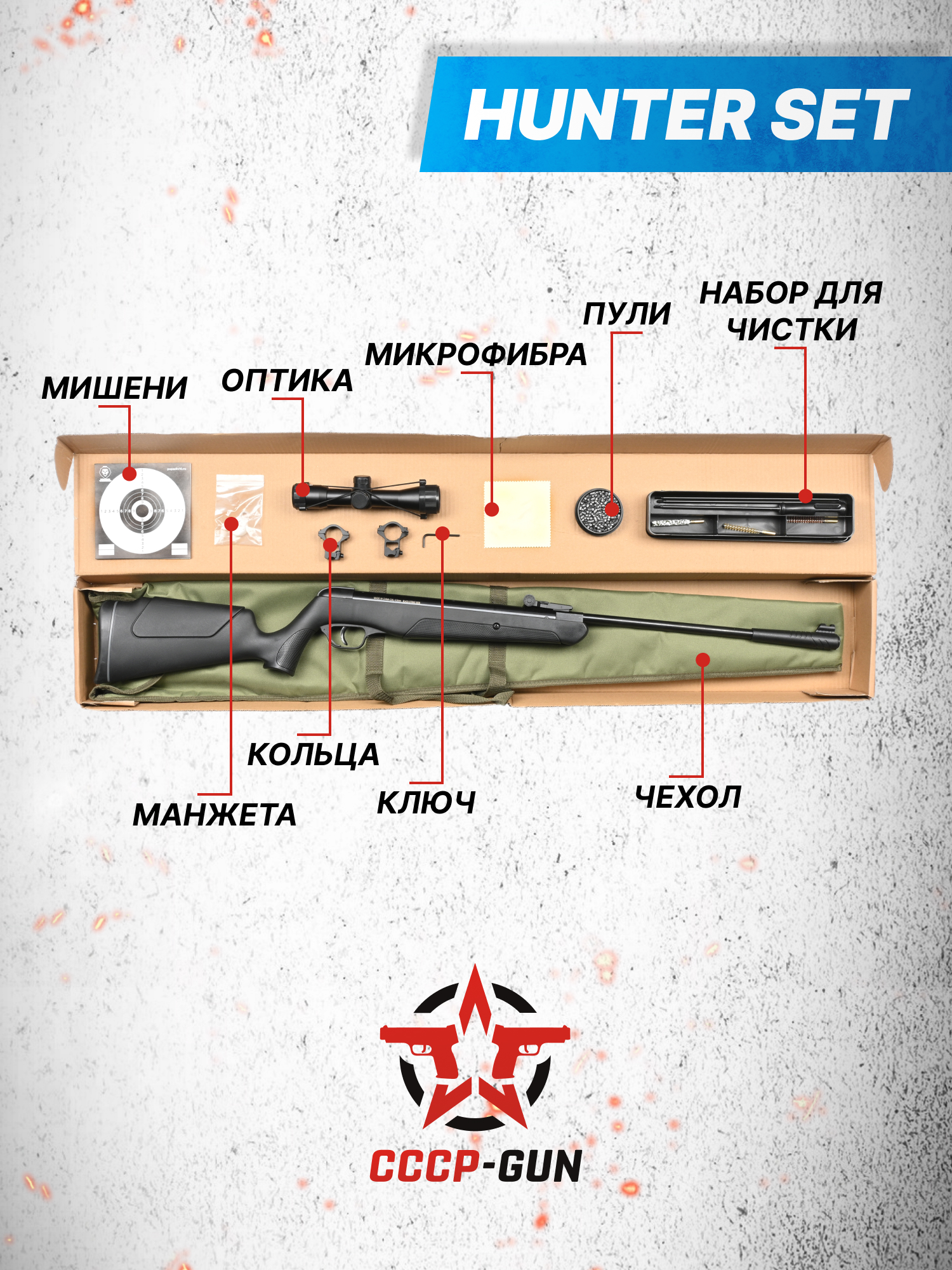 Подготовка к стрельбе требует комплексного подхода - одной винтовкой в этом деле не обойтись и в любом случае придется приобретать комплект сопутствующих вещей. Наиболее простым способом сделать это будет обращение к наборам Хантер, которые наполняют всем необходимым для стрелка, ввиду чего последний сможет сразу же направиться из магазина на стрельбище. Такой комплект будет полезен начинающим или желающим сделать подарок, а также поможет сэкономить время бывалому стрелку.