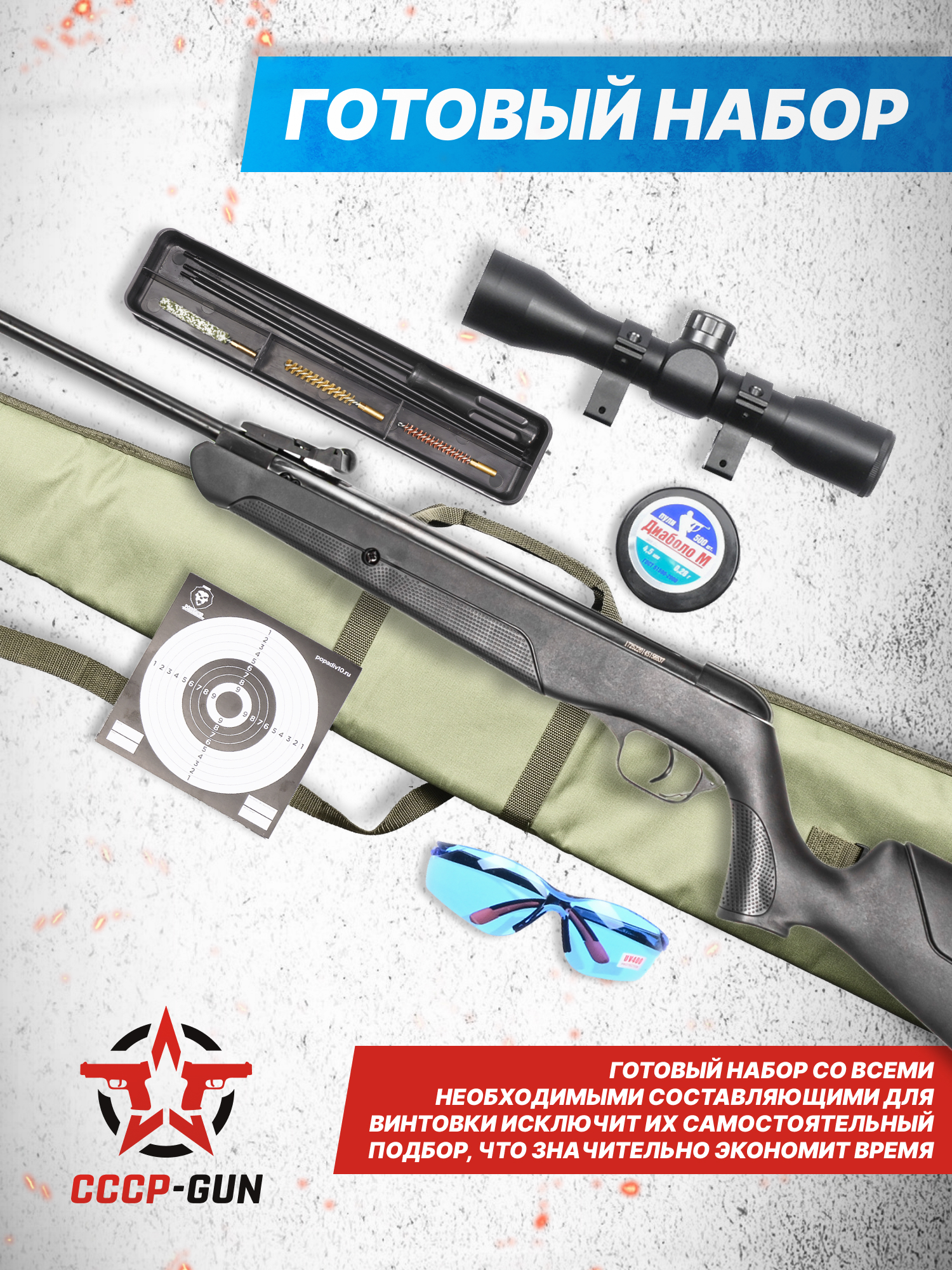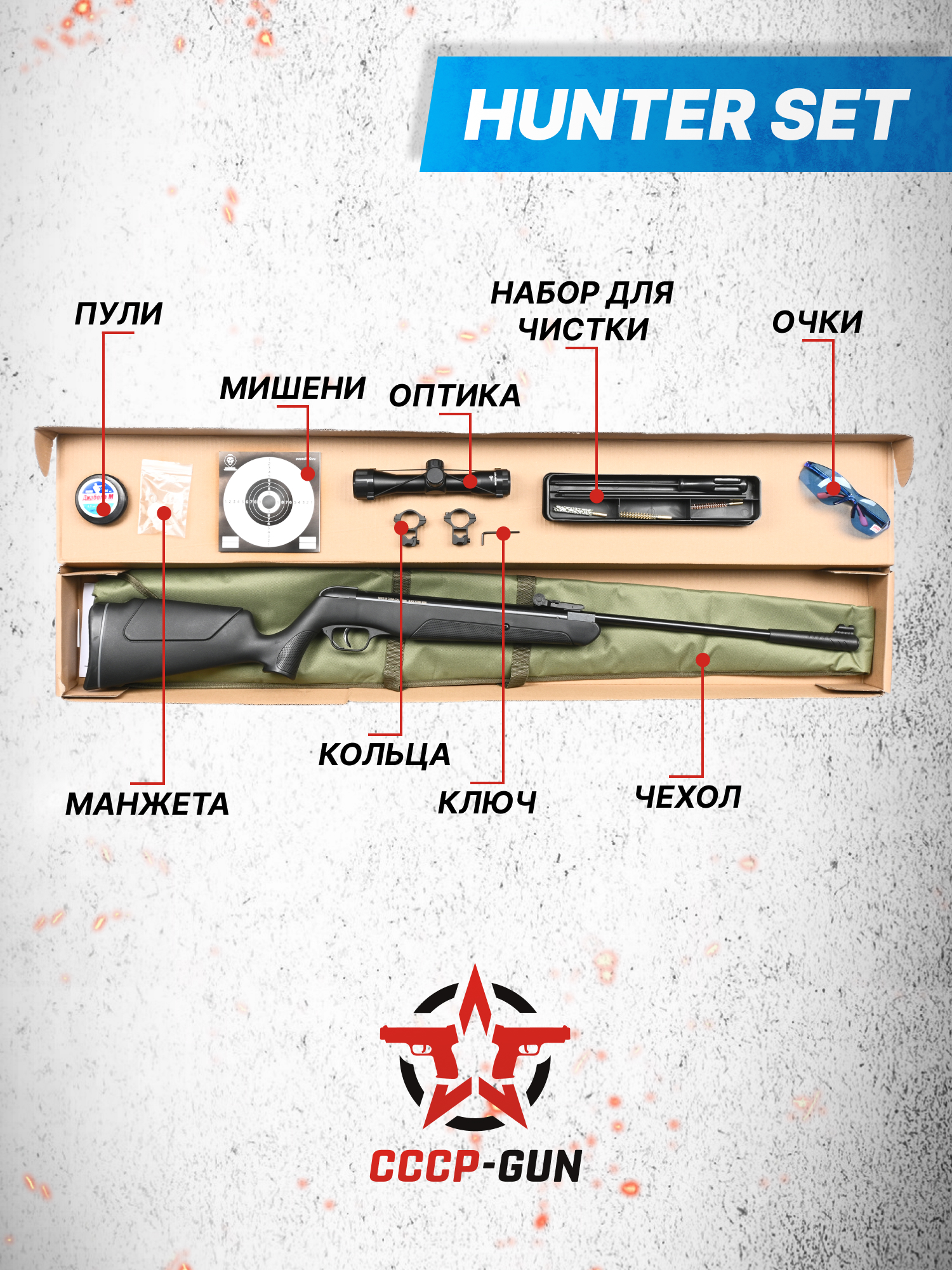 При желании заняться пулевой стрельбой одного лишь наличия оружия недостаточно - пользователю потребуется набор расходников и аксессуаров для его безопасного использования, техобслуживания и обустройства условий на стрельбищах. Для тех, кто слабо ориентируется в этом, существует набор Хантер - в нем присутствуют все сопутствующие предметы. Комплекты будут полезны и для опытных людей, предпочитающих экономить время.