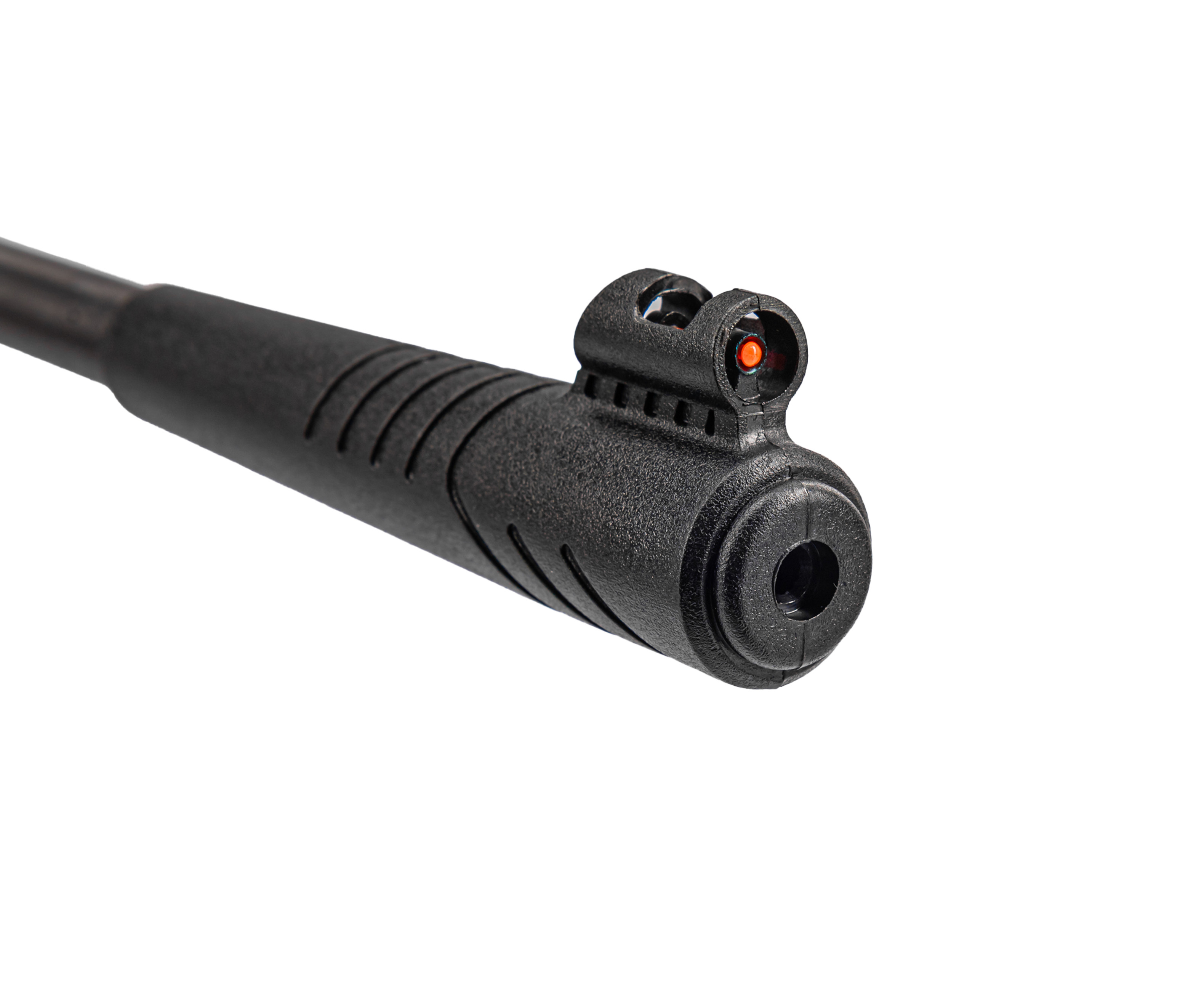 Из важных преимуществ модели Black Striker стало использование стали в качестве материала для изготовления нагруженных частей, например, ствольной муфты. Это привело к ощутимому повышению запаса прочности изделия. При этом масса оружия не вышла за границу 3 килограмм - этого достигли за счет использования пластика для ложи.