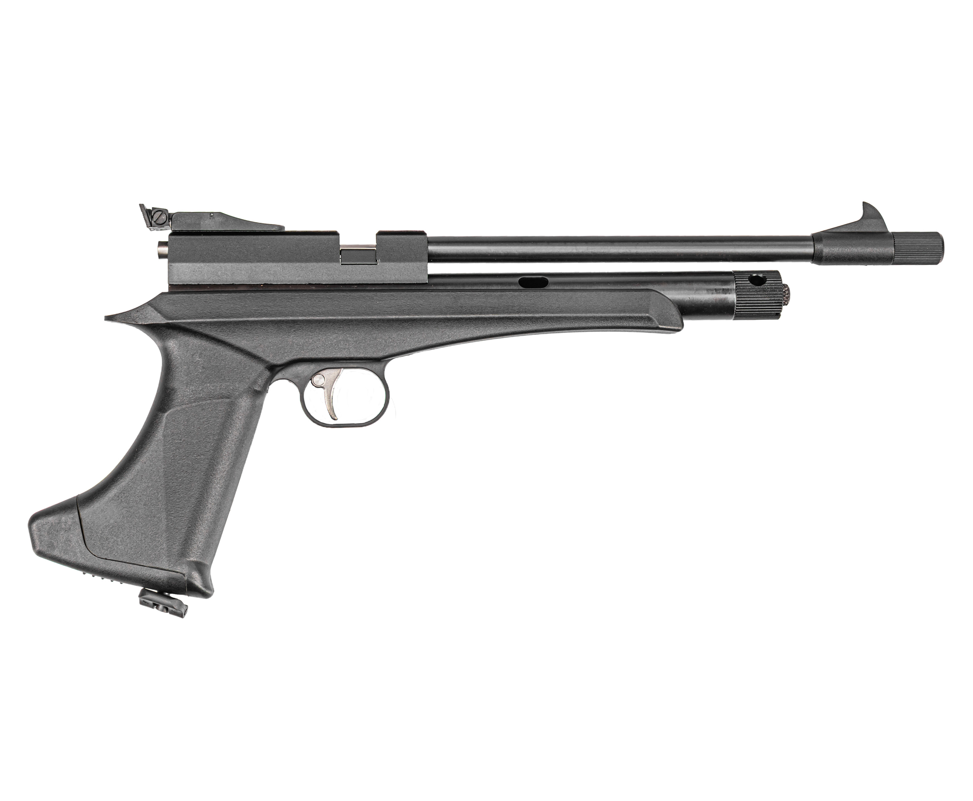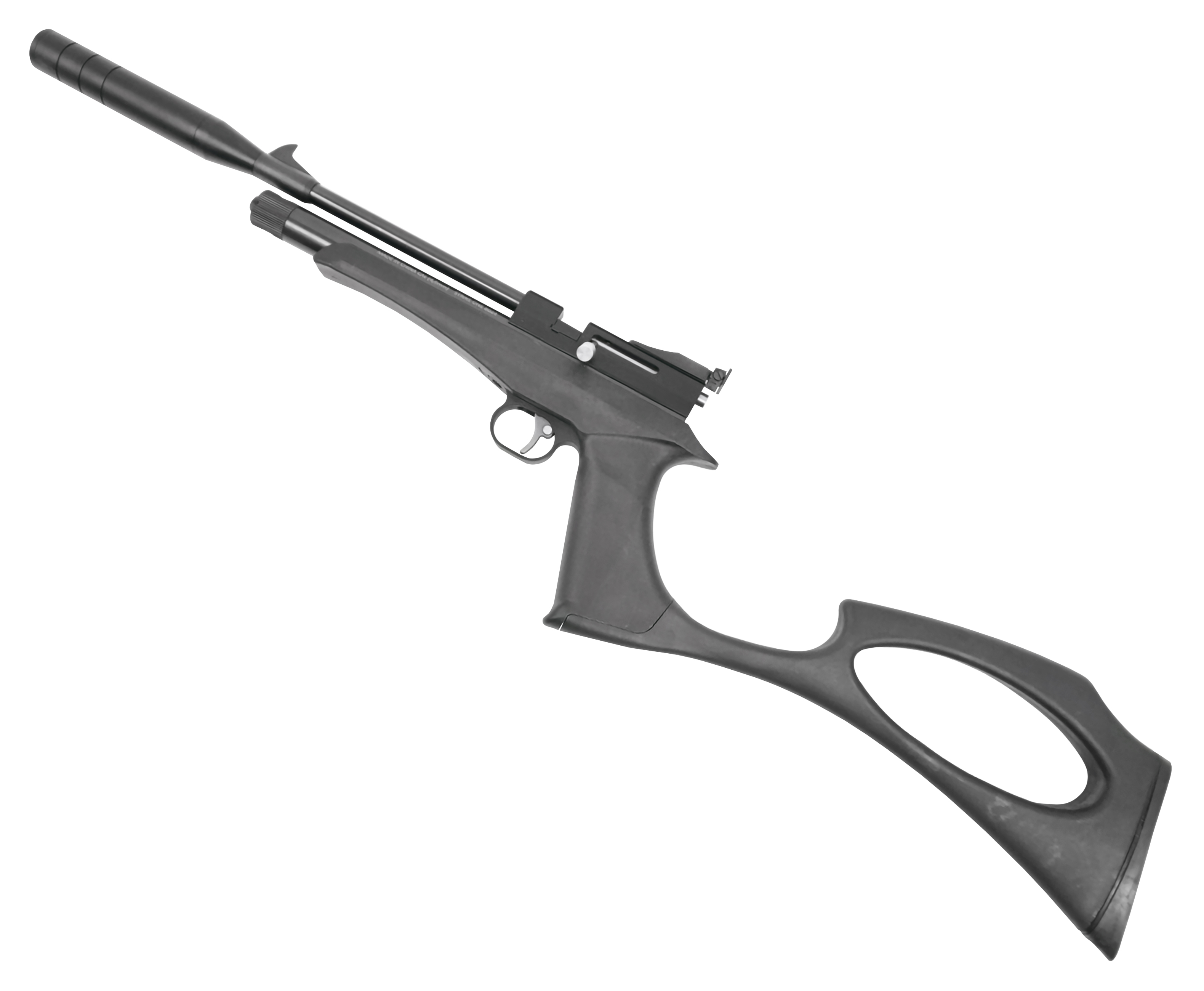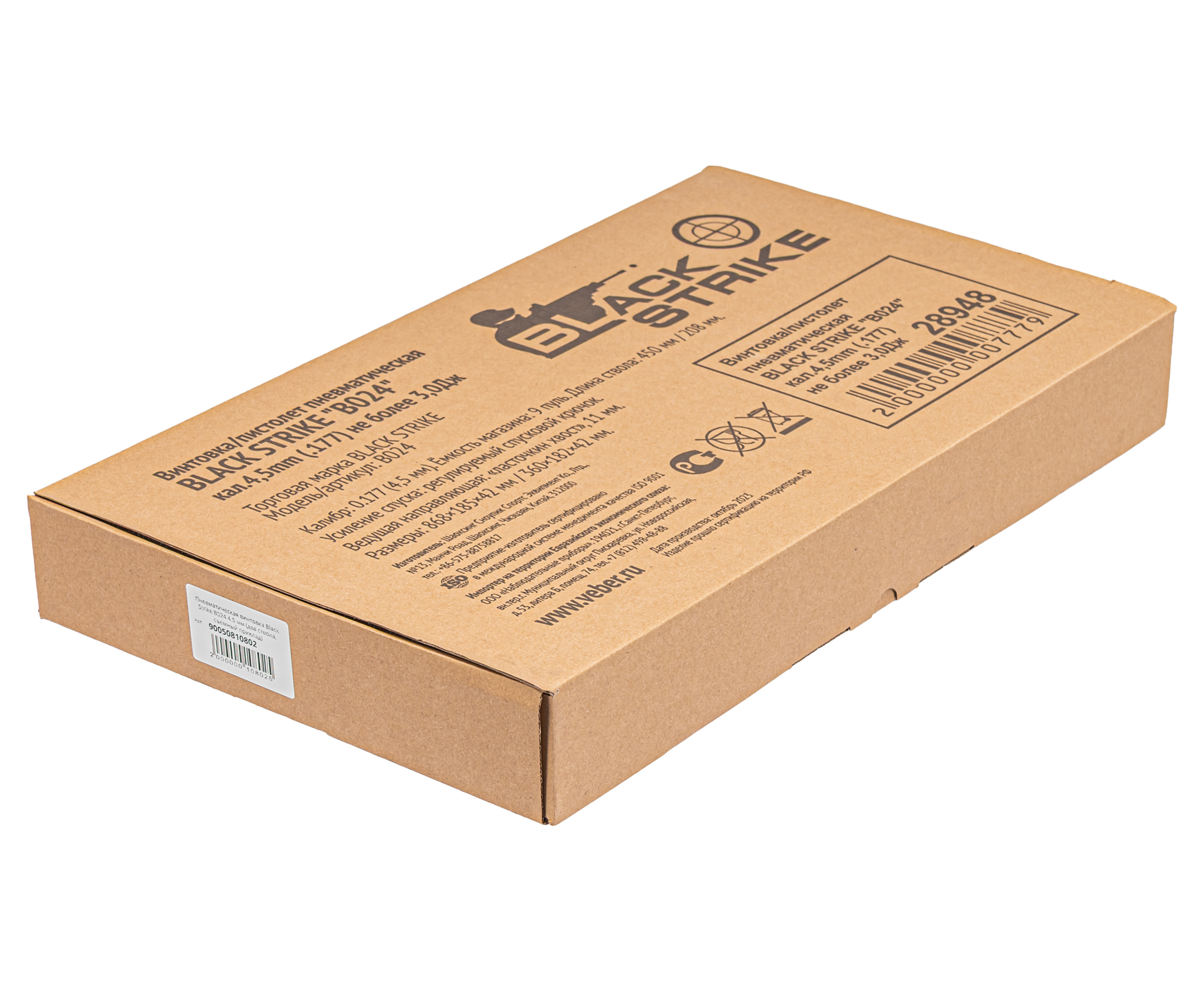 Пневматический пистолет Black Strike B024 в базовом виде предполагает оснащение компактным 208 мм стволом. Для конвертации короткоствольного образца в полноразмерную винтовку его меняют на 450 мм бланк - для этого достаточно поставить его на место штатного, не забыв закрепить кронштейн дополнительной опоры на резервуаре. Мушка присутствует на обоих стволах, соответственно переставлять ее не понадобится.