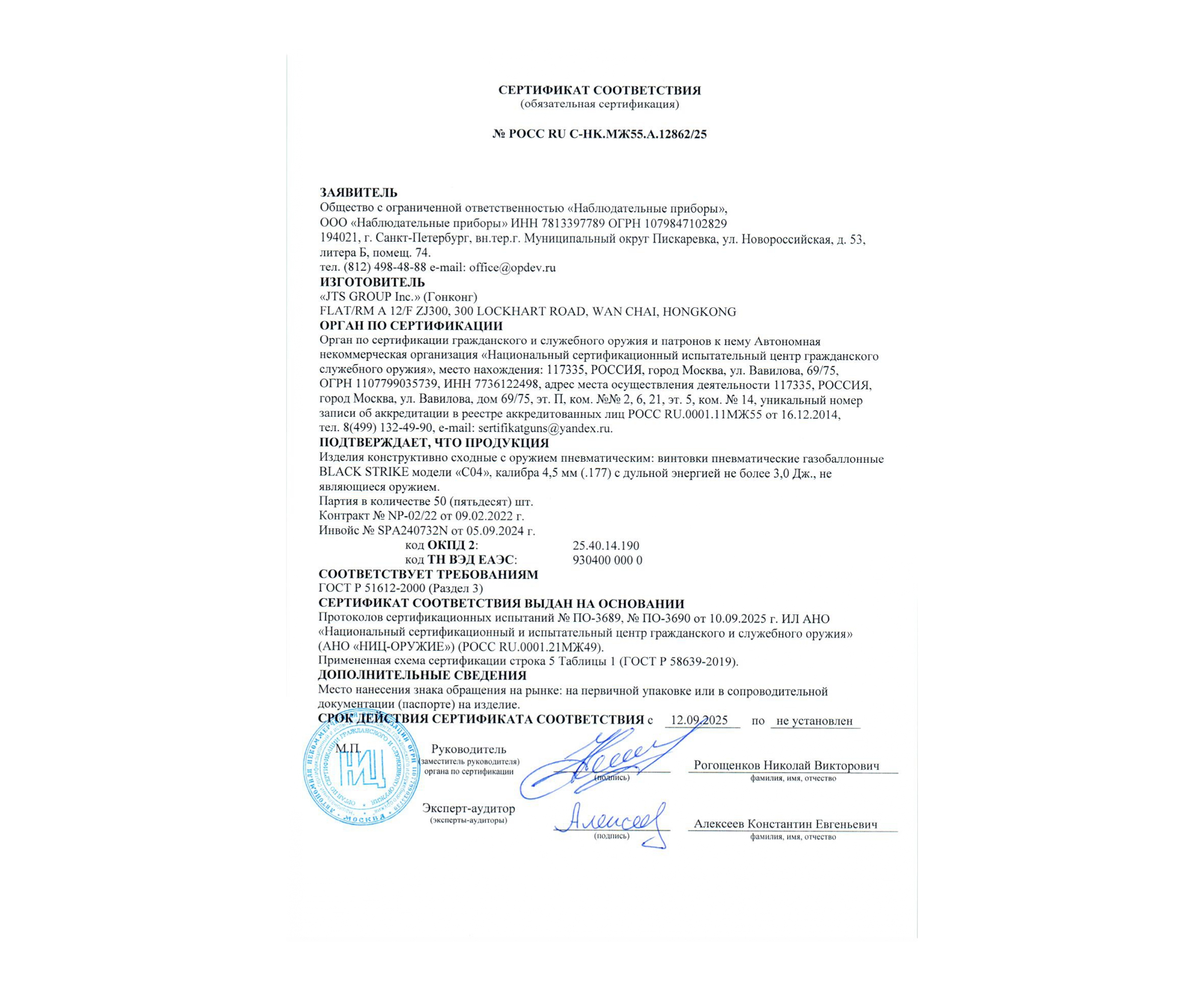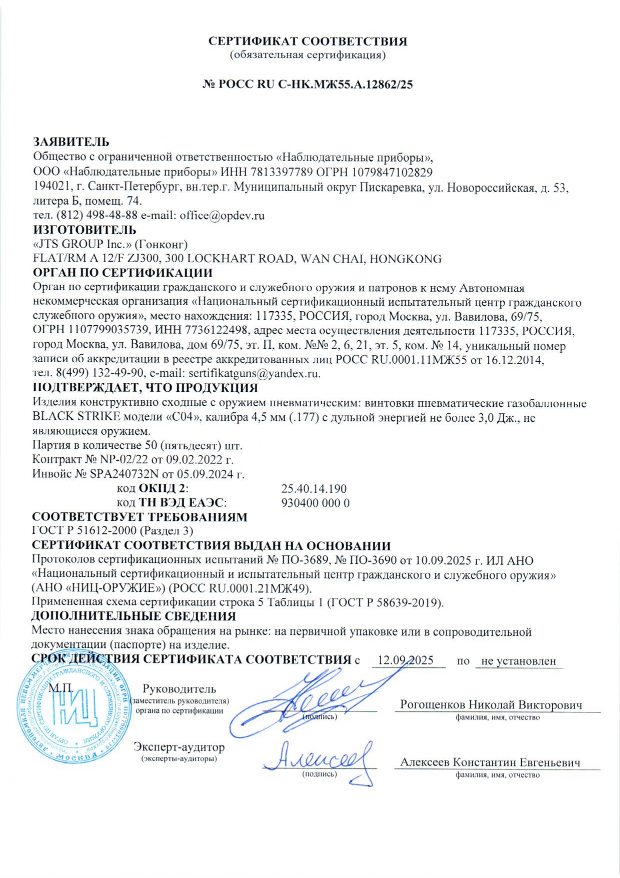 Фирма Блэк Страйк ориентирована на выпуск пневматических стрелковых систем. Товарный ряд предприятия не исчерпывается вариантами пружинно-поршневой схемы и образцами с предварительной накачкой - в каталоге также присутствуют модели, работающие на сменных баллонах CO2. Подобный принцип действия реализован как в пистолетных, так и в винтовочных модификациях, что предоставляет возможность подбора оптимальной конфигурации.
