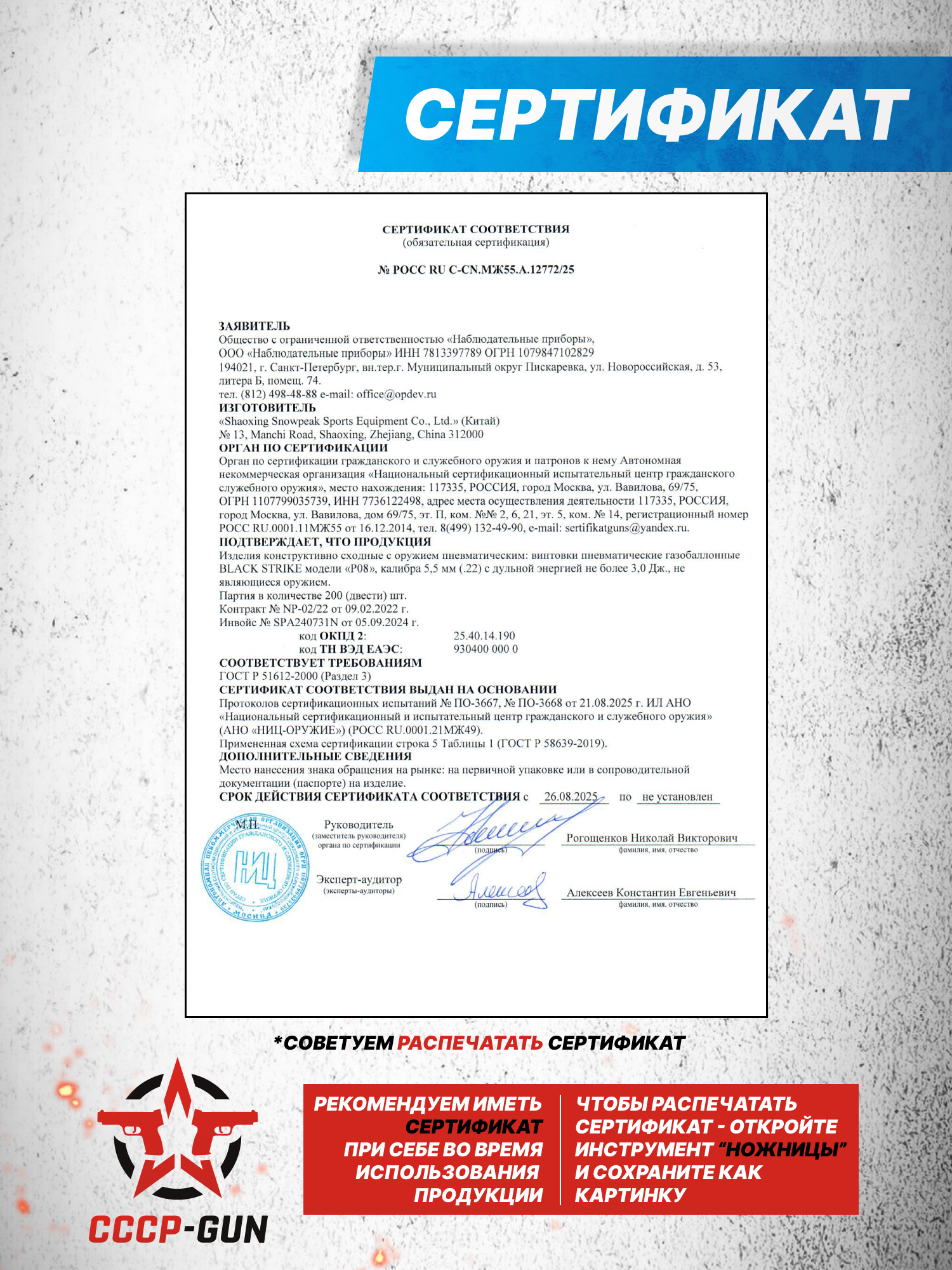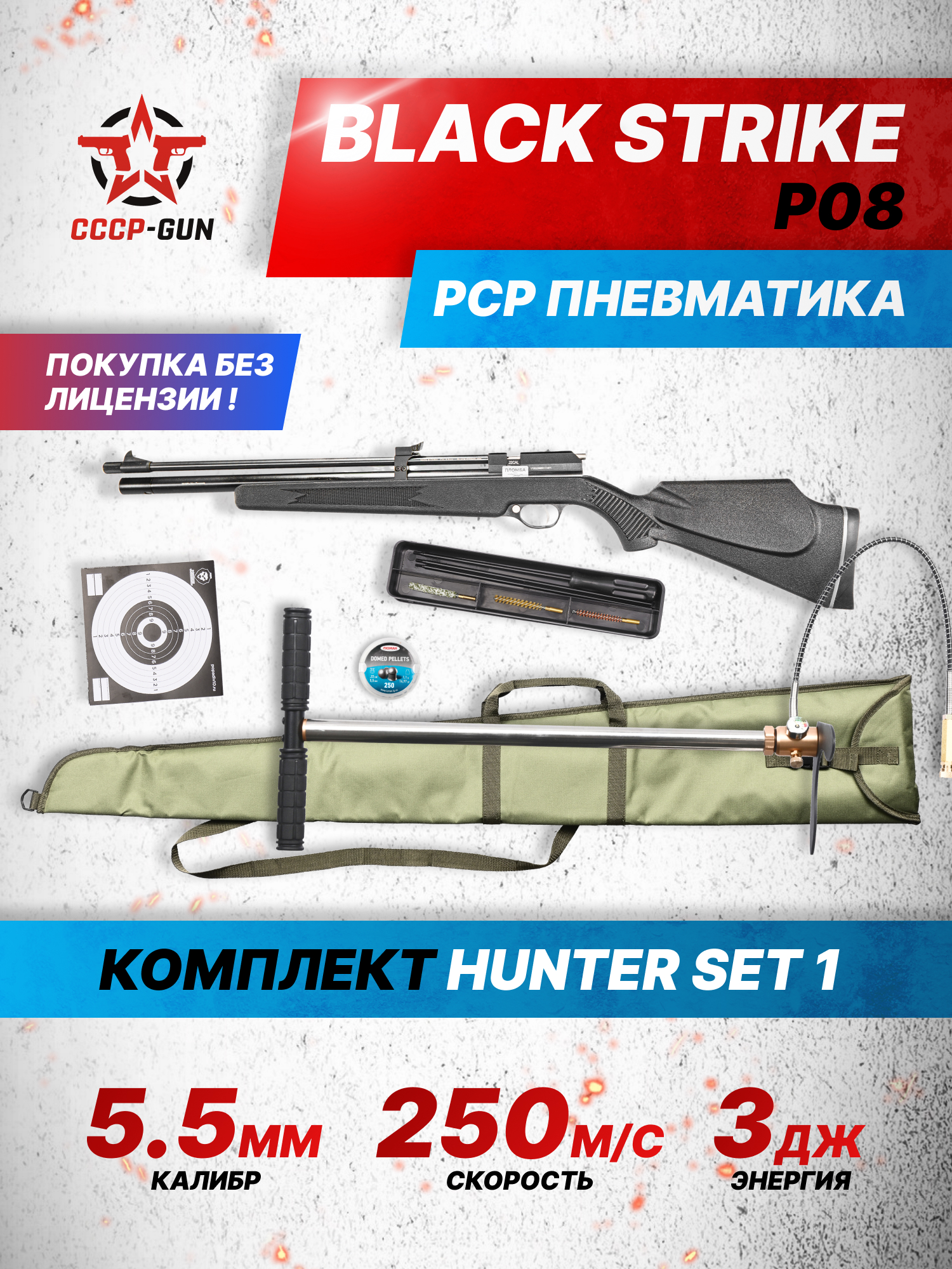 Модель от Блек Страйк раскрывается не только в рамках развлекательной стрельбы, но и в контексте спорта - пуля из ее ствола может лететь со скоростью до 250 метров в сек. Однако, на практике такой параметр указывают для иных стран, а в России фактический показатель энергии заряда при выходе со среза не уйдет за черту 3 Дж. Благодаря этому образец не считается оружием и вытекающие из этого требования не применяются, т.е. П08 допустимо владеть без лицензии.