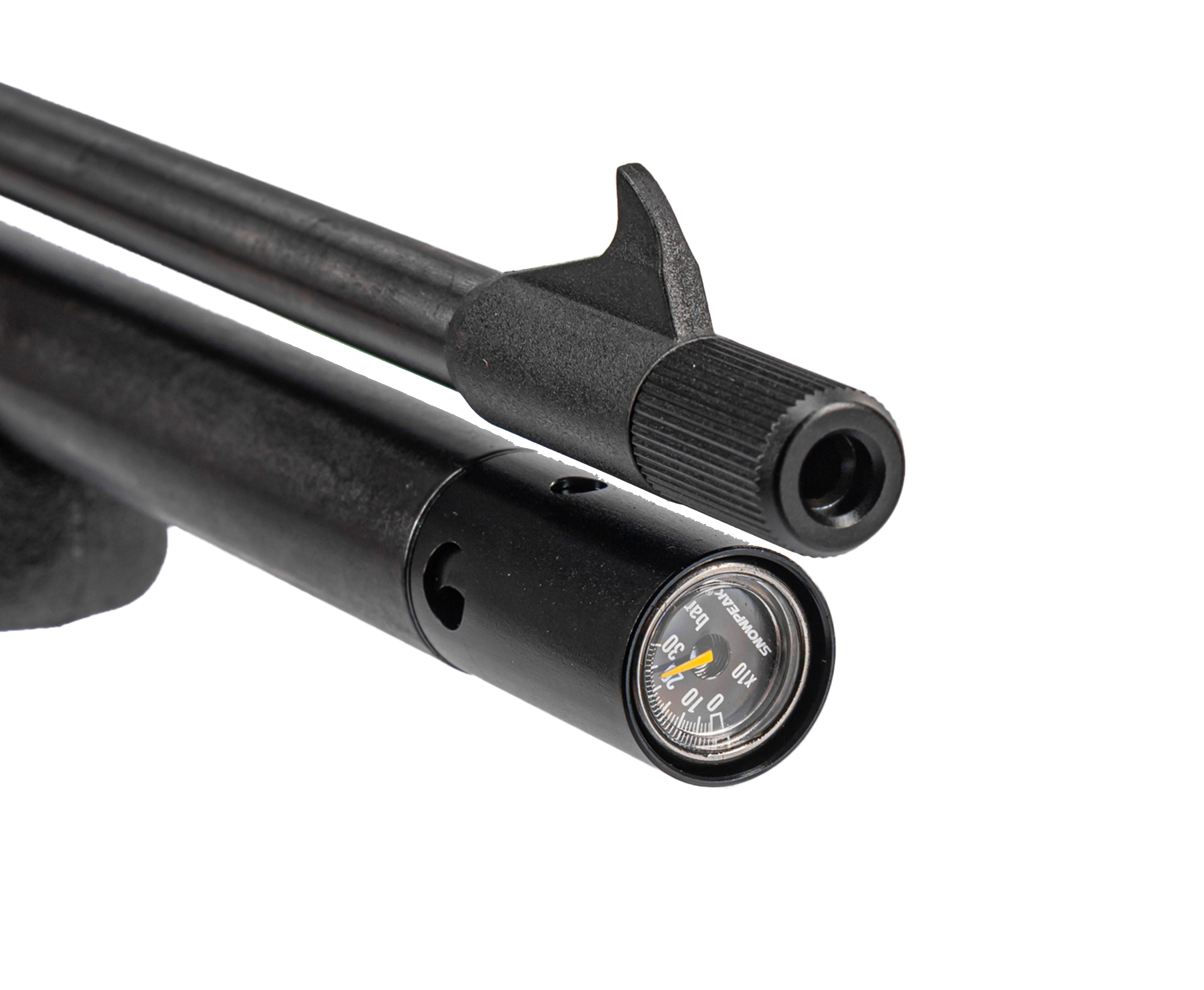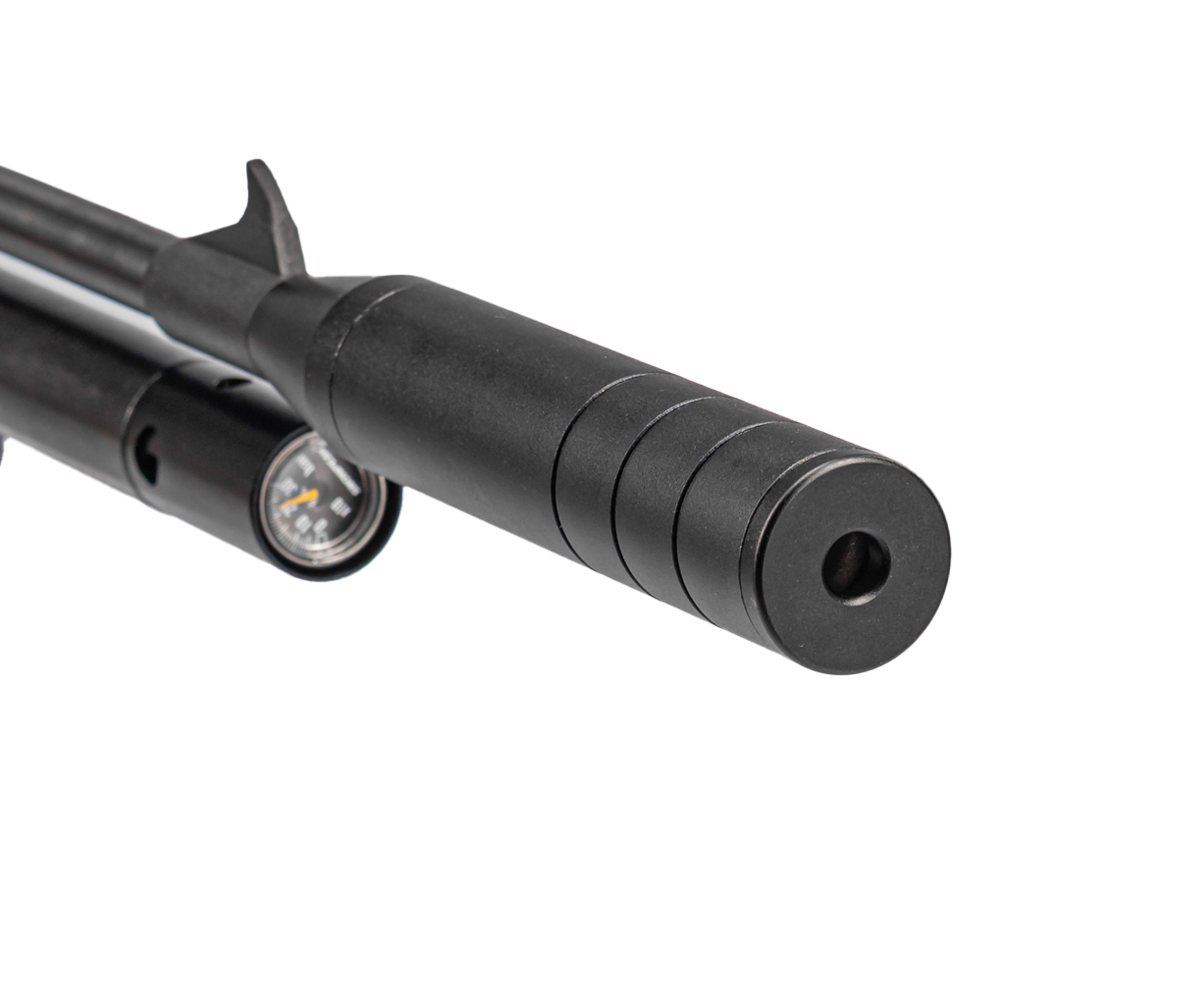 P08 - практичное и недорогое решение для обучения стрельбе и последующей практики. Образец питается от воздуха ВД, который потребуется закачать внутрь ресивера с помощью насоса, предусмотренного комплектом Hunter - заправку проводя посредством подключения шланга к порту через переходник. Пространства в ресивере хватает для содержания 100 куб. сантиметров воздуха, находящегося там под давлением не более 200 Бар - последнее получится отследить по манометру.