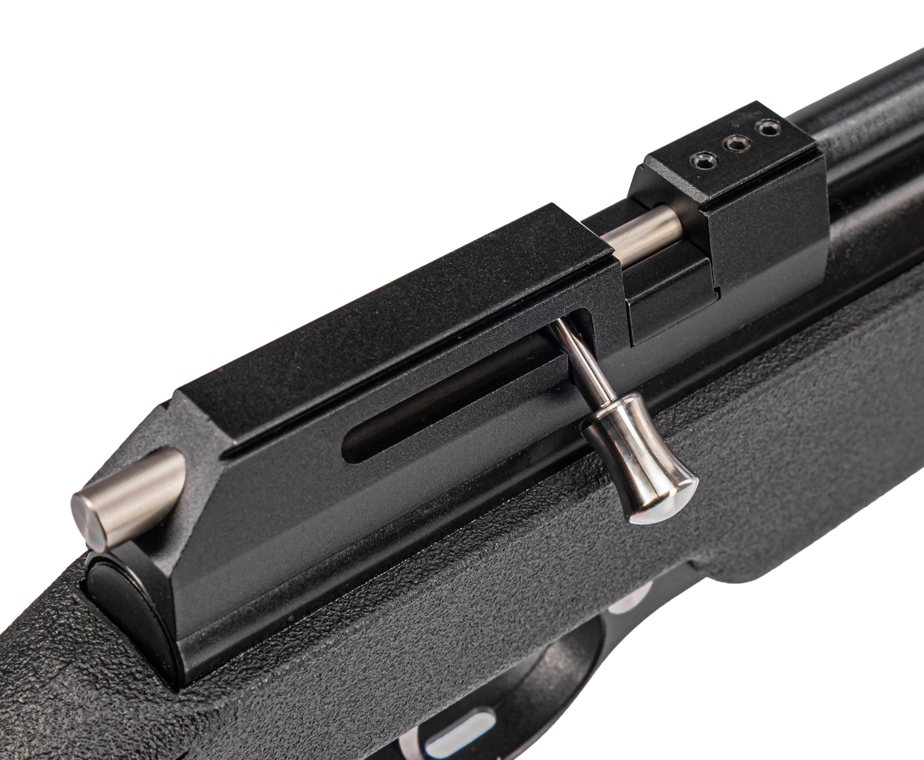 Как и большинство винтовок типа ПСП этот экземпляр оснастили досылателем, приводимым в действие вручную - это помогает сохранить геометрию при ее передвижении в казенник, а также снижает вероятность задержки. В то же время тут нашлось место для 7 зарядного барабанного магазина, который будет выставлять следующий заряд на вектор досылания после отведения затвора назад. Этому способствует механизм автоподачи.