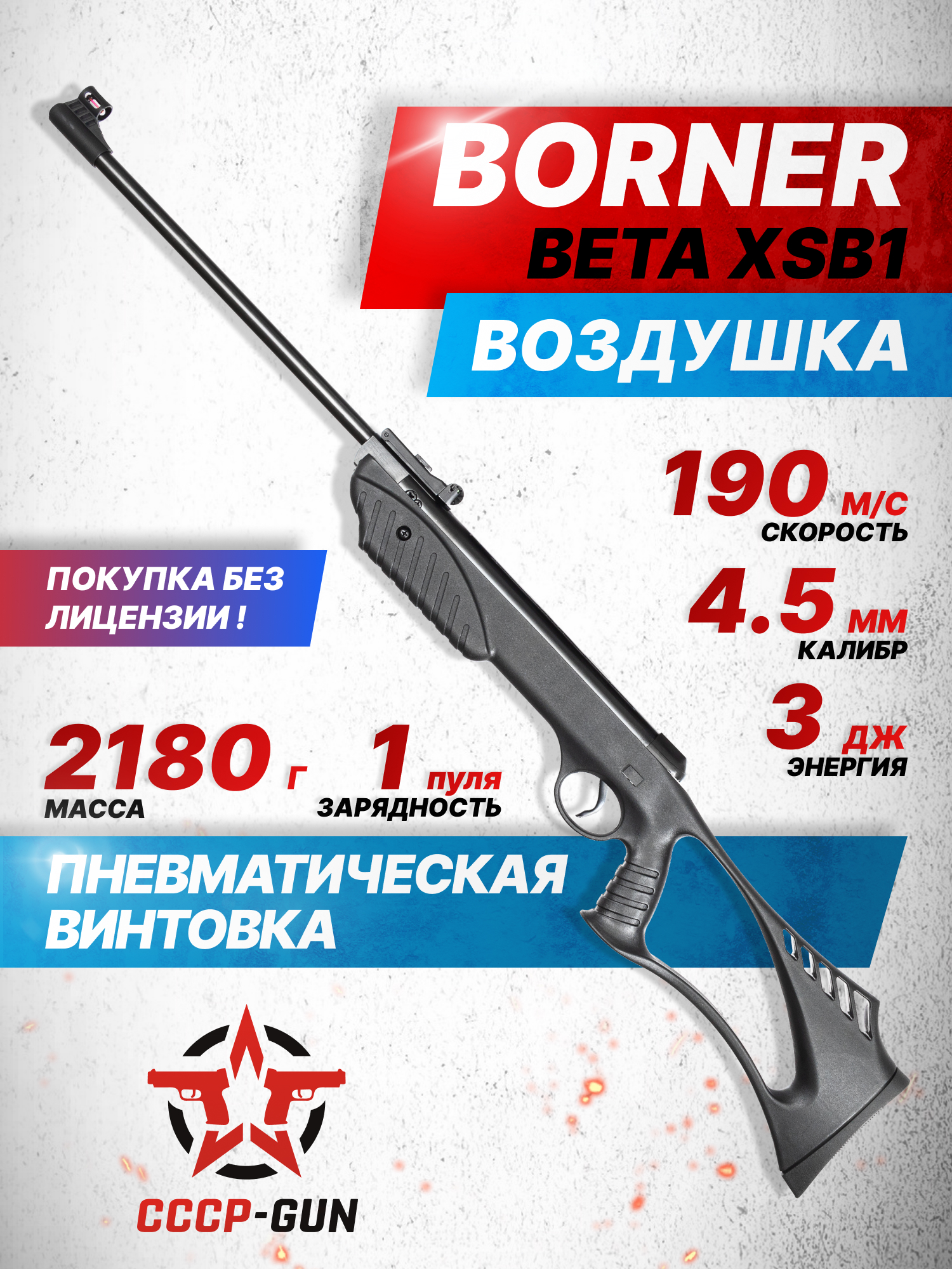 Приобретается рассматриваемая пневматическая винтовка Borner Beta XSB1 в России свободно, не требуя от стрелка оформления специализированных документов в органах лицензионно-разрешительной работы благодаря сниженному показателю дульной энергии, который не превышает 3 Джоуля. В свою очередь, образцы, прошедшие усиление боевых механизмов, способны демонстрировать разгон воланчикового боеприпаса до скоростной отметки в 190 метров в секунду.
