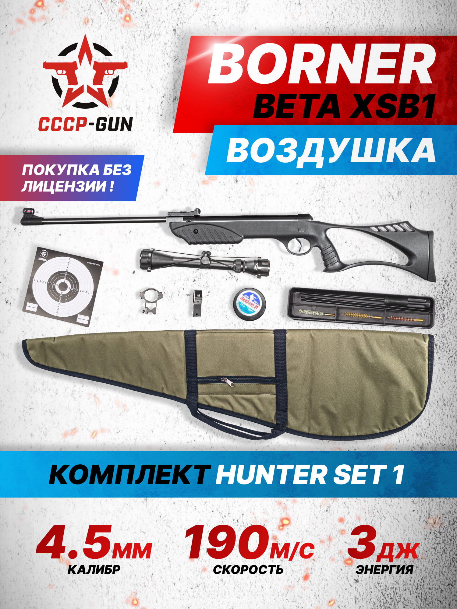 Последний в конкретном случае собран на основе востребованной и надежной винтовки Бета переломного типа от компании Борнер и дополнительно включает расходные компоненты. Последние представлены в виде боеприпасов, мишенных листов, а также набора для чистки и микрофибры. Таким образом, покупая набор, стрелок сможет немедленно опробовать пневматику в деле без лишних временных затрат.