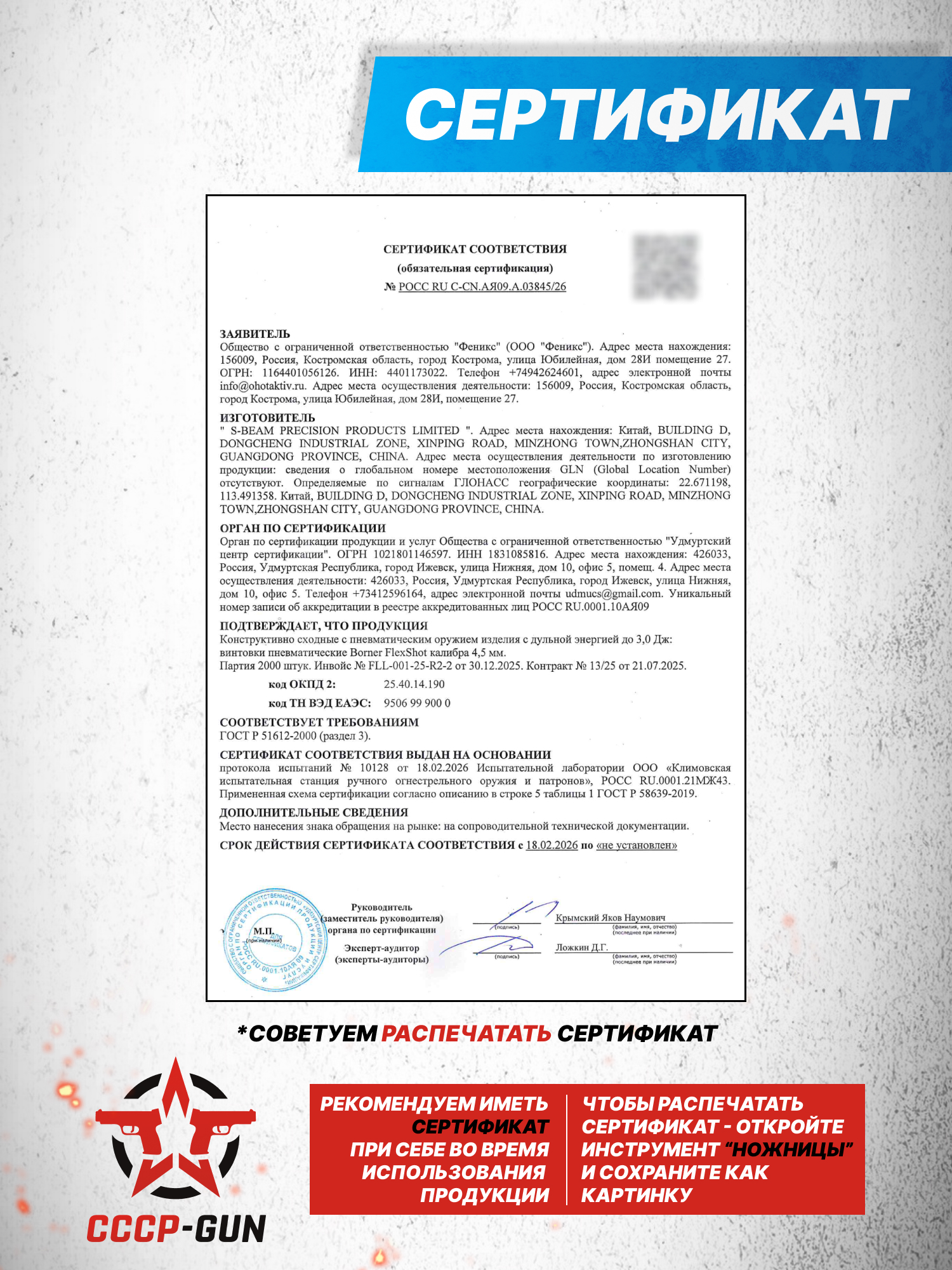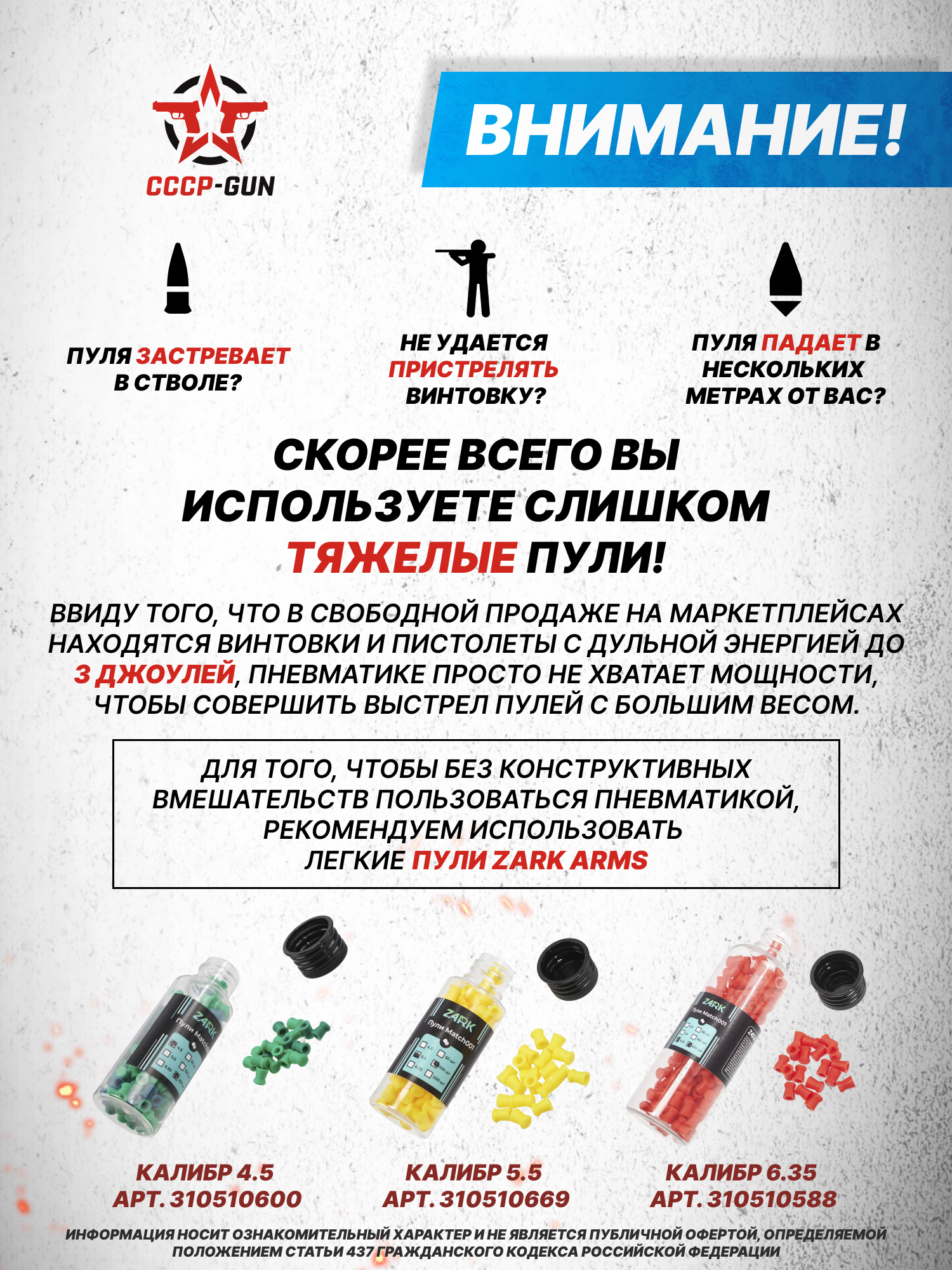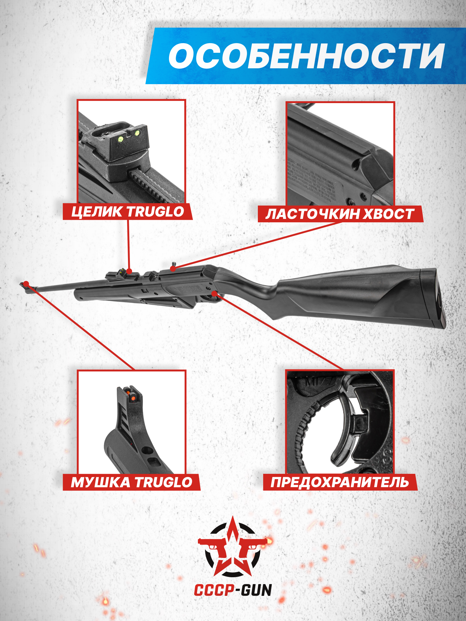 Внимание! Данная модель поставляется в разрешенной мощности для свободного приобретения на территории Российской Федерации. При этом в модели имеется возможность увеличения мощности путем замены части деталей или настройки конструкции, однако не стоит забывать о Федеральном законе «Об оружии» № 150 - ФЗ. В случае необходимости, опираясь на данный закон и руководствуясь им, возможно, потребуется получить разрешение от ЛЛР ГУ МВД России после вмешательства в конструкцию.