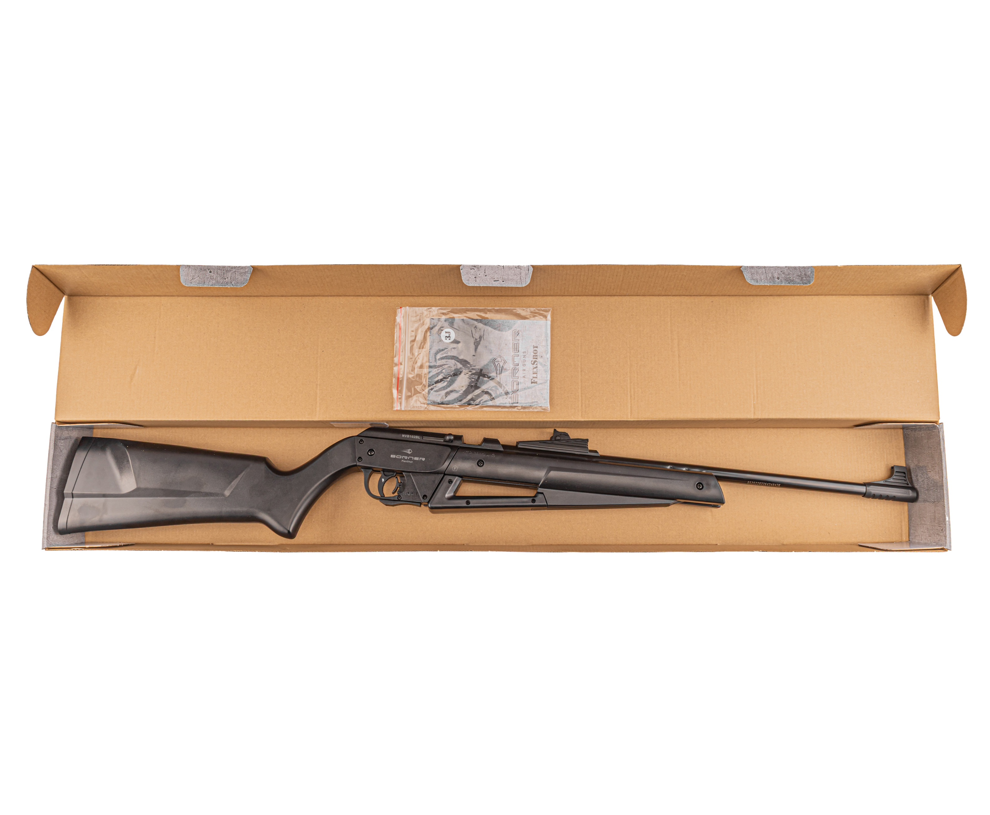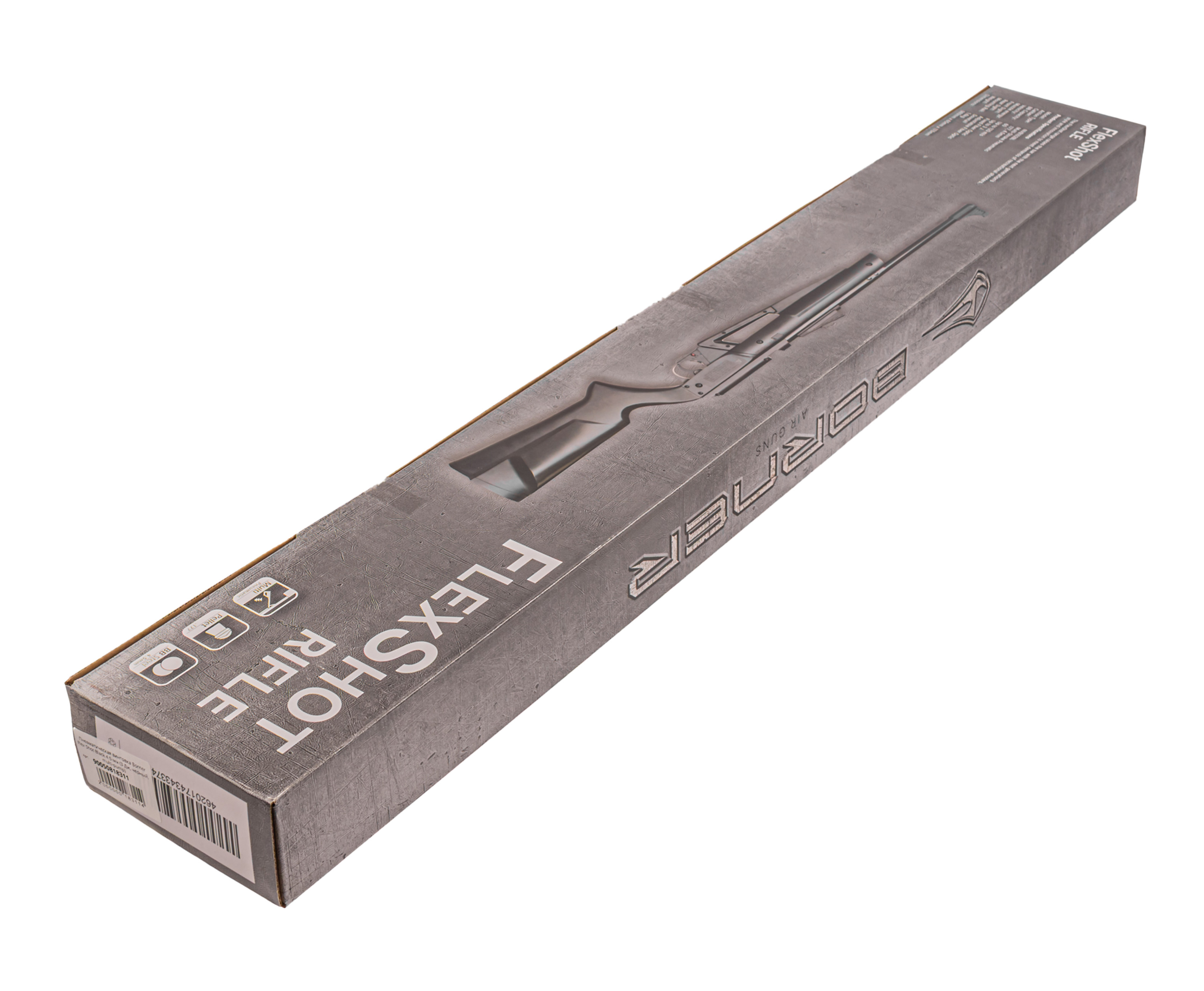 Показатель начальной скорости пули при выстреле может достигать в среднем 230 м в сек - при этом следует отметить, что винтовка Borner Flex Shot поставляется с дульной энергией, не превышающей 3 Дж. Исходя из этого факта, для покупки описываемого экземпляра не нужно оформлять специальное разрешение - приобрести подобную модификацию свободно могут граждане, достигшие совершеннолетия.