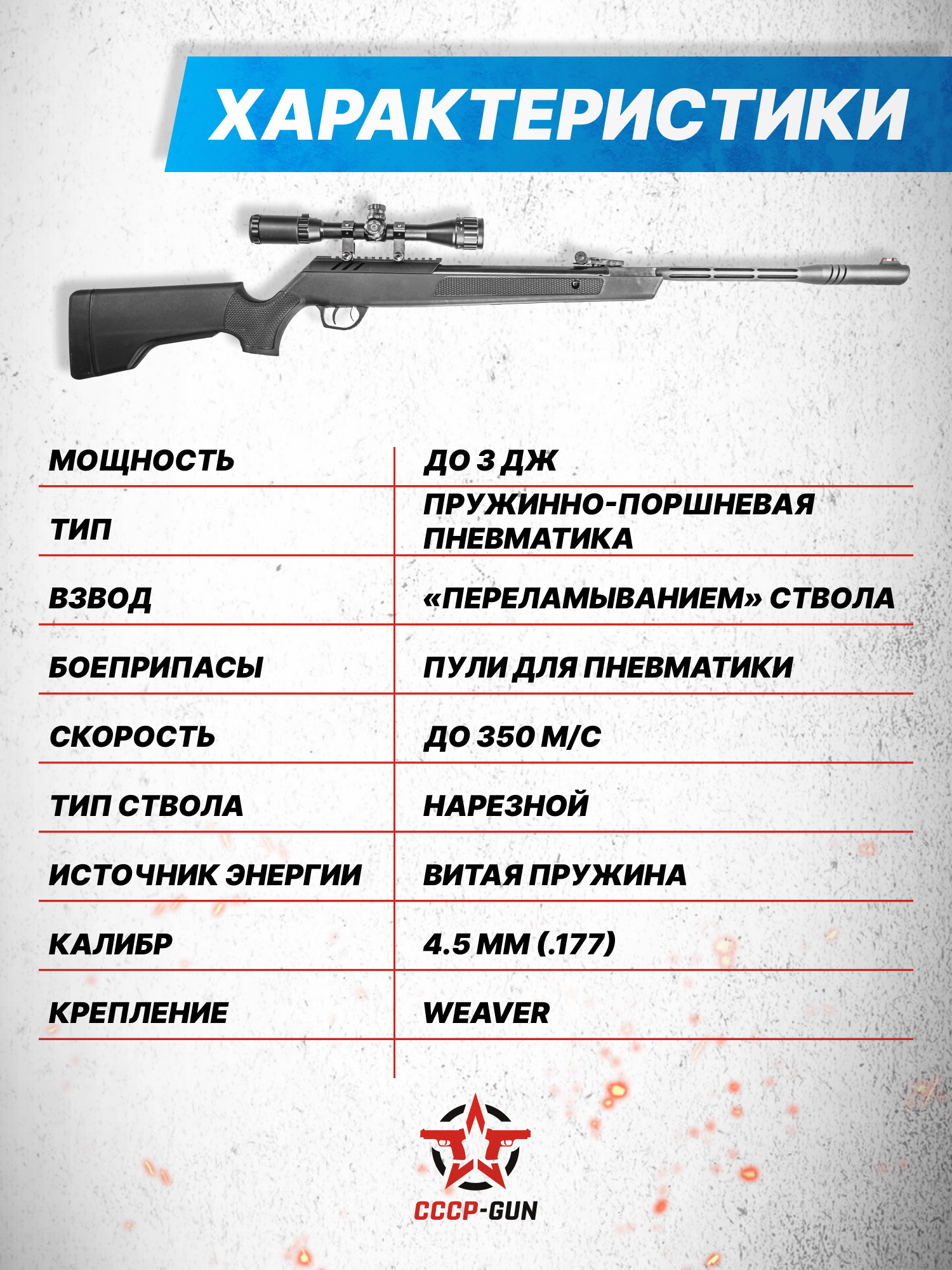 Компания заявляет о скорости полета пульки до 350 метров в сек, однако, потенциал этой конструкции ощутимо выше. Изделия для российских условий намеренно собирают в дефорсированном исполнении - такая пневматика не выдаст энергию более 3J. За счет этого подобные воздушки находятся в свободном обороте.