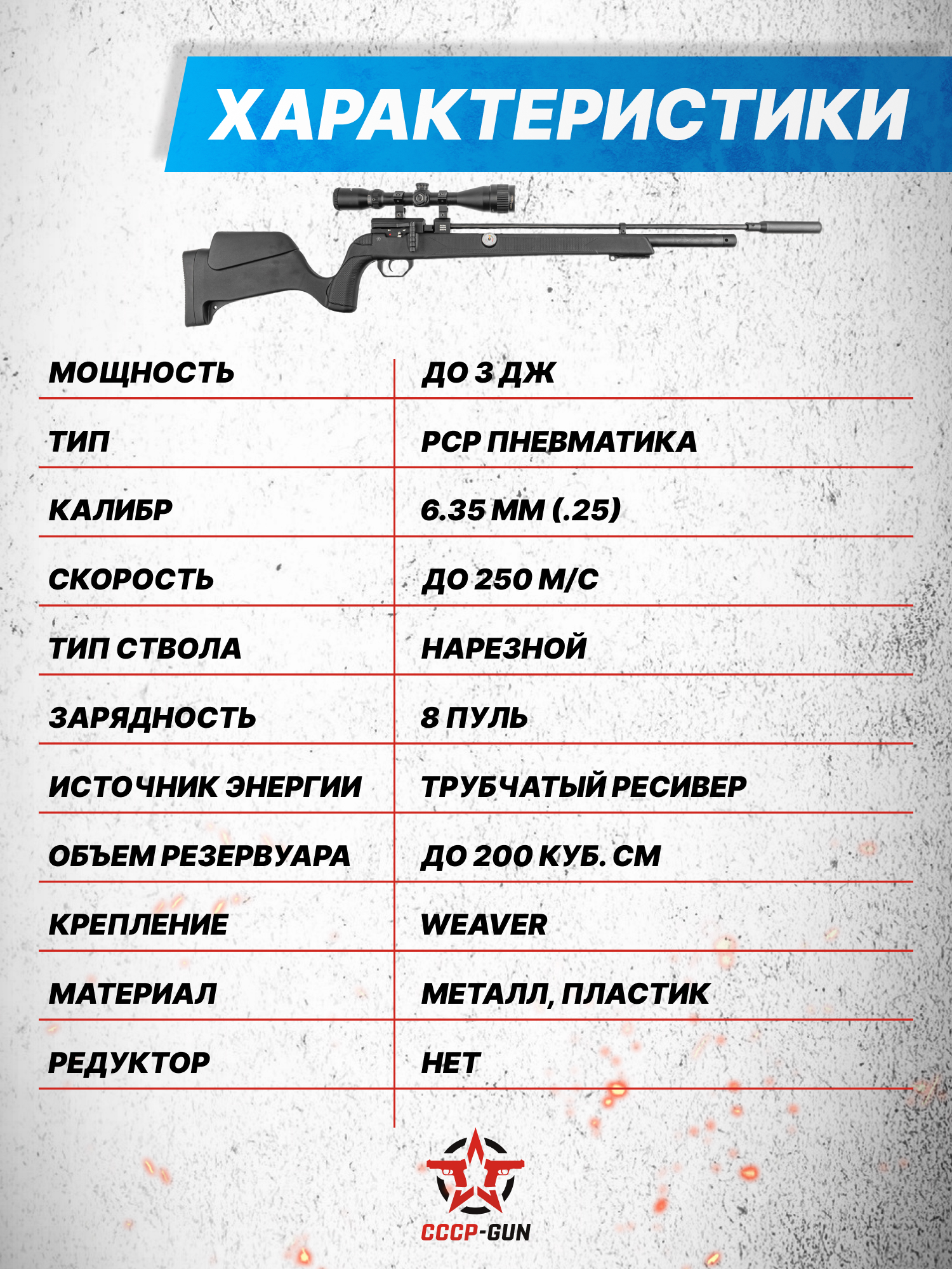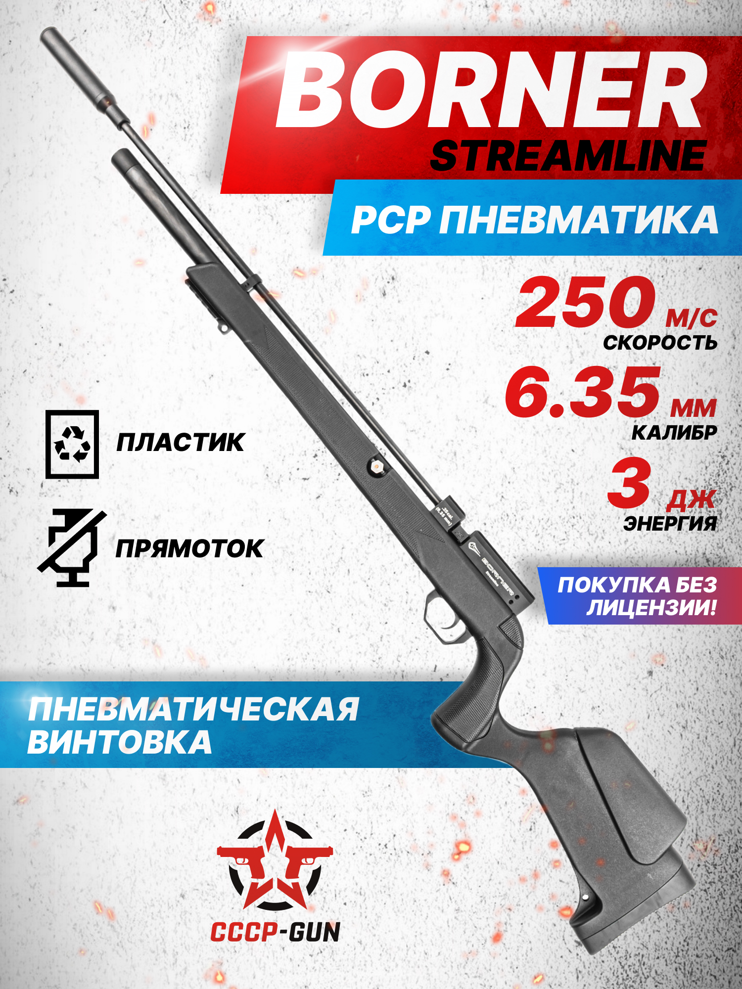 Описание пневматической винтовки Borner Streamline 6.35 мм (3 Дж, черный, пластик)