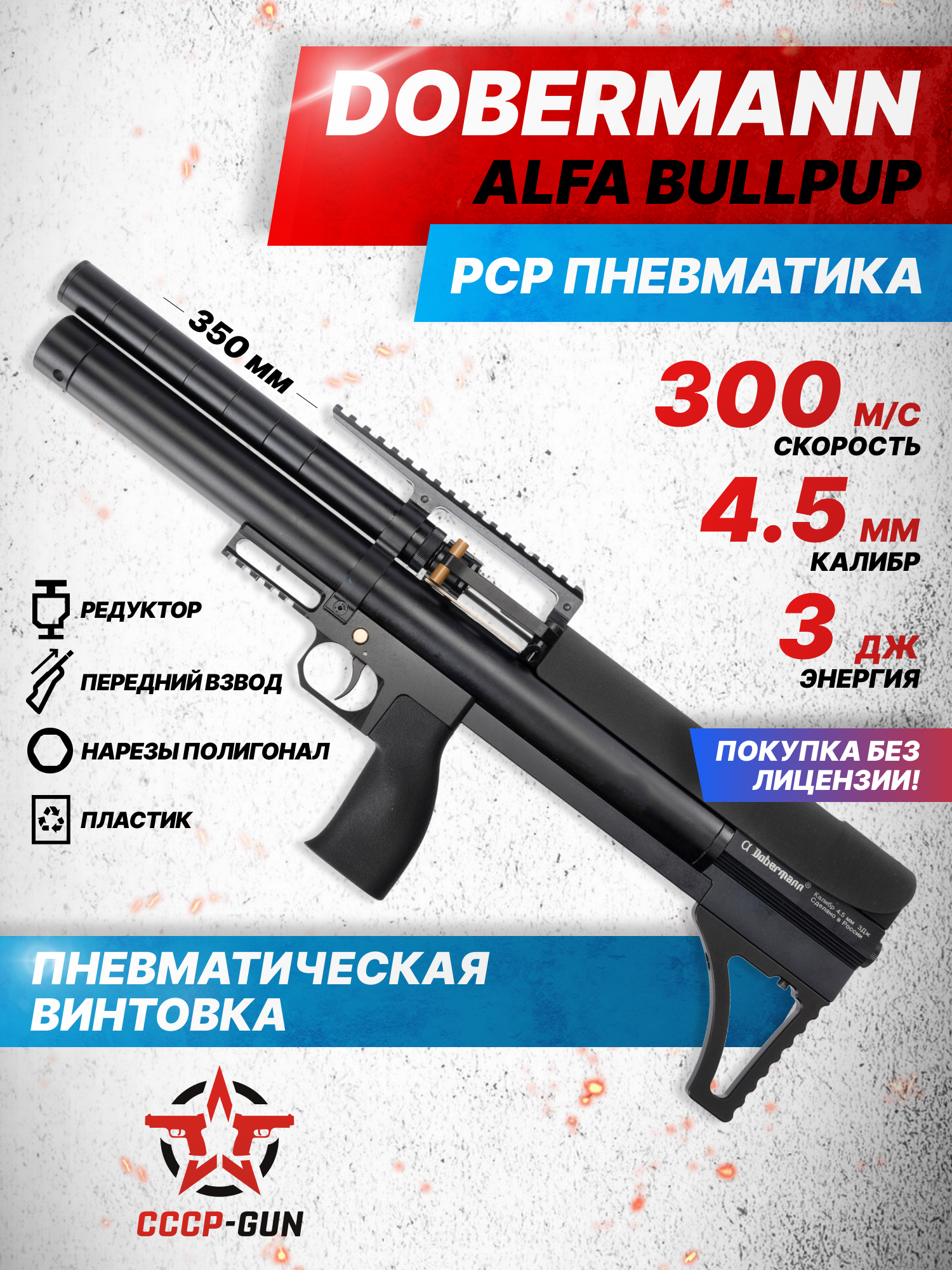Российский сегмент пневматического оружия типа ПСП представлен моделями всевозможного исполнения, включая как импортные, так и местные разработки. Среди продукции РФ производства рассмотрения заслуживают образцы от предприятия Dobermann. Ключевым достоинством изделий от этой компании справедливо называют тщательно разработанную архитектуру, проявляющуюся в практичных и удобных свойствах выпускаемых винтовок.