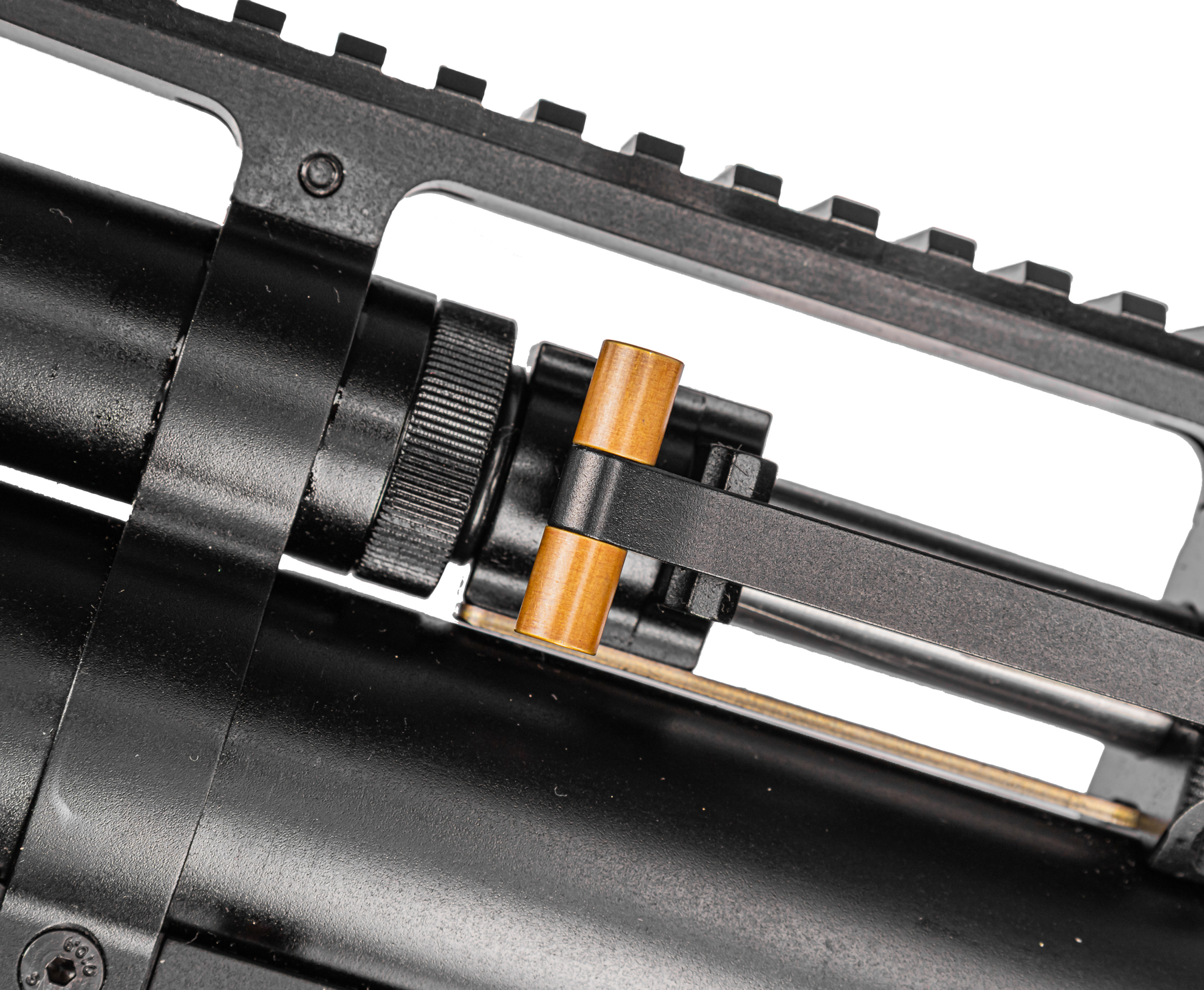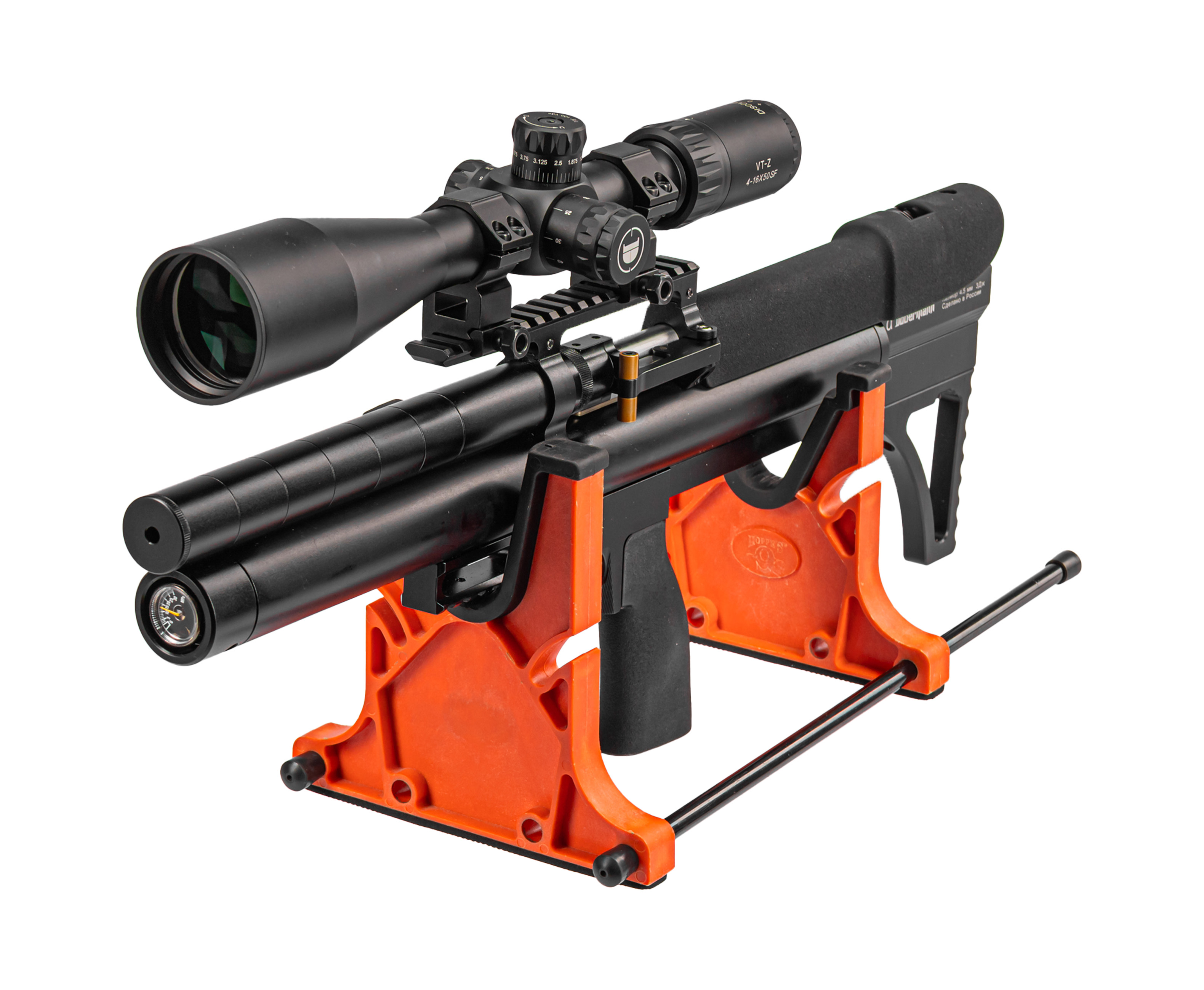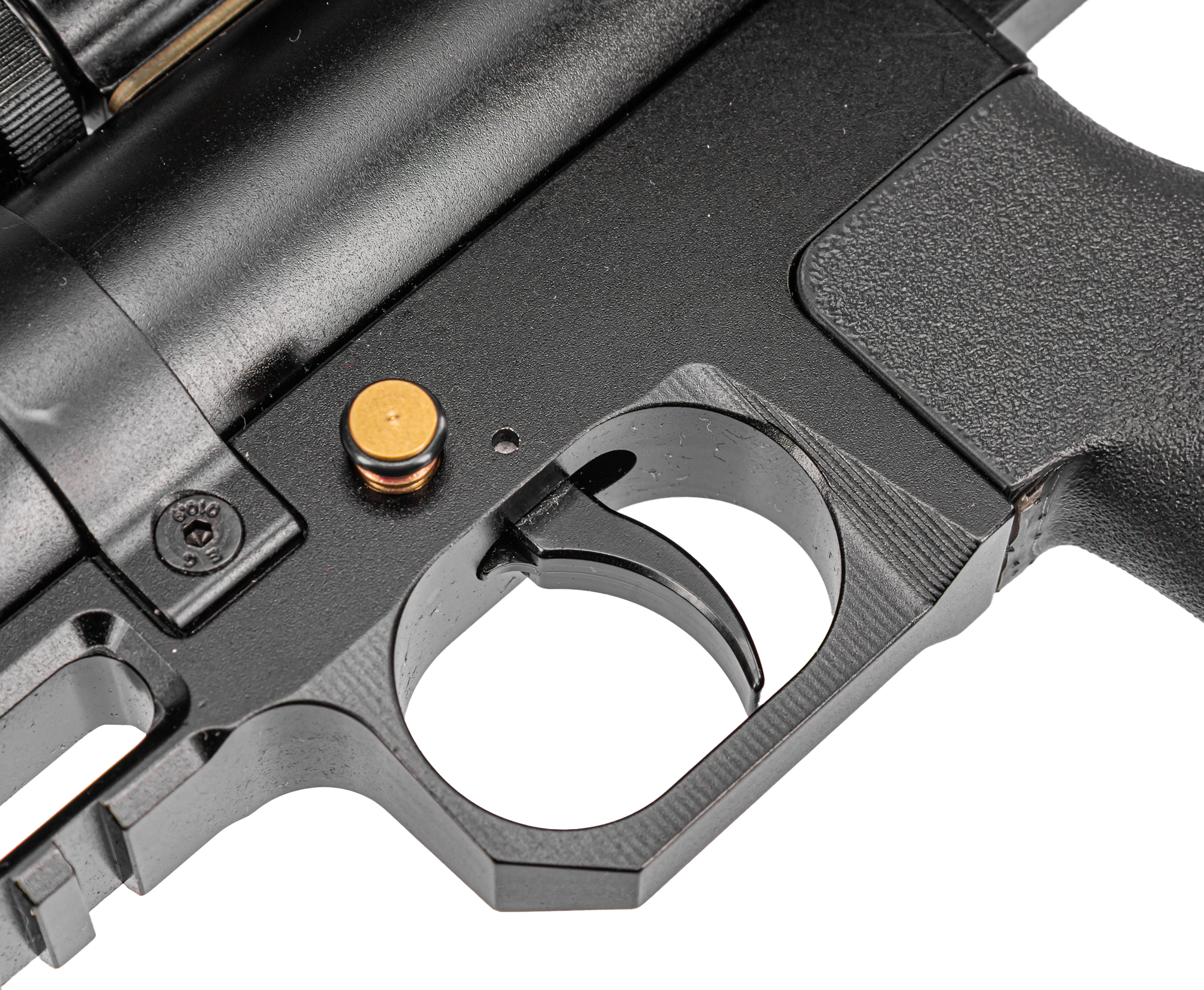 Сам нарезной бланк изготавливается методом ковки из стали и оснащен полигональными нарезами внутреннего канала - диаметр последнего предполагает применение свинцовых боеприпасов калибра 4.5 мм. Помимо повышенного эксплуатационного ресурса, ствол дополнен модератором, уменьшающим звуковой эффект при выстреле.