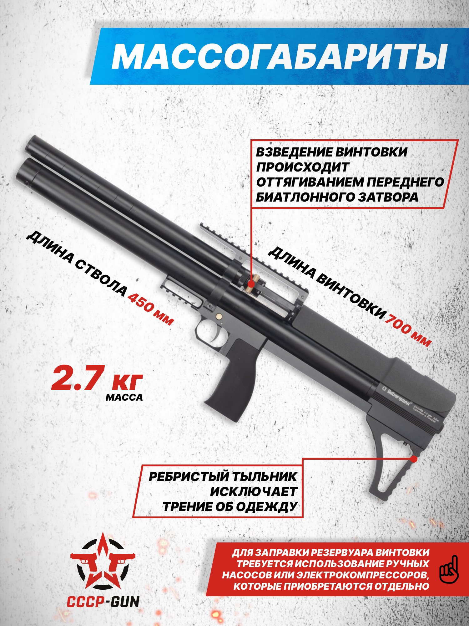 Российский производитель Dobermann проявил себя как изготовитель надежных и технологически продвинутых пневматических винтовок. Платформы этой марки сочетают эргономику, точную механику и продуманные инженерные разработки. PCP модель Alfa Bull-Pup 4.5 - это сбалансированное решение для тех, кто ищет компактность и широкие возможности тюнинга.