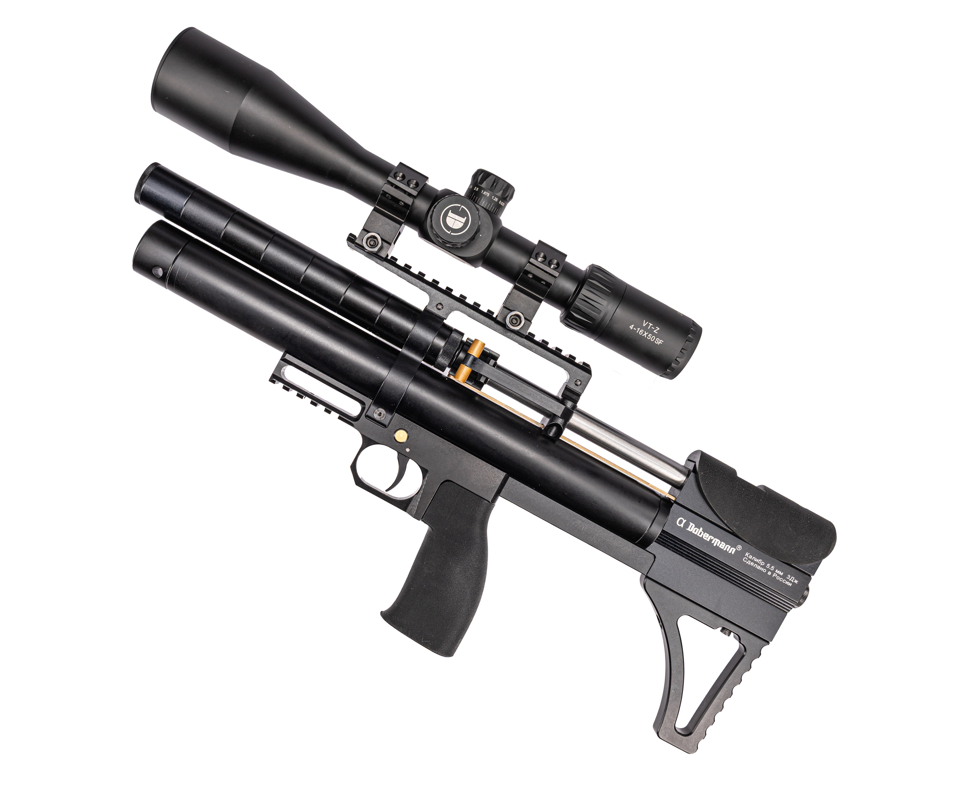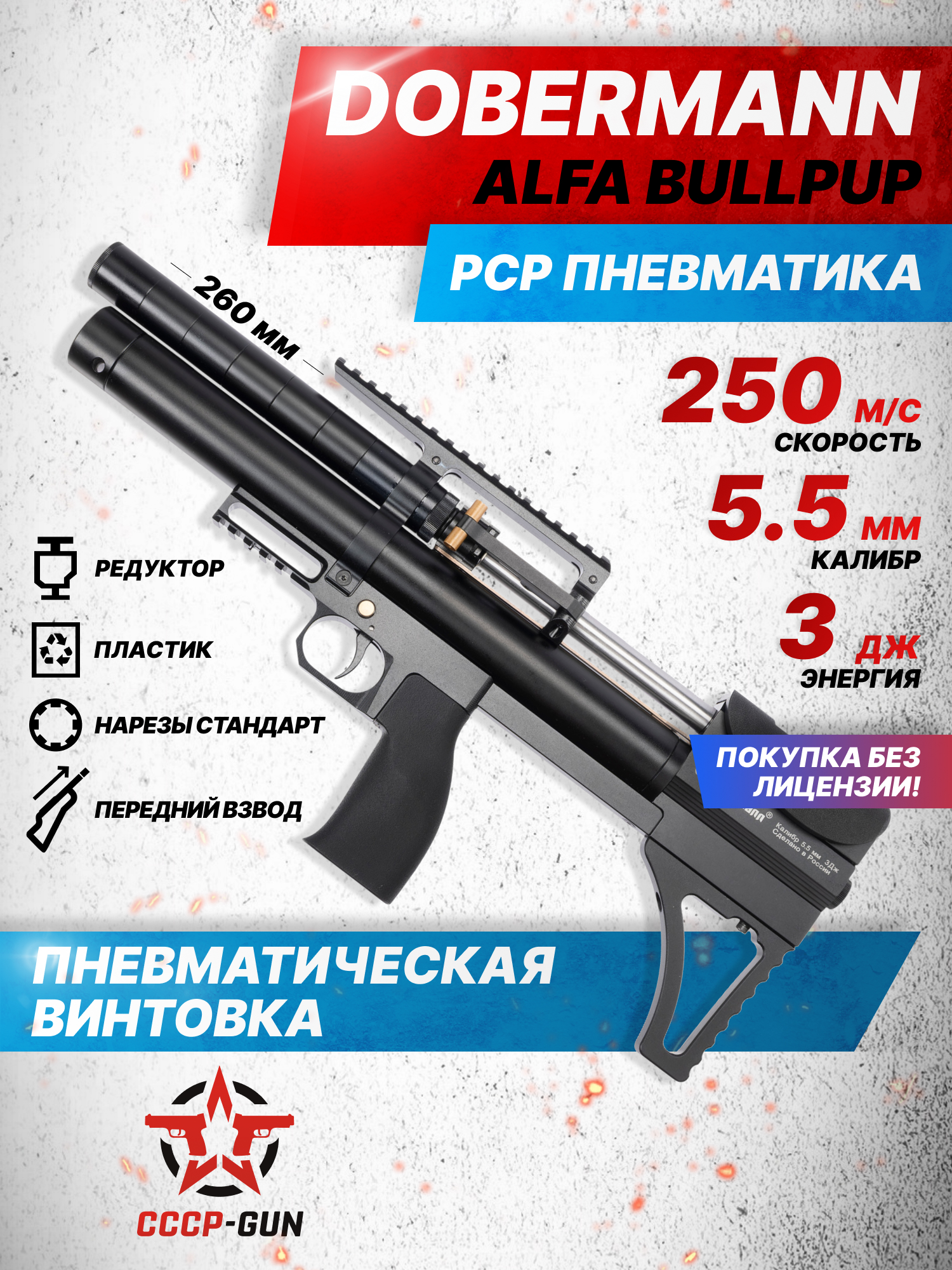 Компания Dobermann специализируется на производстве высокоточных пневматических винтовок, которые сочетают продуманную эргономику и инженерные решения, направленные на стабильную работу. Линейка экземпляров этого бренда отличается надежными материалами, функциональной конструкцией и вниманием к деталям. К таким изделиям относится обозреваемая модель Alfa Bull-Pup 5.5 мм, разработанная для пользователей, которые ценят компактность.