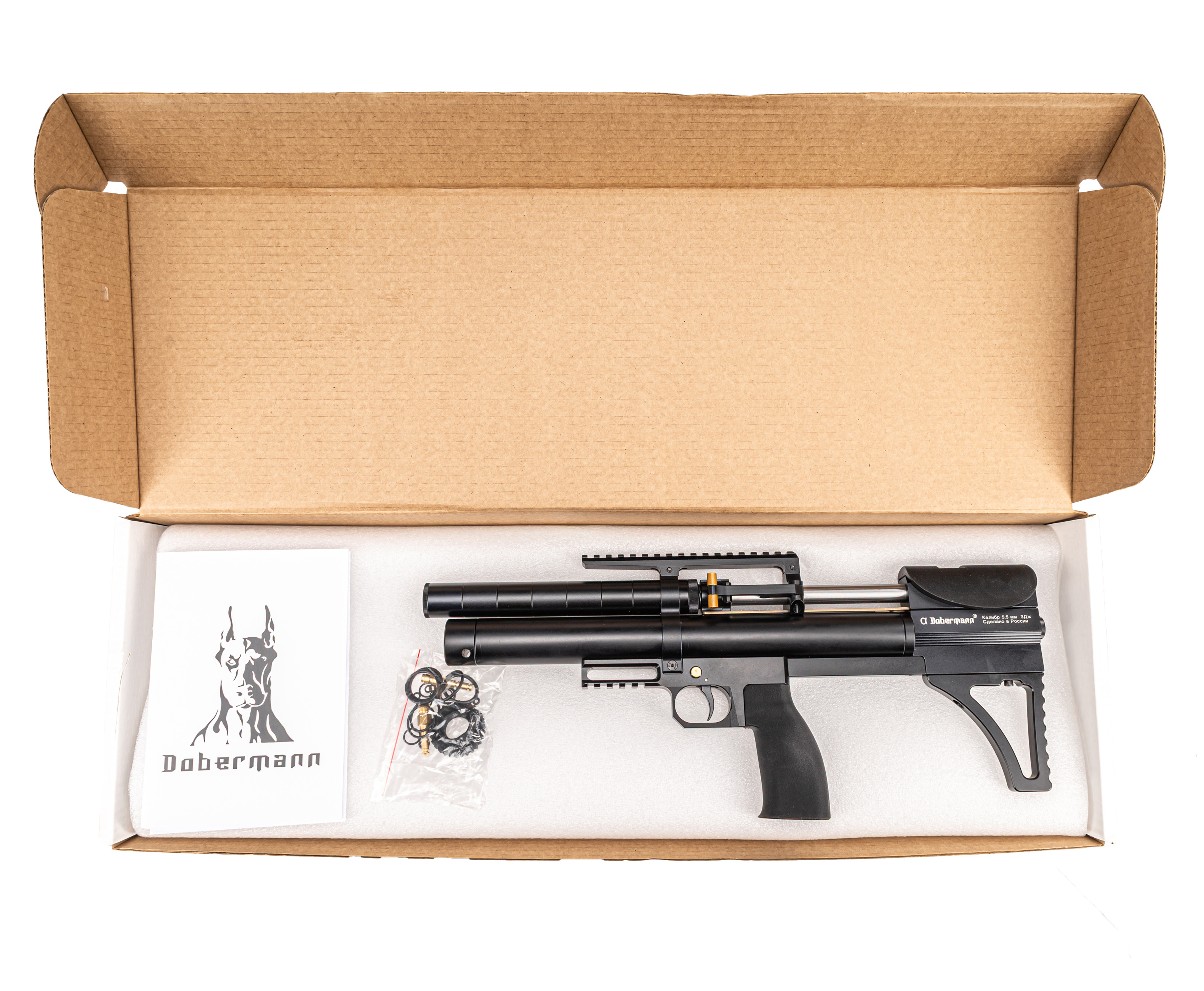 Рассматриваемая модель Dobermann обладает мощностью, не превышающей показатель 3 Джоуля, благодаря этому ее можно использовать без необходимости оформления лицензии. После некоторых модификаций, изделие способно разогнать снаряд до скорости в 250 метров в секунду. Такие показатели позволяют совершать результативные выстрелы на дальние дистанции.
