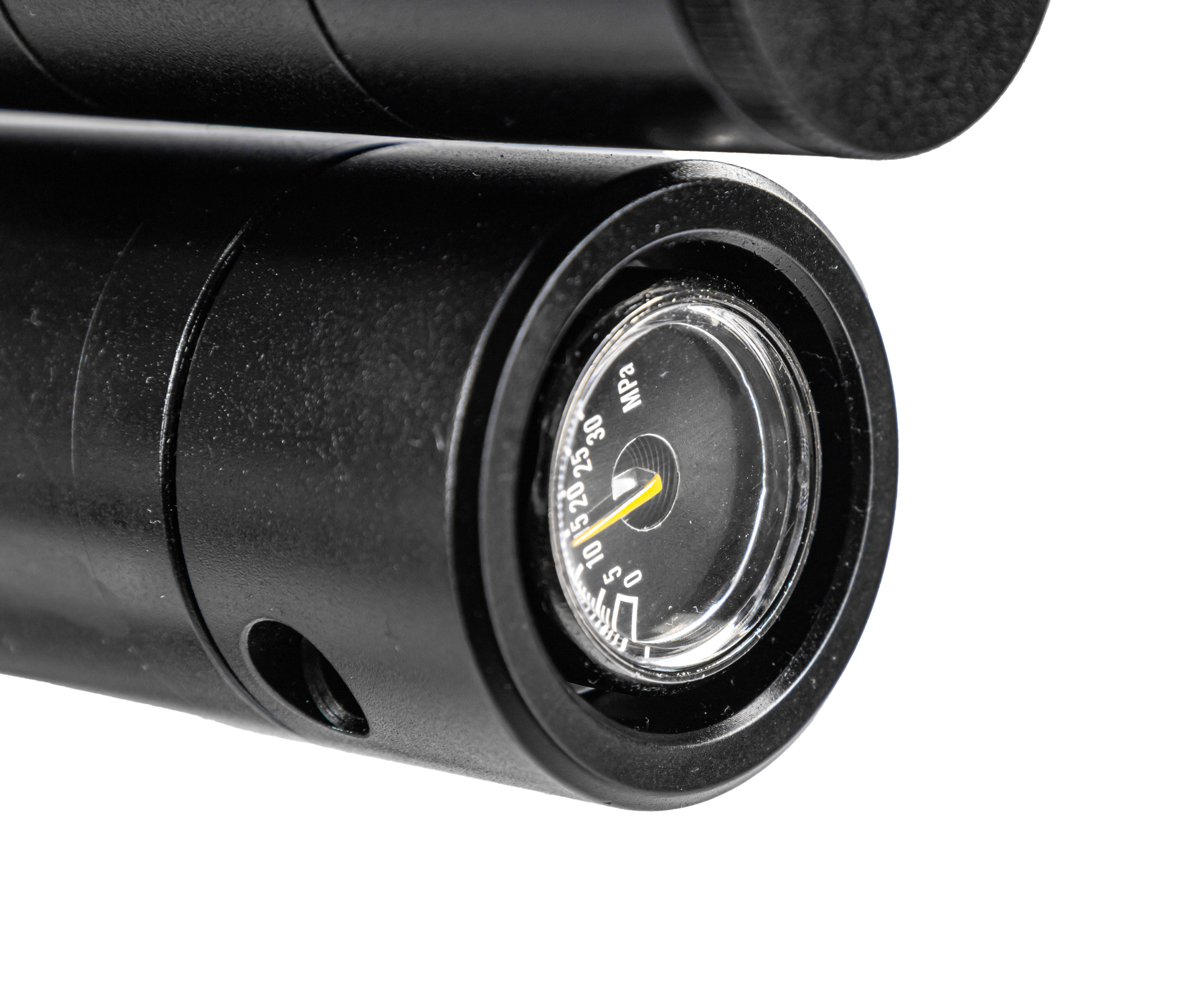 Ресивер объемом 204 куб. см, без учета редуктора, обеспечивает достаточный запас воздуха для продолжительного занятия стрельбой. Рабочее давление баллона достигает 250 Бар. Встроенный манометр дает возможность контролировать этот параметр и вовремя заправлять резервуар.