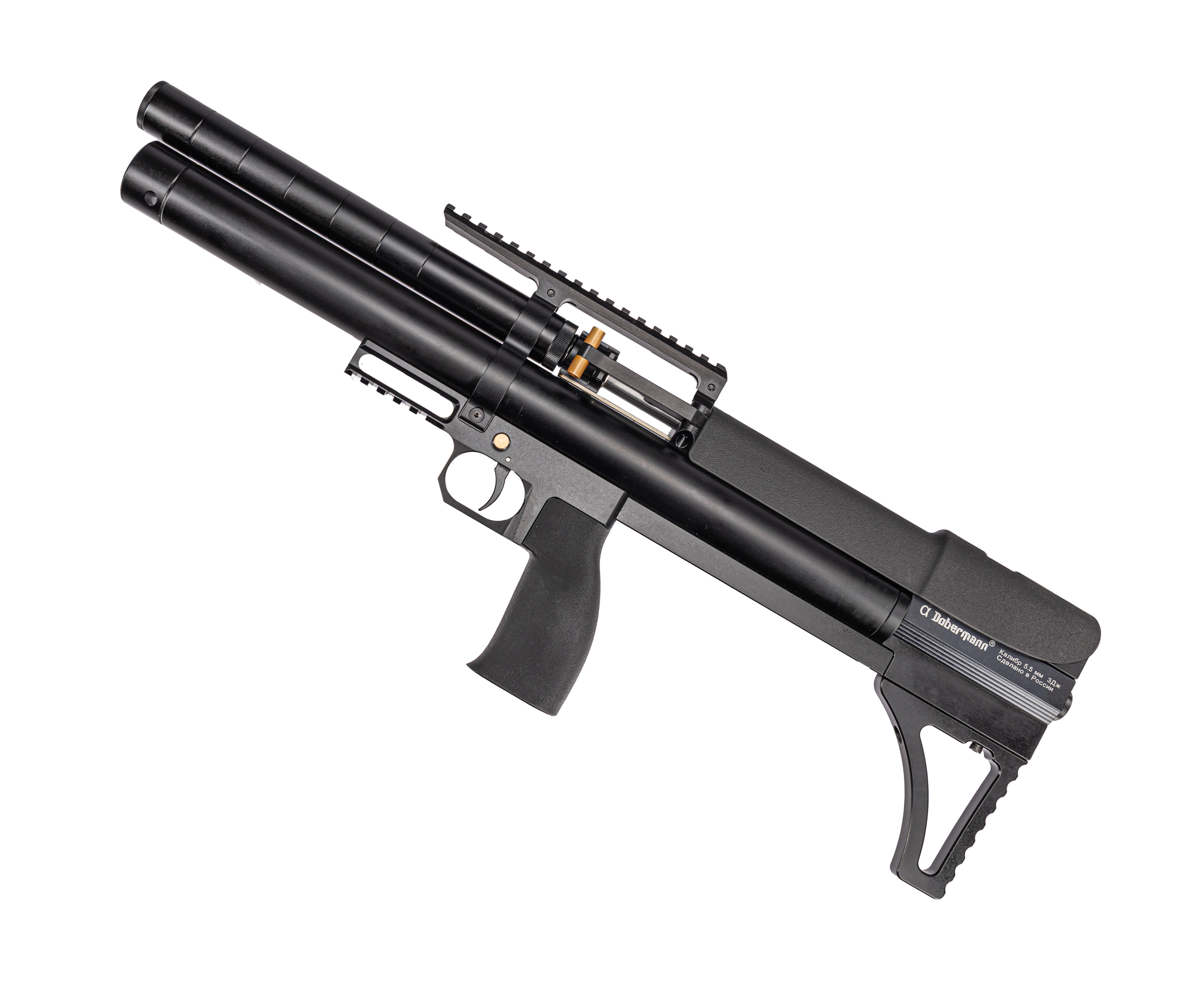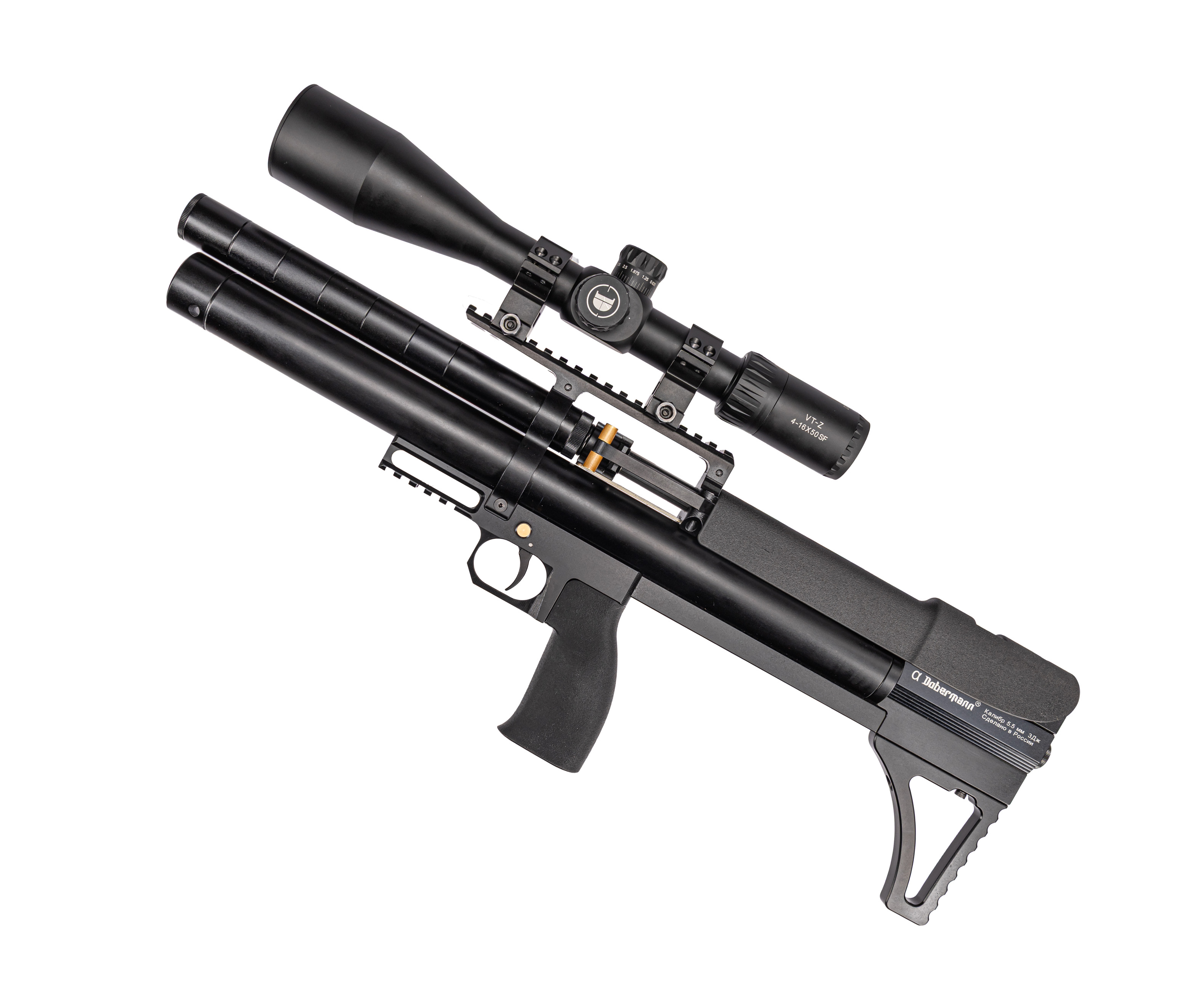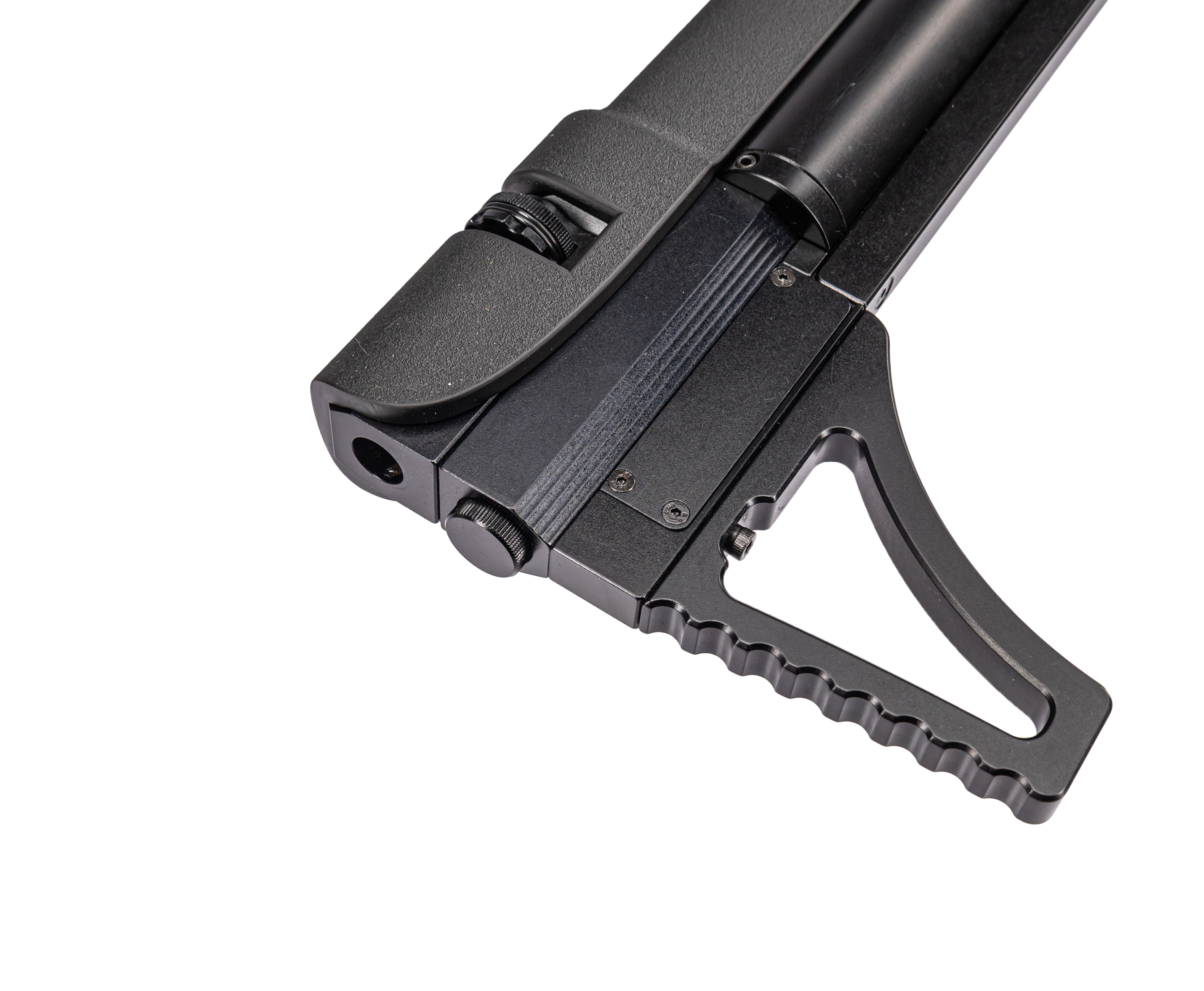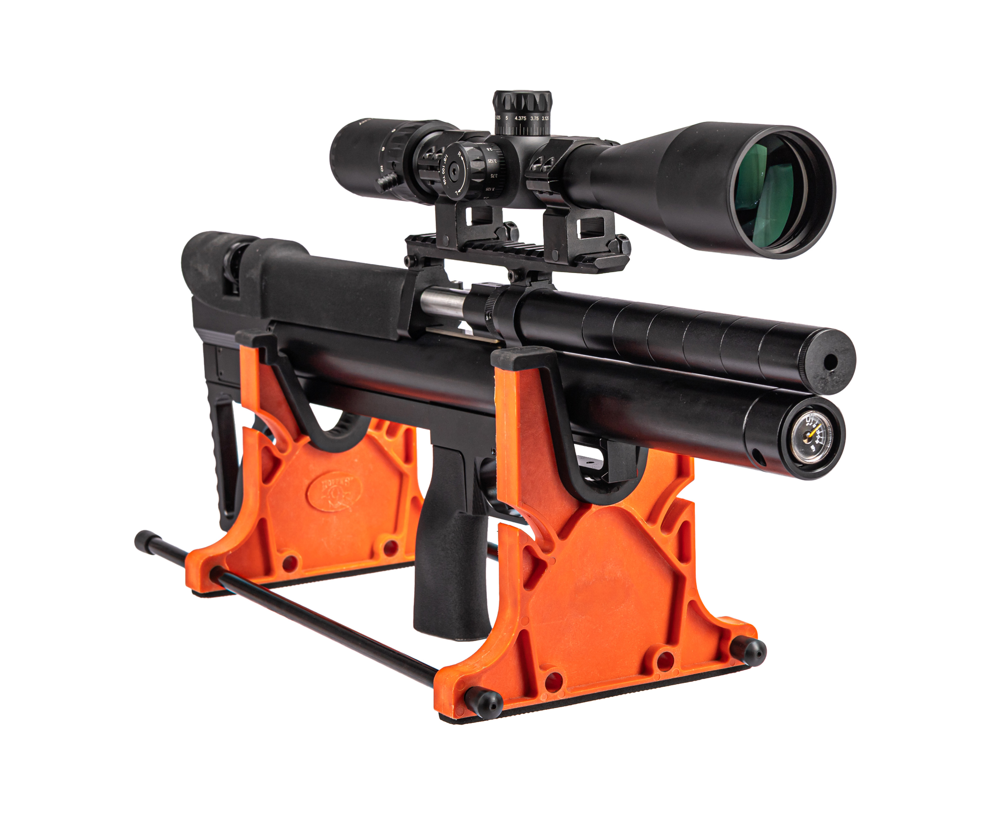 В основе конструкции платформы лежит PCP система с установленным редуктором, который поддерживает стабильное давление от выстрела к выстрелу независимо от остатка воздуха в ресивере. Такой подход делает кучность плотнее.