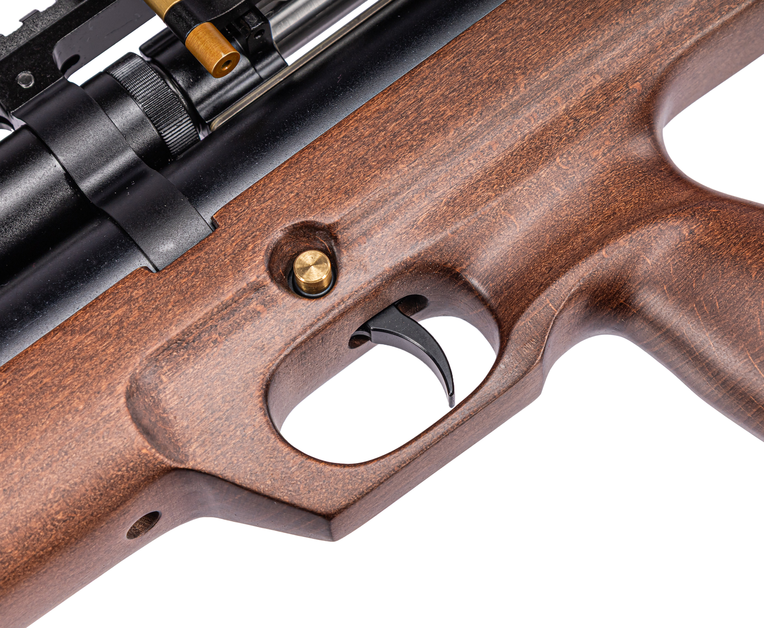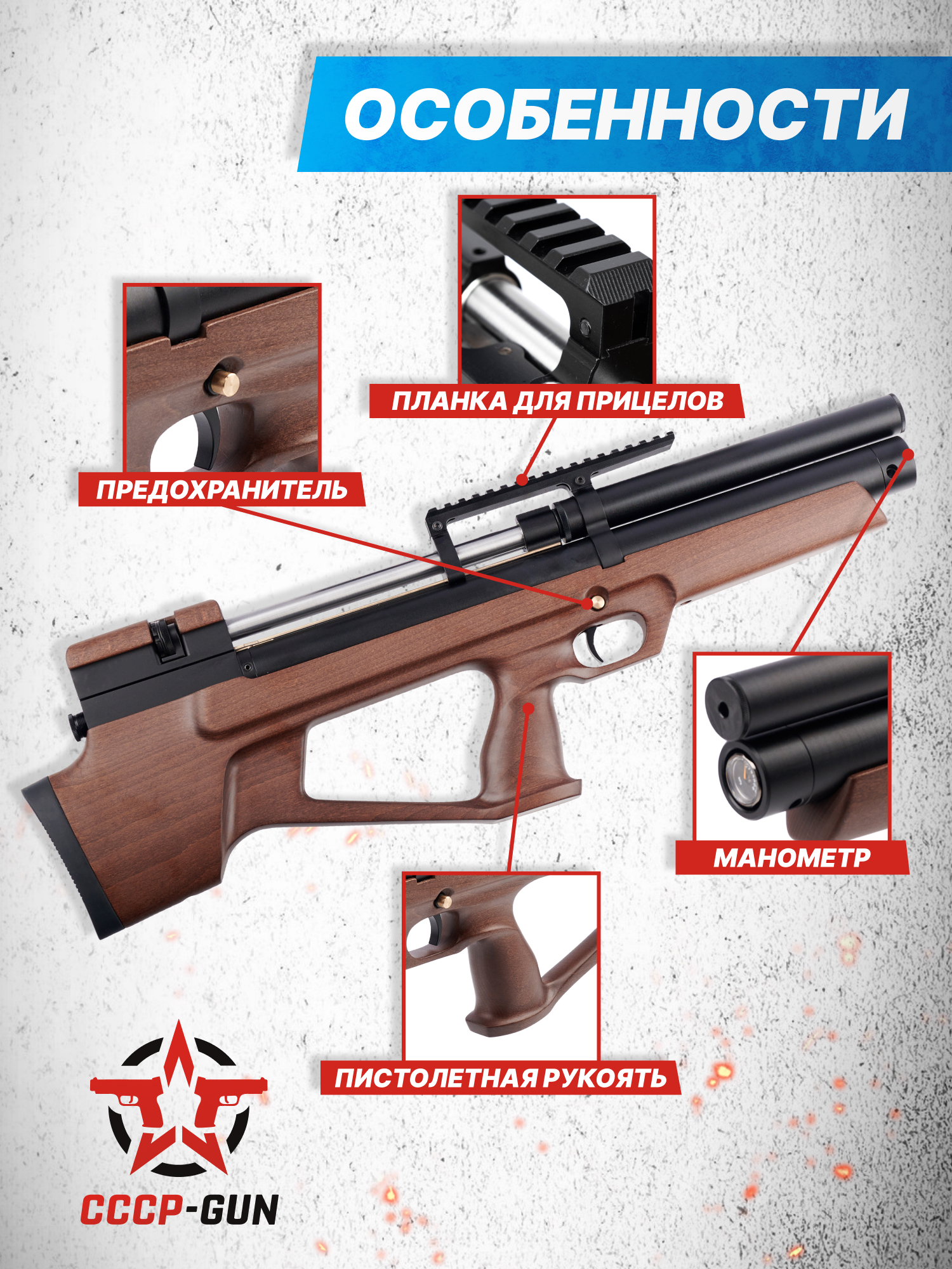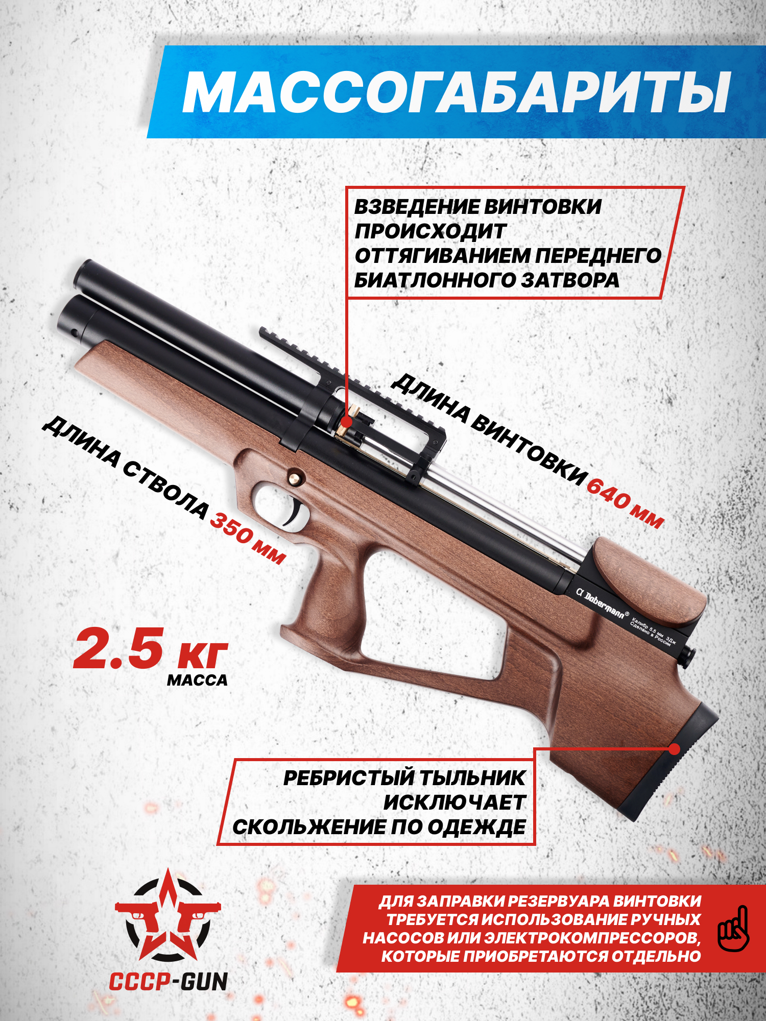 Одной из таких разработок стала рассматриваемая пневматическая винтовка Alfa Dobermann 350 Bull-Pup. Она построена по схеме PCP прямоточного типа. Такой принцип работы наделяет изделие повышенной дульной энергией, поскольку давление не регулируется вспомогательными узлами.
