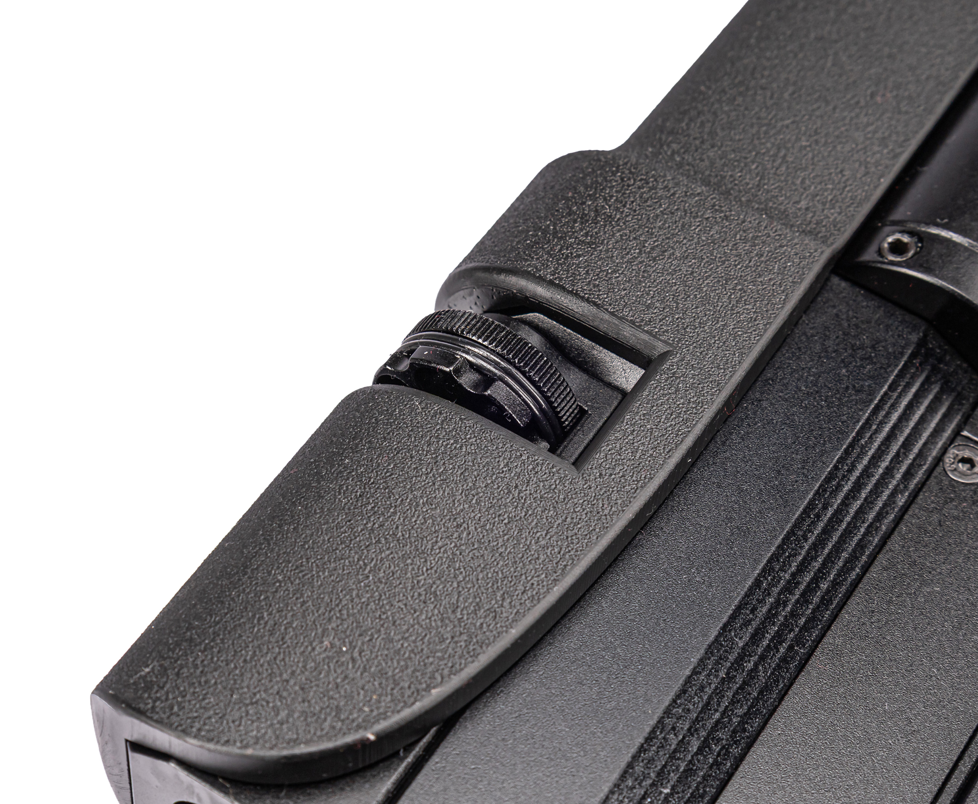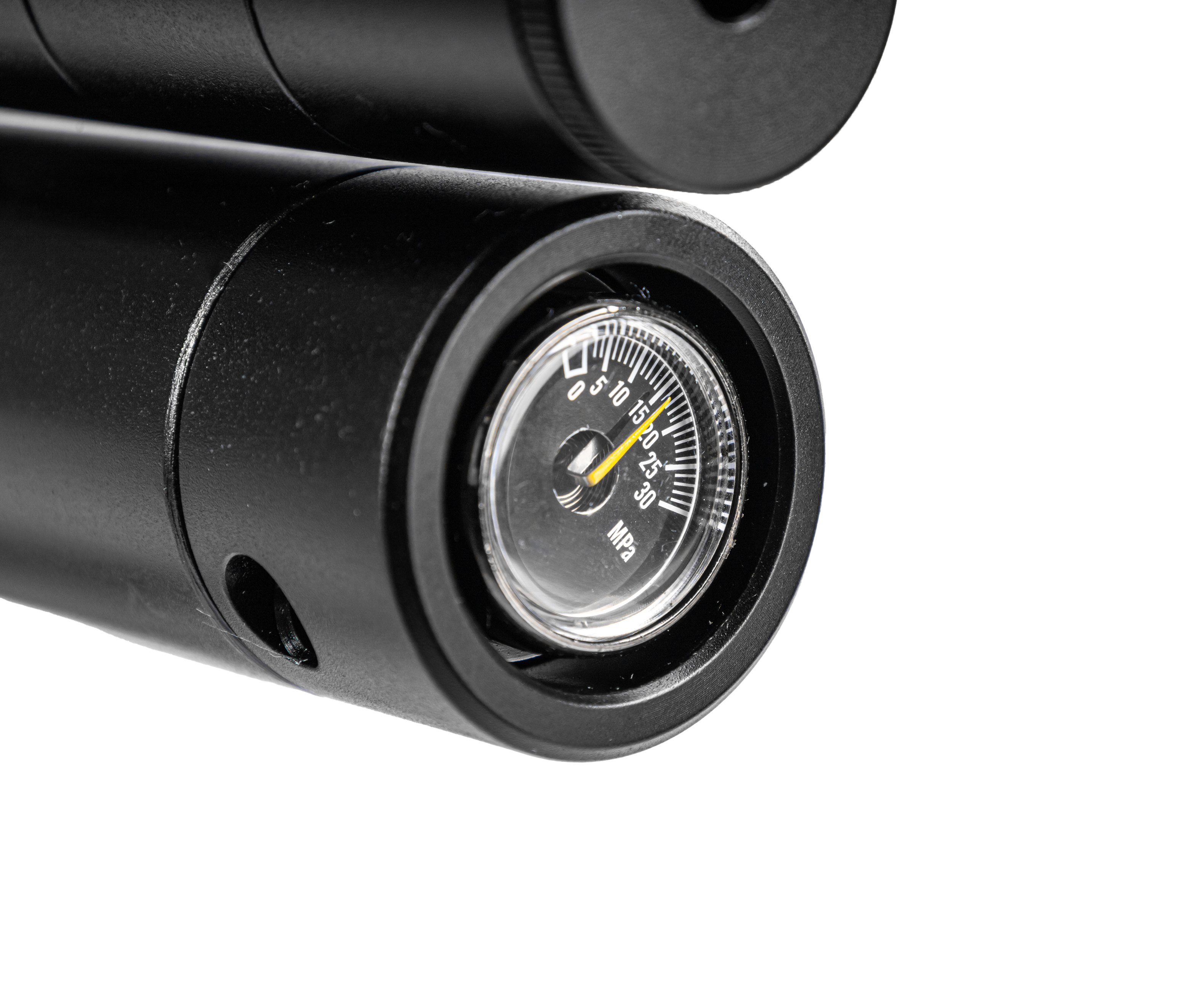 Объем ресивера составляет 278 куб. см - достаточный показатель для нескольких десятков точных выстрелов. Максимальное давление в резервуаре достигает 250 атмосфер. Контроль за заправкой упрощает встроенный манометр, который расположен на торце баллона - индикатор в зоне видимости при подготовке винтовки к работе.