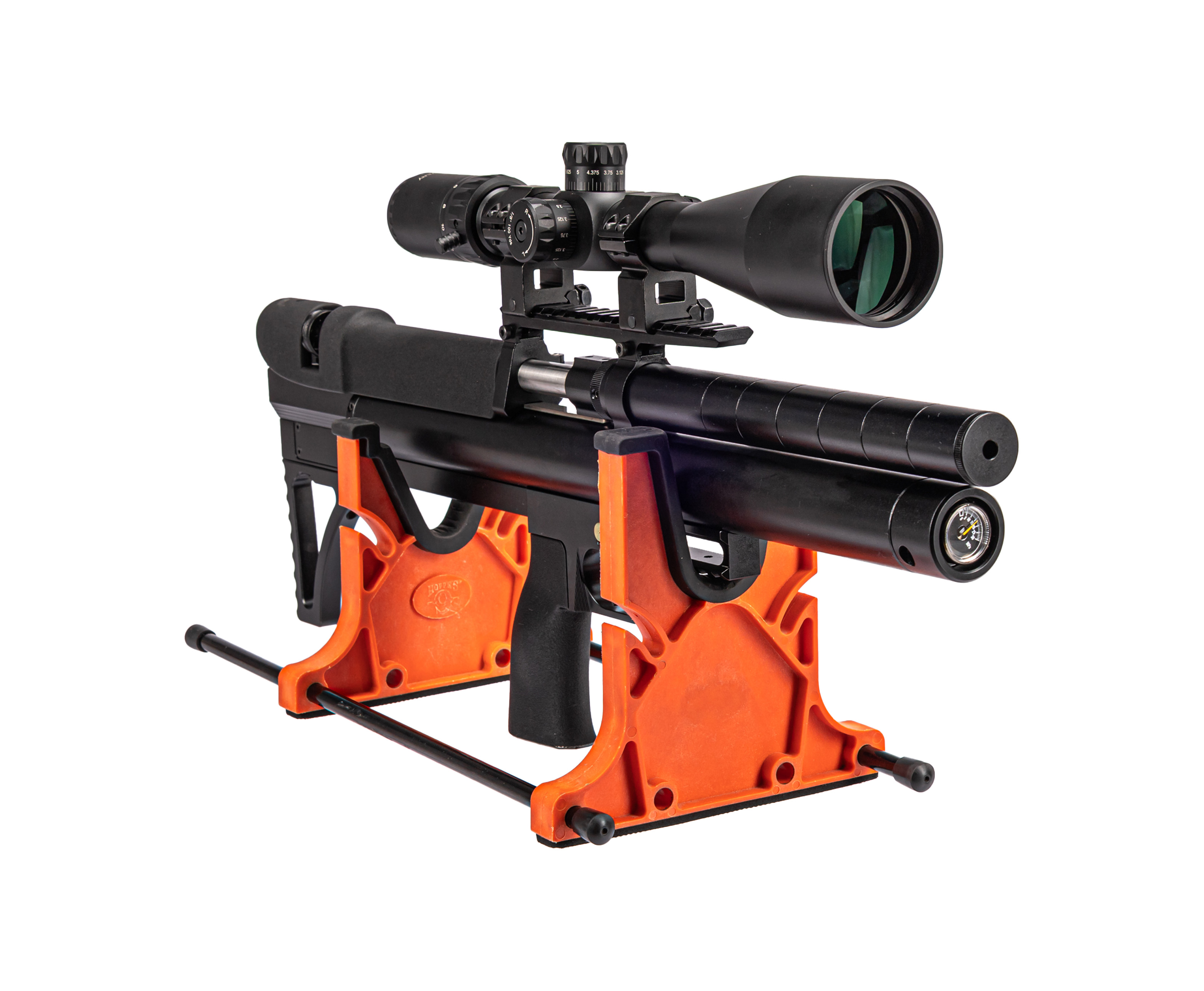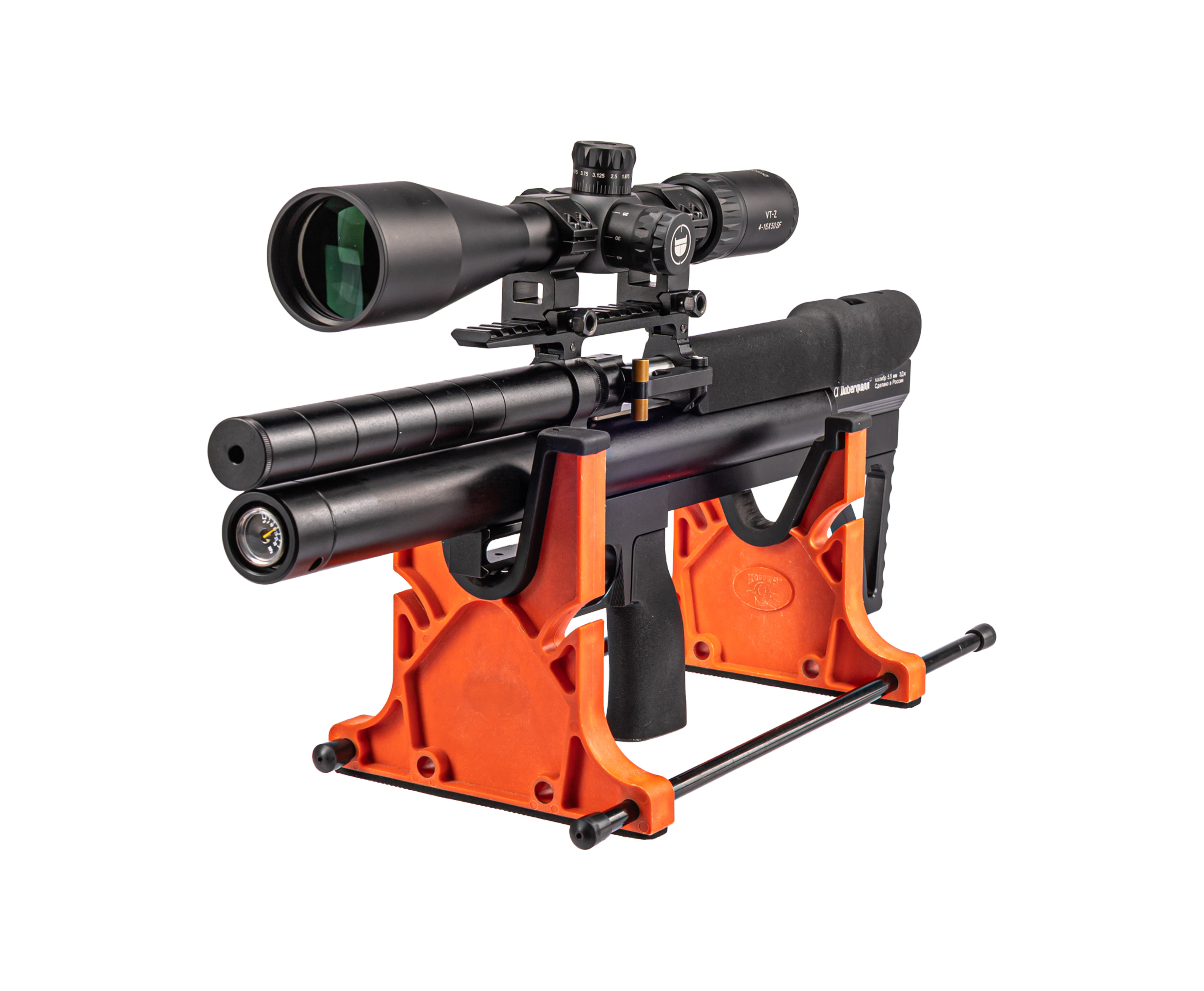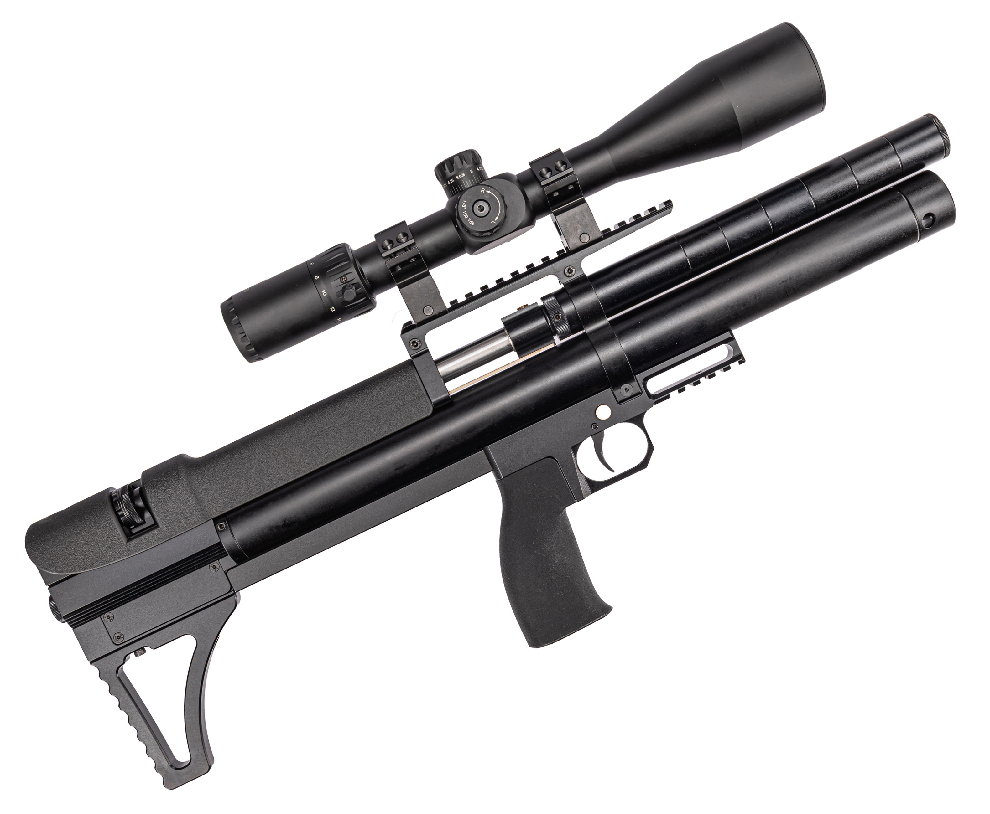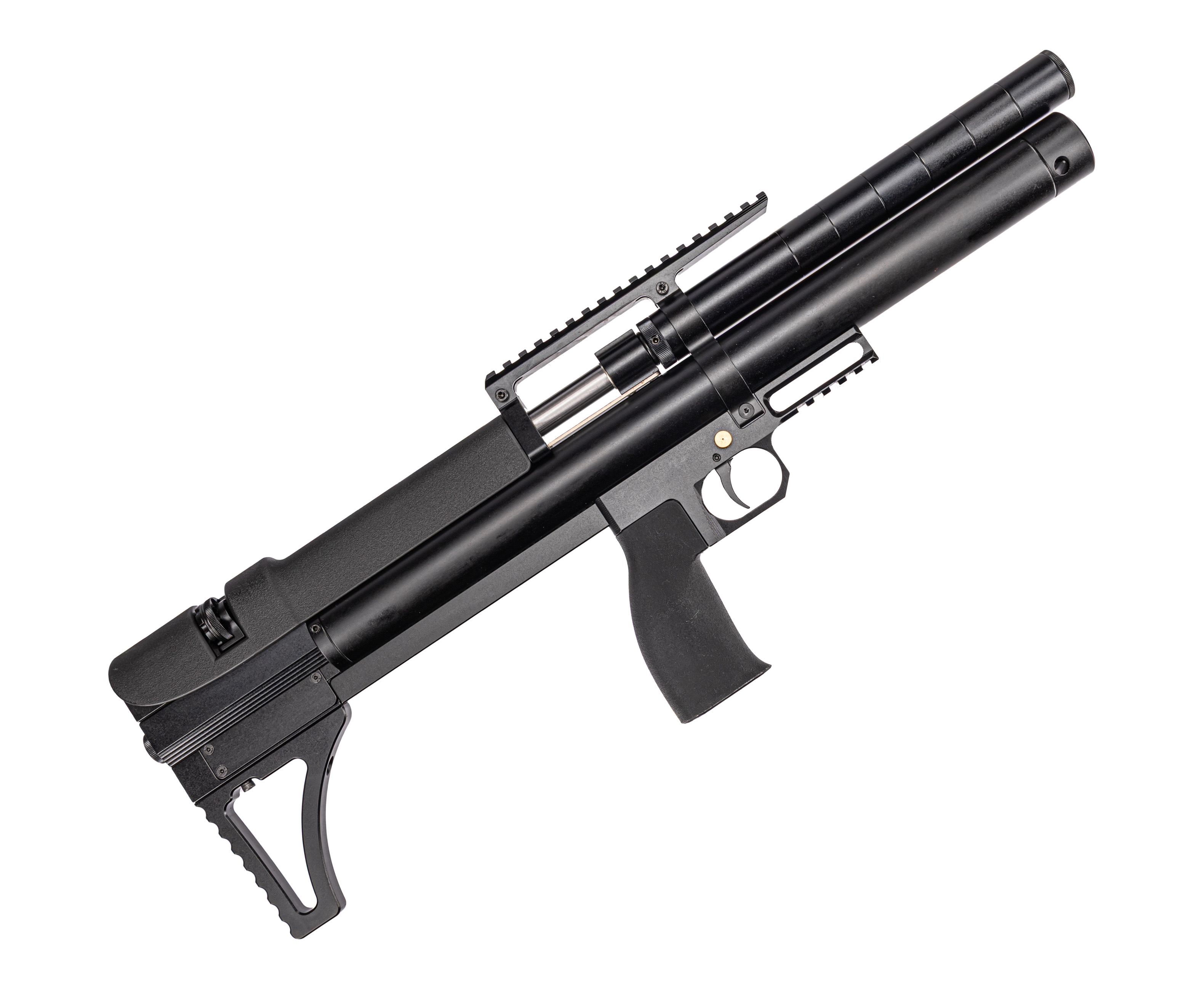 Пневматическая винтовка Alfa Dobermann Буллпап использует классический для производителя барабанный магазин на 7 свинцовых пуль. Передний взвод - это основная черта платформы: механизм облегчает перезарядку без отрыва взгляда от прицела и без надобности отводить руки далеко назад.