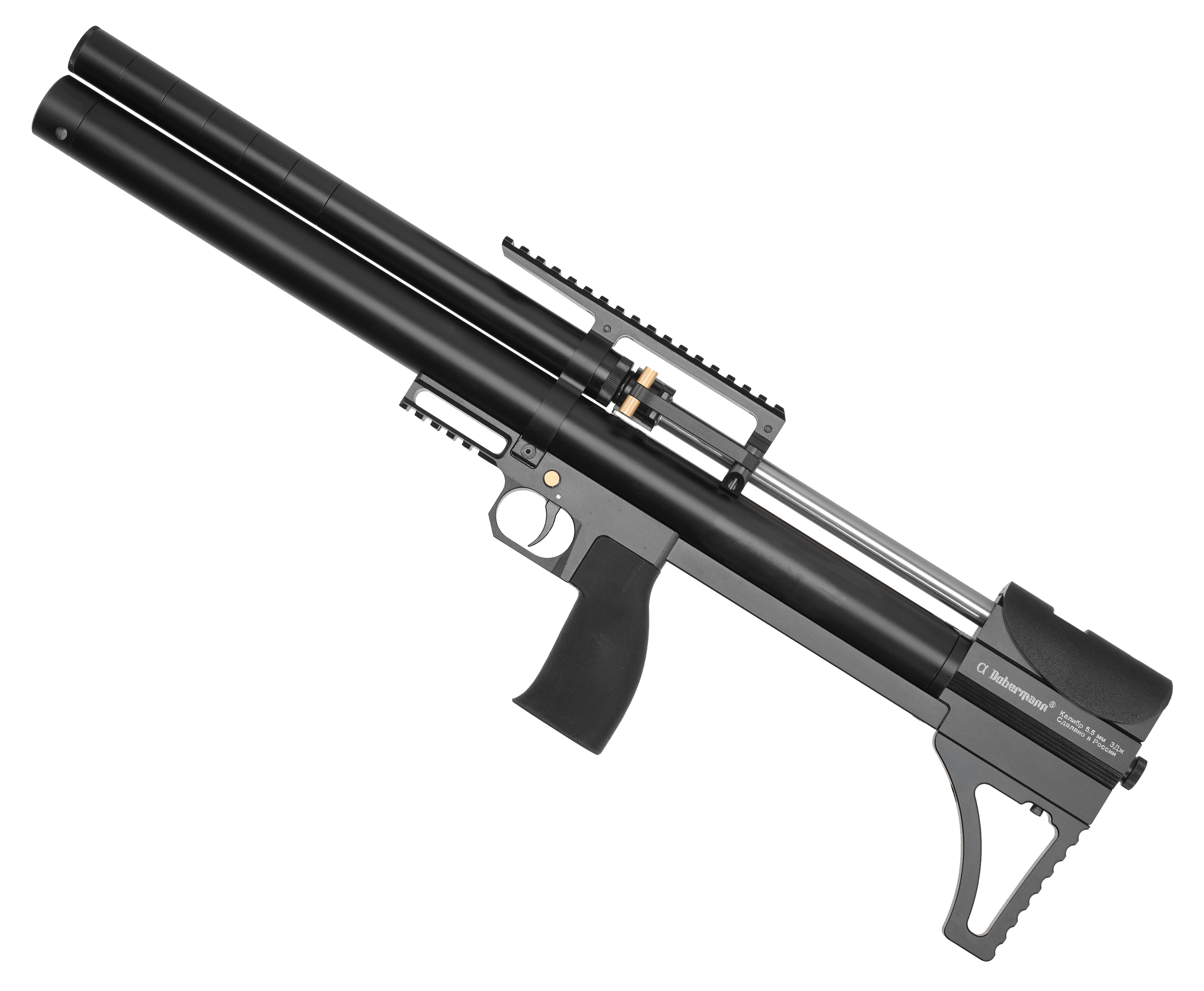 Резервуар объемом 345 кубических сантиметров выдерживает давление до 250 бар. Таким образом, стрелять можно сериями без частой подкачки. Показатели мощности не превышают 3 Дж, что делает платформу пригодной для эксплуатации без соответствующей лицензии.