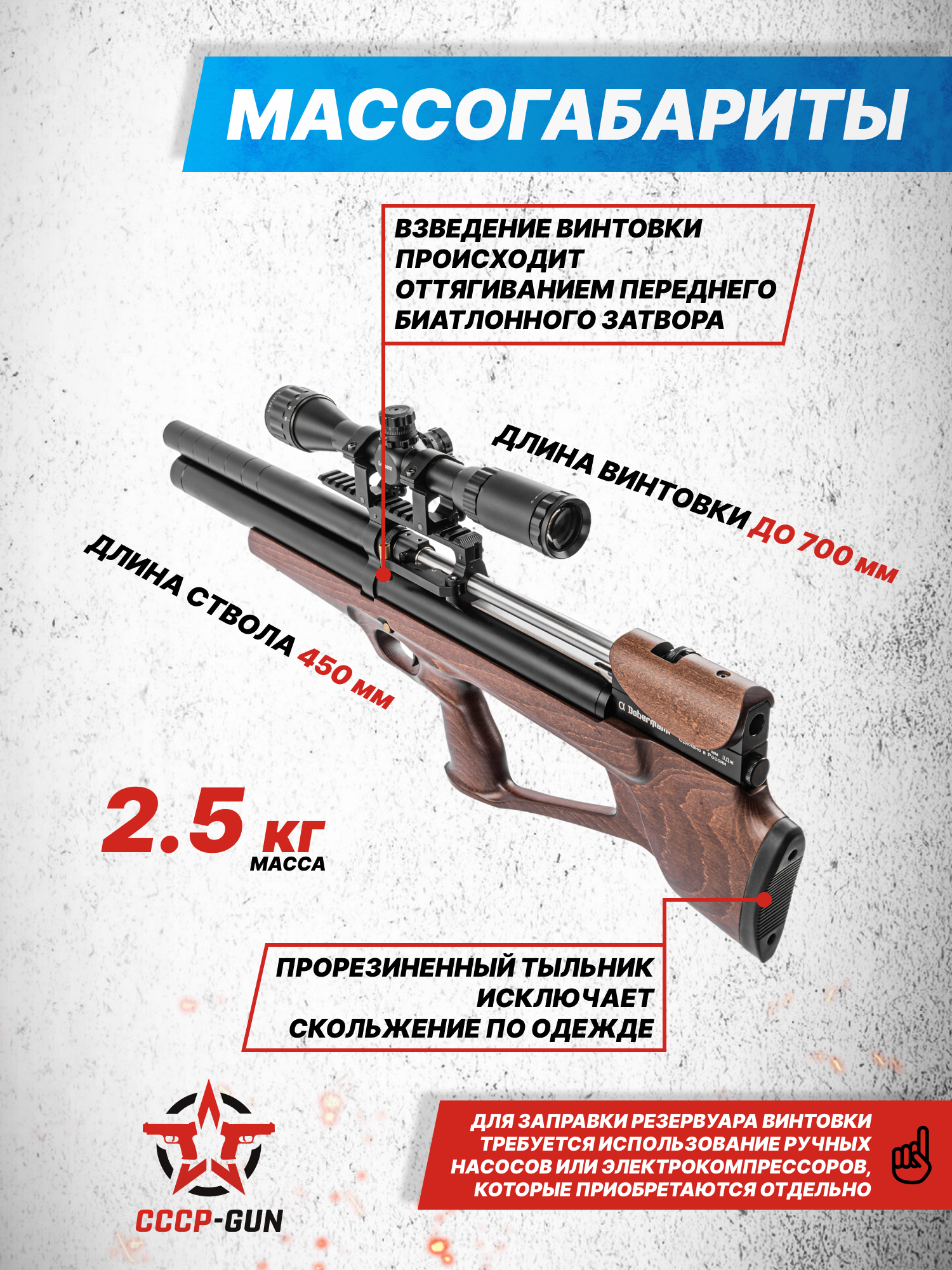 Пневматическая винтовка Dobermann Alfa Bull-Pup 5.5 мм (450 мм, стандартные нарезы, передний взвод)