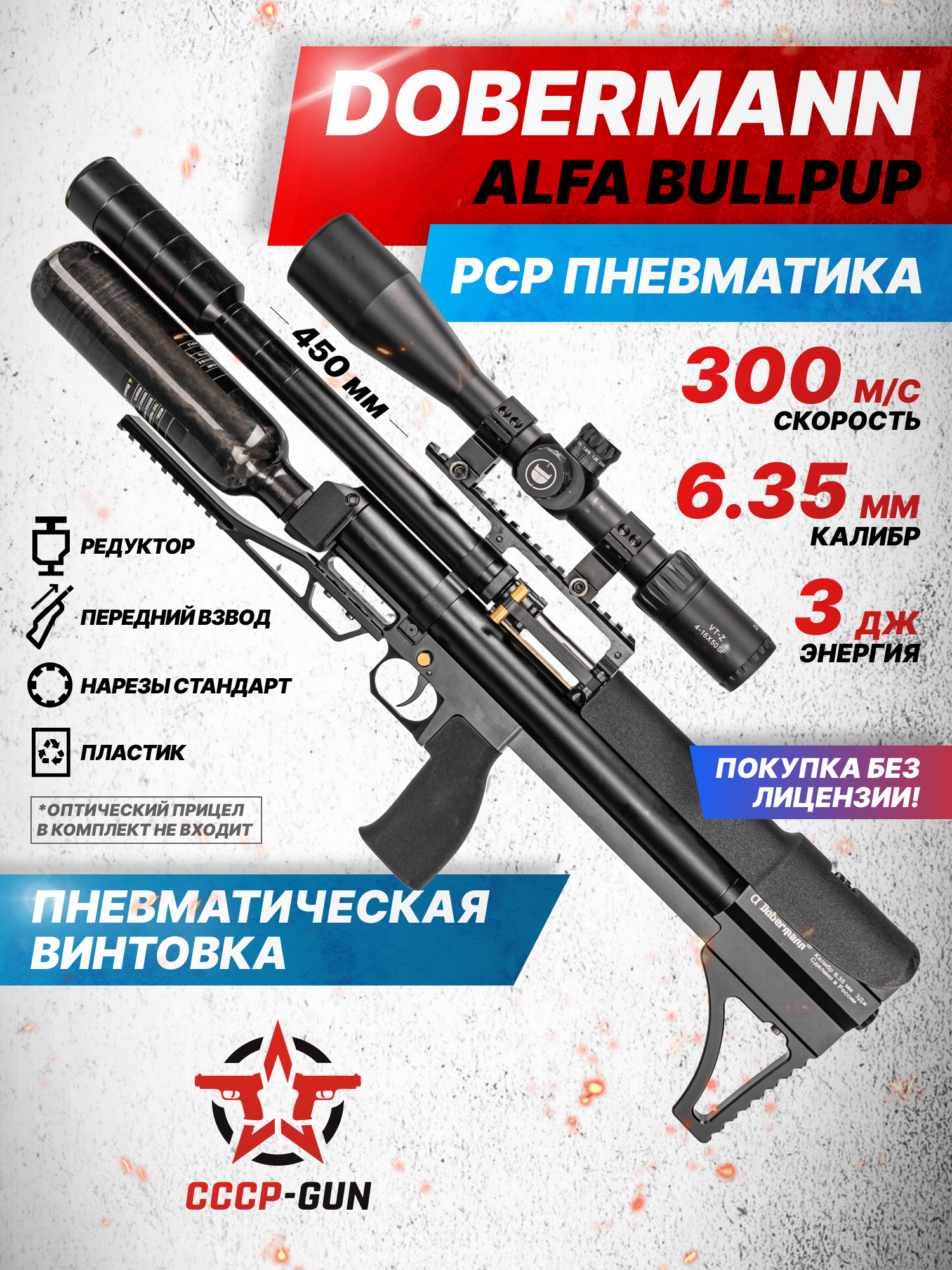 Пневматическая винтовка Dobermann Alfa Bull-Pup 6.35 мм (350 мм, пластик, редуктор, стандартные нарезы, передний взвод) Доберман