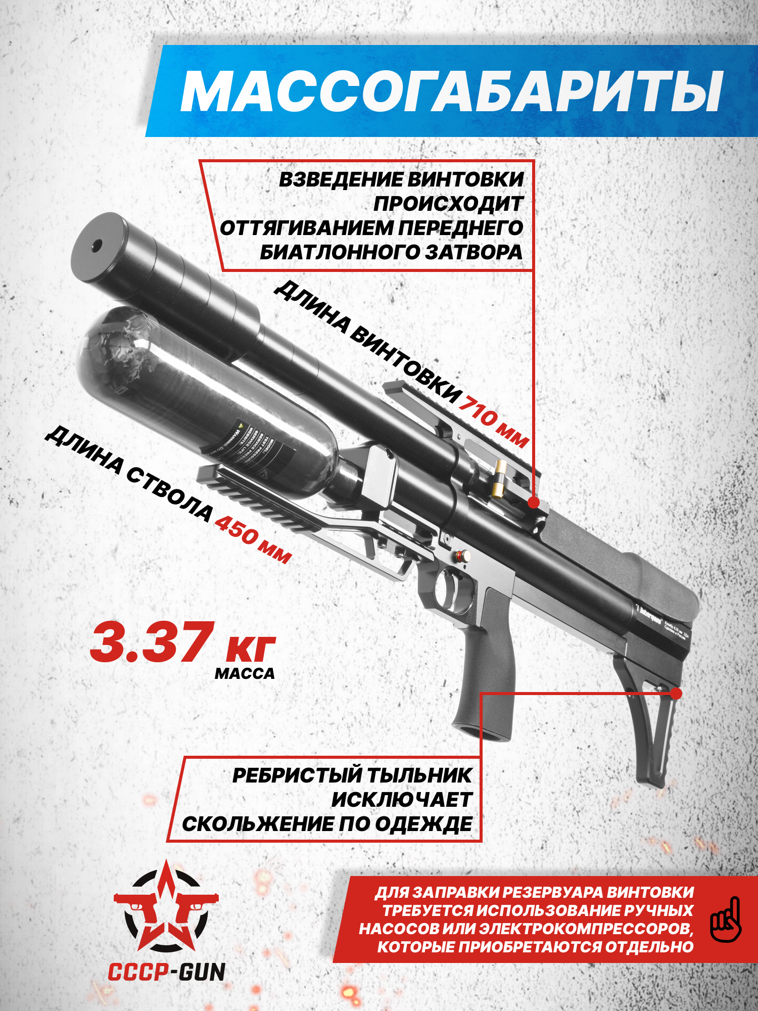 Пневматическая винтовка Dobermann Alfa Bull-Pup 6.35 мм (600 мм, прямоток, под полнотел, модератор 44 мм, передний взвод)