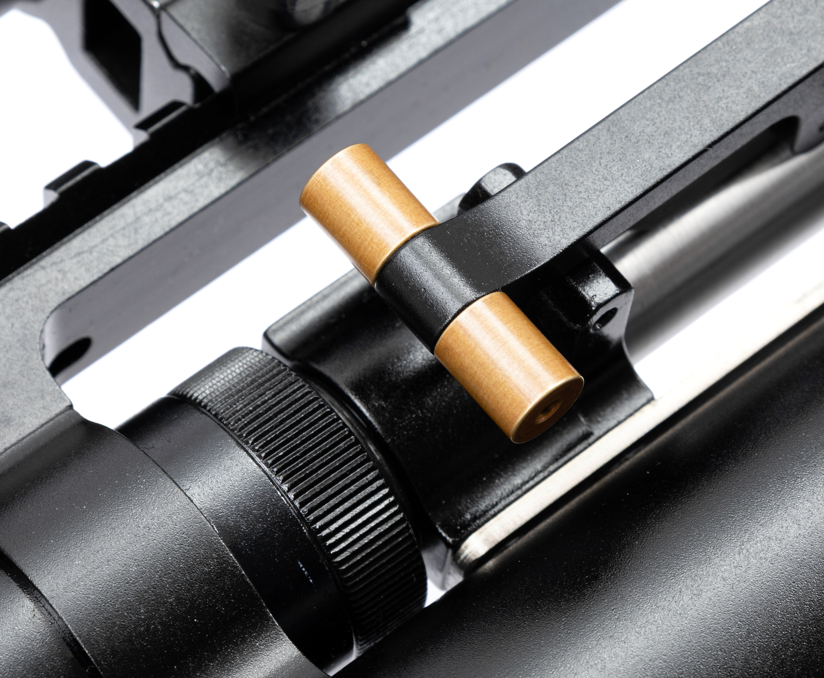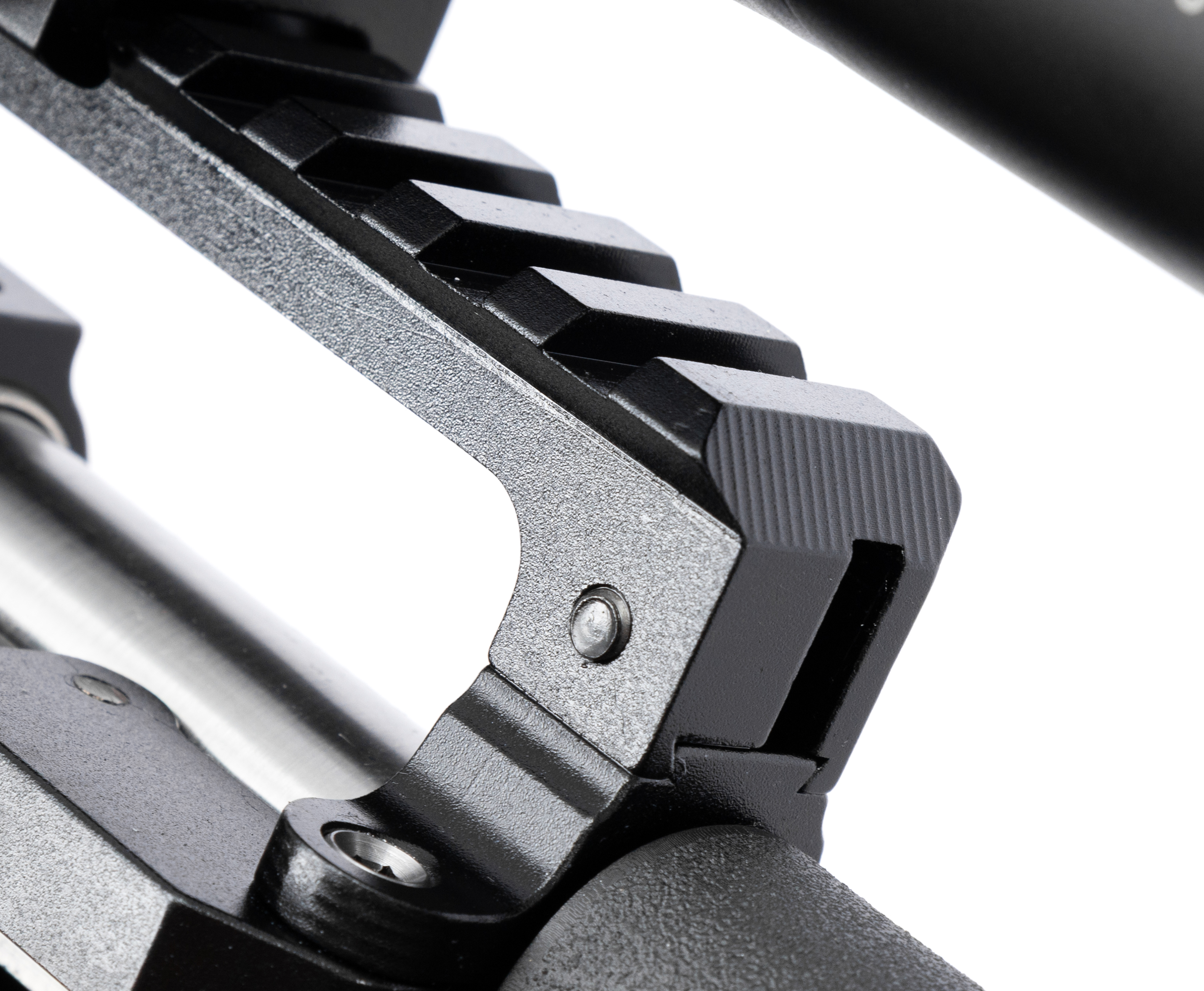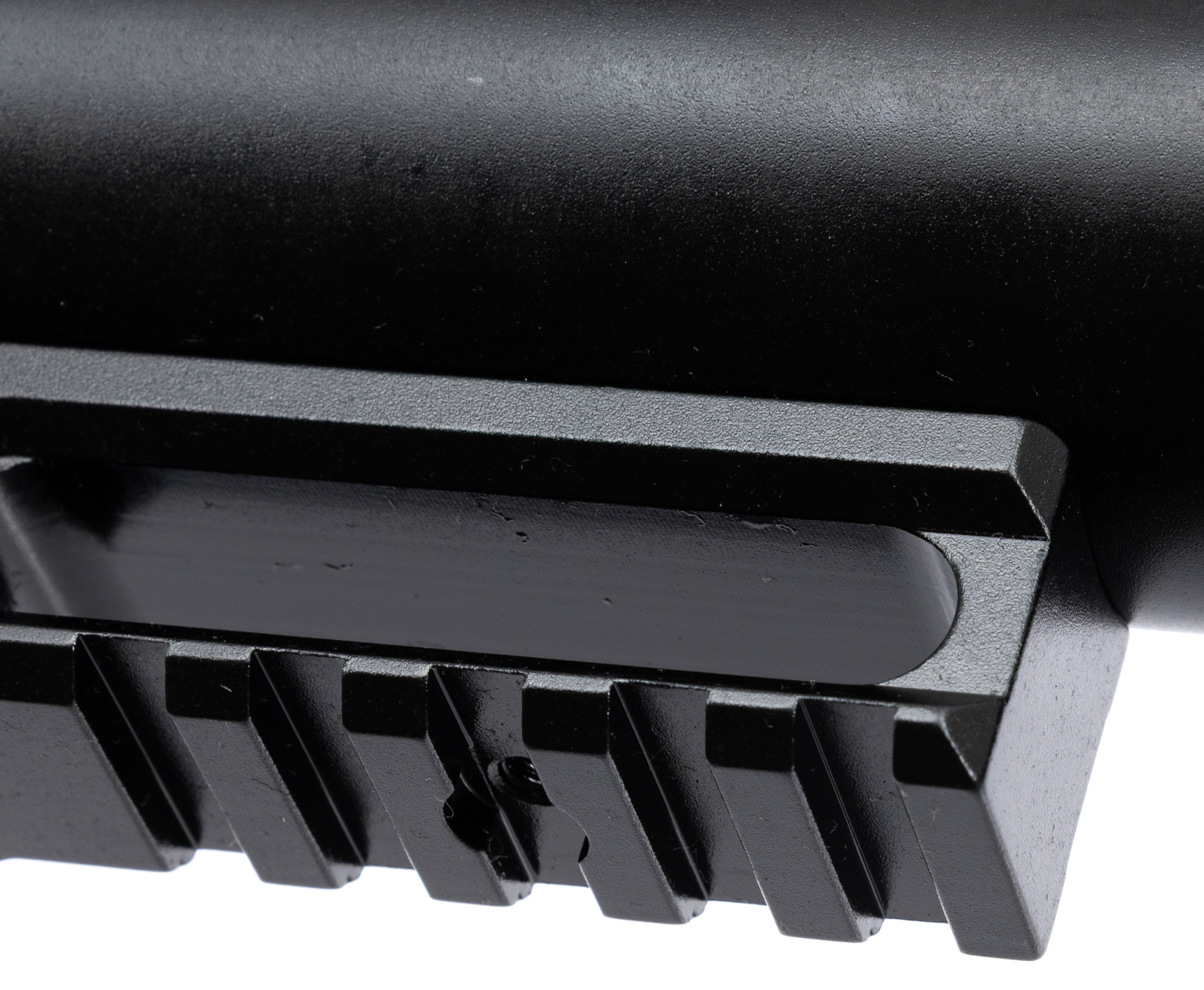 Механизм переднего взвода размещен с левой стороны и позволяет производить перезарядку без необходимости менять положение головы. Это особенно удобно при стрельбе через оптическое устройство - прицельная линия сохраняется. Такая конструкция снижает время подготовки к следующему выстрелу и упрощает работу в ритме.