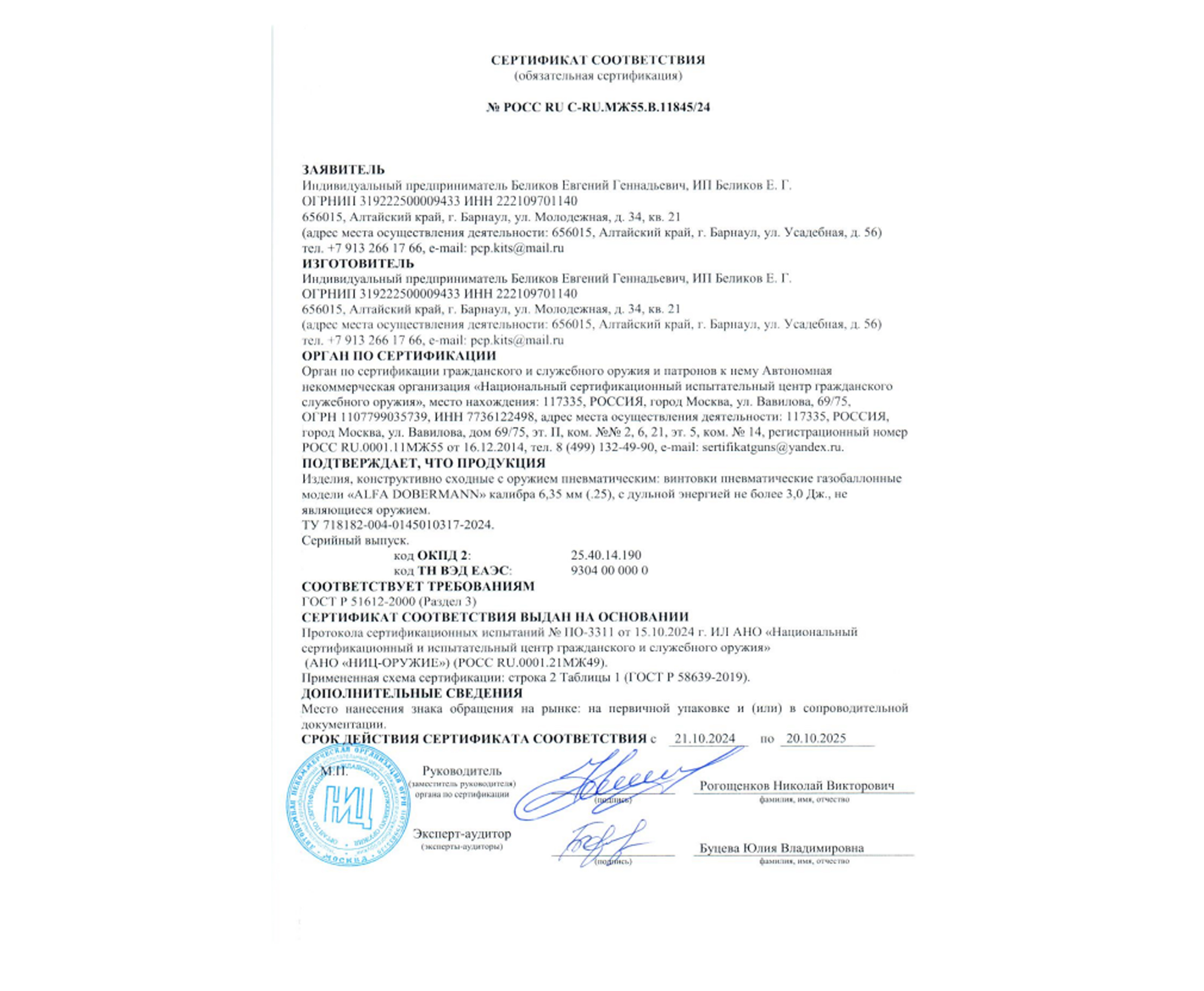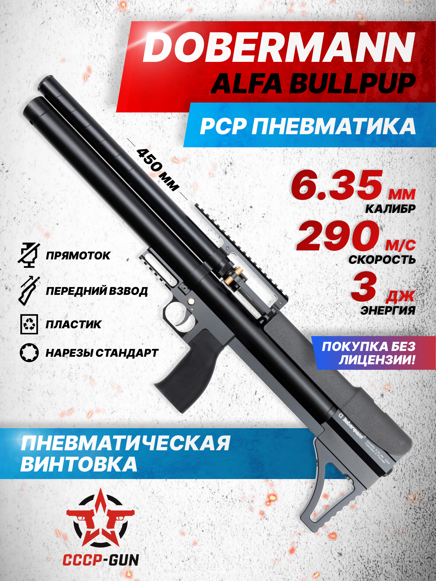 Пневматические винтовки калибра 6.35 мм в компоновке буллпап выбирают за сбалансированное сочетание точности, компактности и уверенной работы со снарядами. Такие модели востребованы у стрелков, которым важна управляемая отдача при каждом выстреле, возможность комфортного прицеливания с упора и совместимость с полноразмерной оптикой. В этой категории находится Dobermann Alfa Bull-Pup, сочетающая классические решения с продуманной геометрией корпуса и технологичным подходом к эргономике.