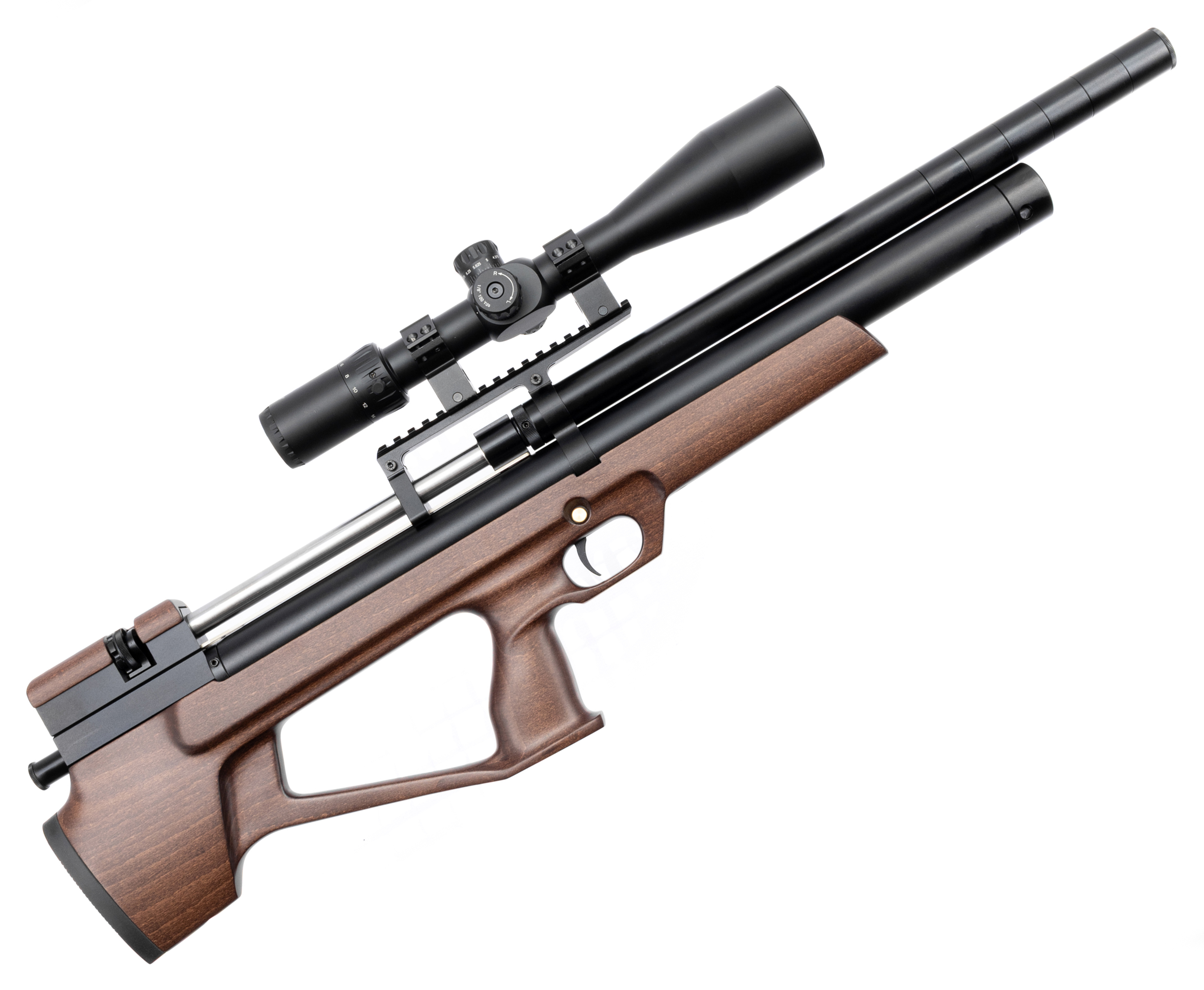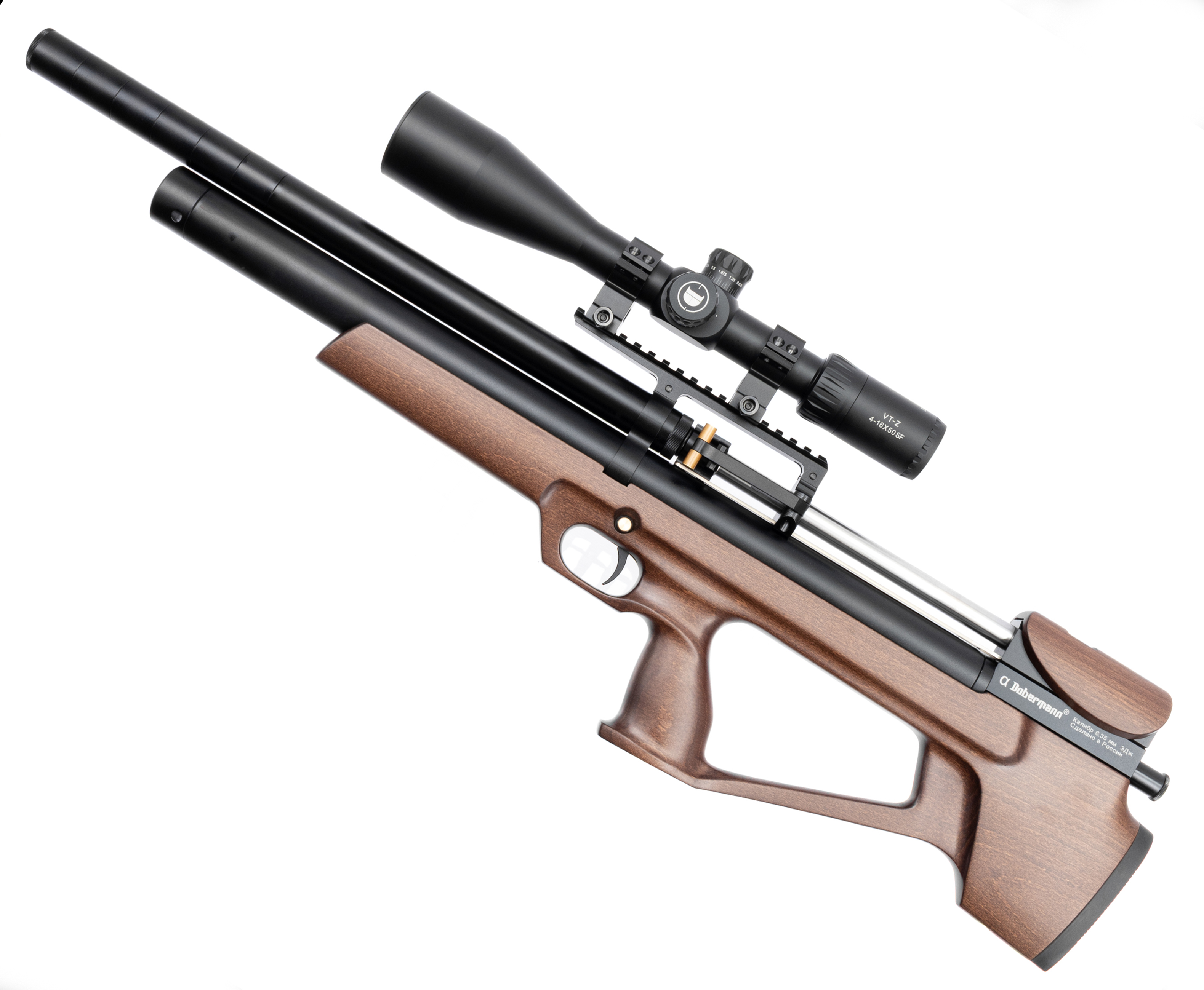 Деревянное ложе придает платформе классический внешний вид. Естественная фактура создает приятное тактильное ощущение при эксплуатации, снижает скольжение и гасит вибрации. Буллпап-компоновка уменьшает итоговую длину до 850 мм при сохранении полноценного ствола, повышая компактность конструкции и ее эргономику.