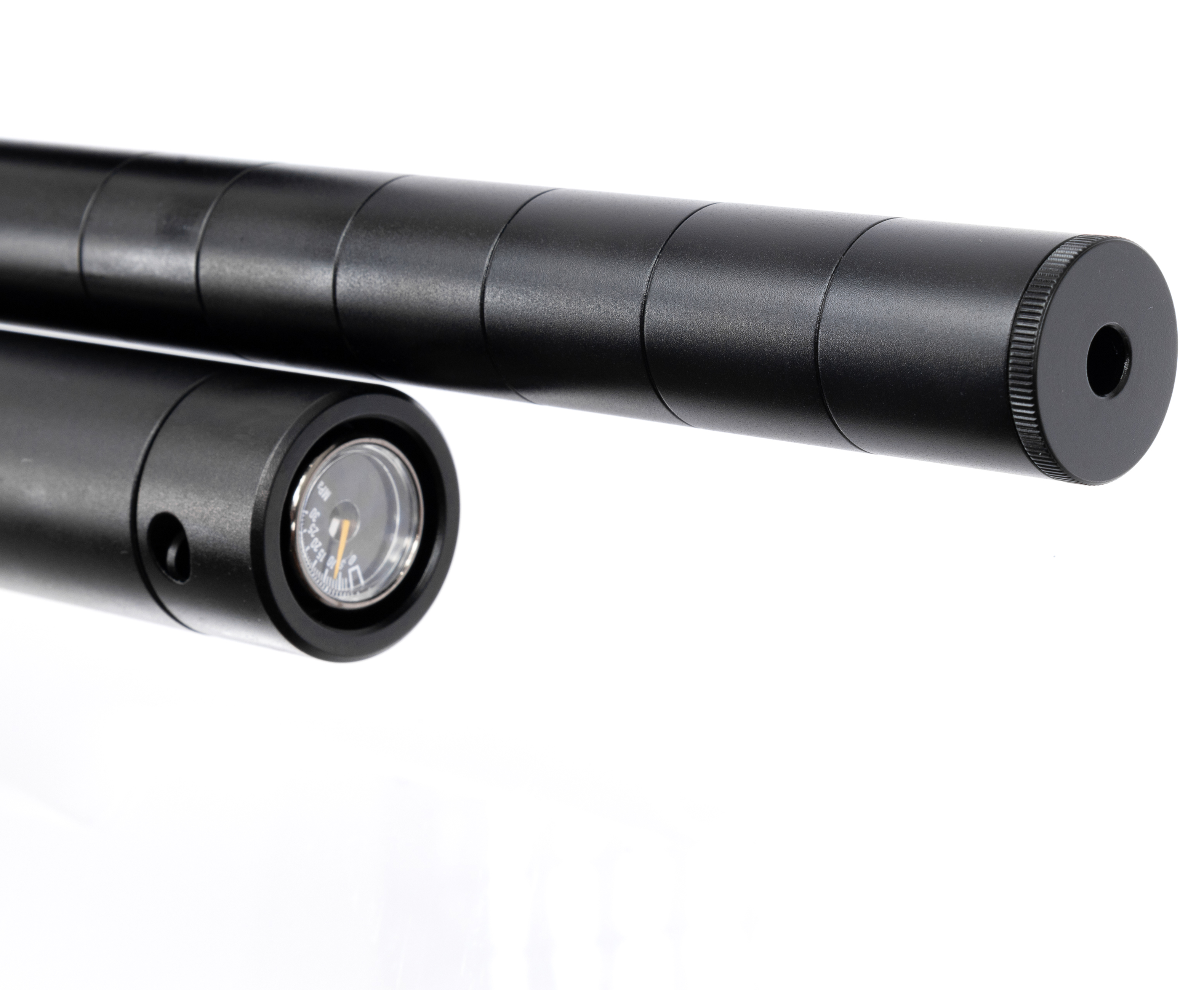 В конструкции используется ресивер объема 345 куб. сантиметров. Рабочее давление камеры достигает 300 Бар, это позволяет совершить большое количество выстрелов на одной заправке. Для контроля показателей на торце резервуара установлен встроенный манометр - стрелок может быстро отслеживать текущее значение и вовремя пополнять запас воздуха.